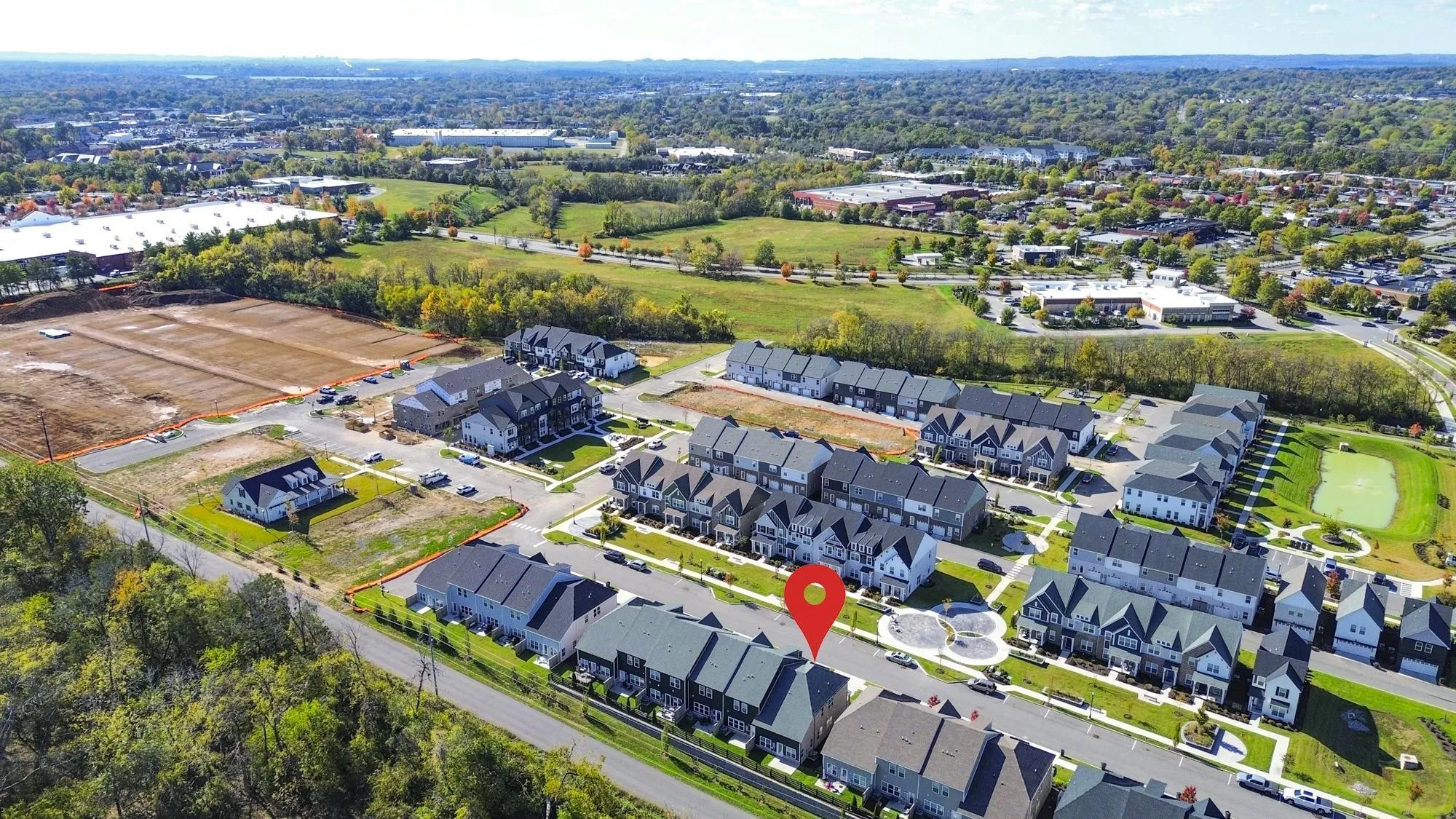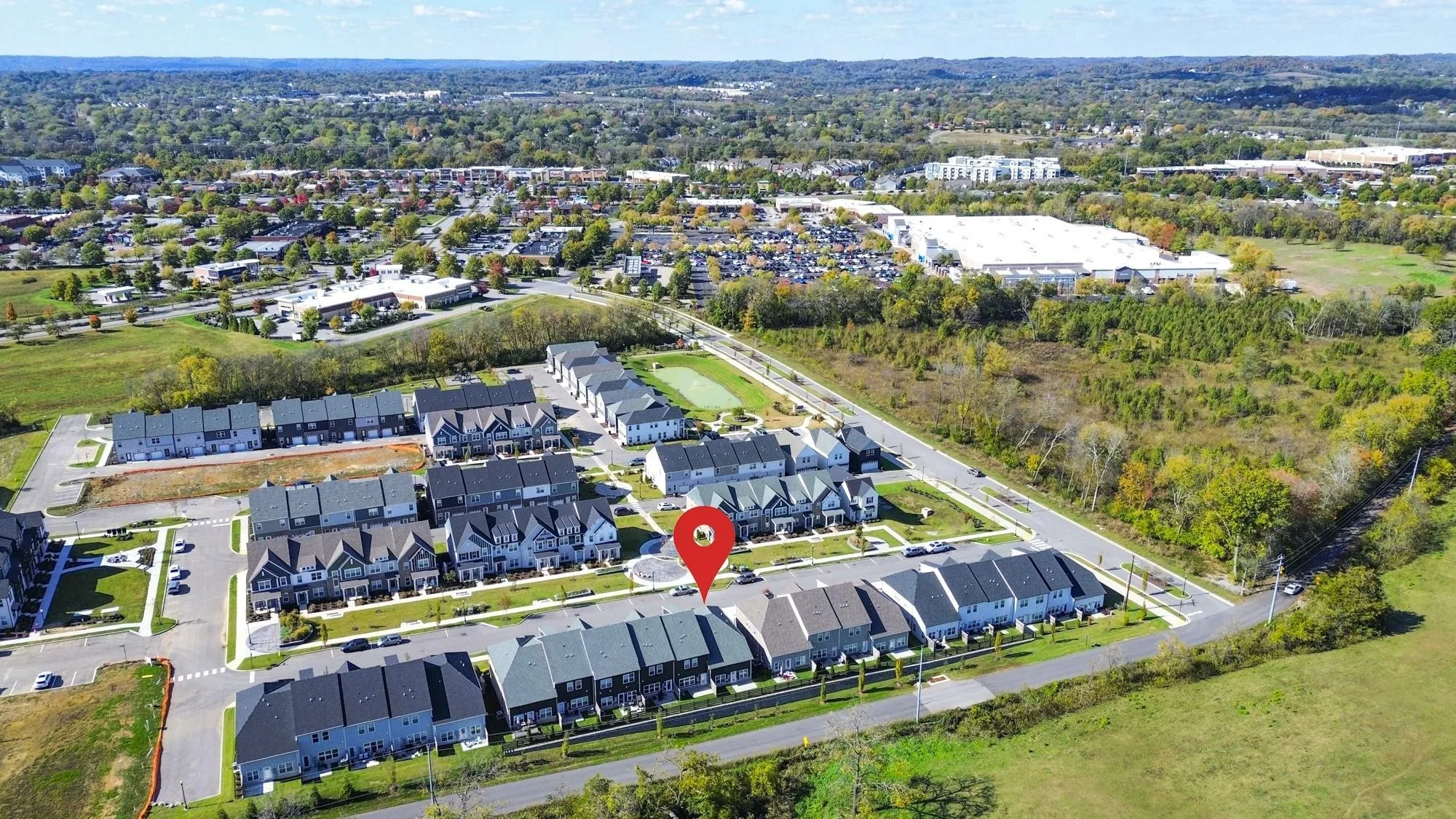 This is the Charleston floor plan with the primary suite on the main level. Only 1 year old, refrigerator and washer/dryer remain. Upgraded light fixtures, laminate floors on the main level. This is also an end unit a with patio in the back overlooking horse farm. Club House, Playground and walking trail. Convenient to shopping and restaurants.