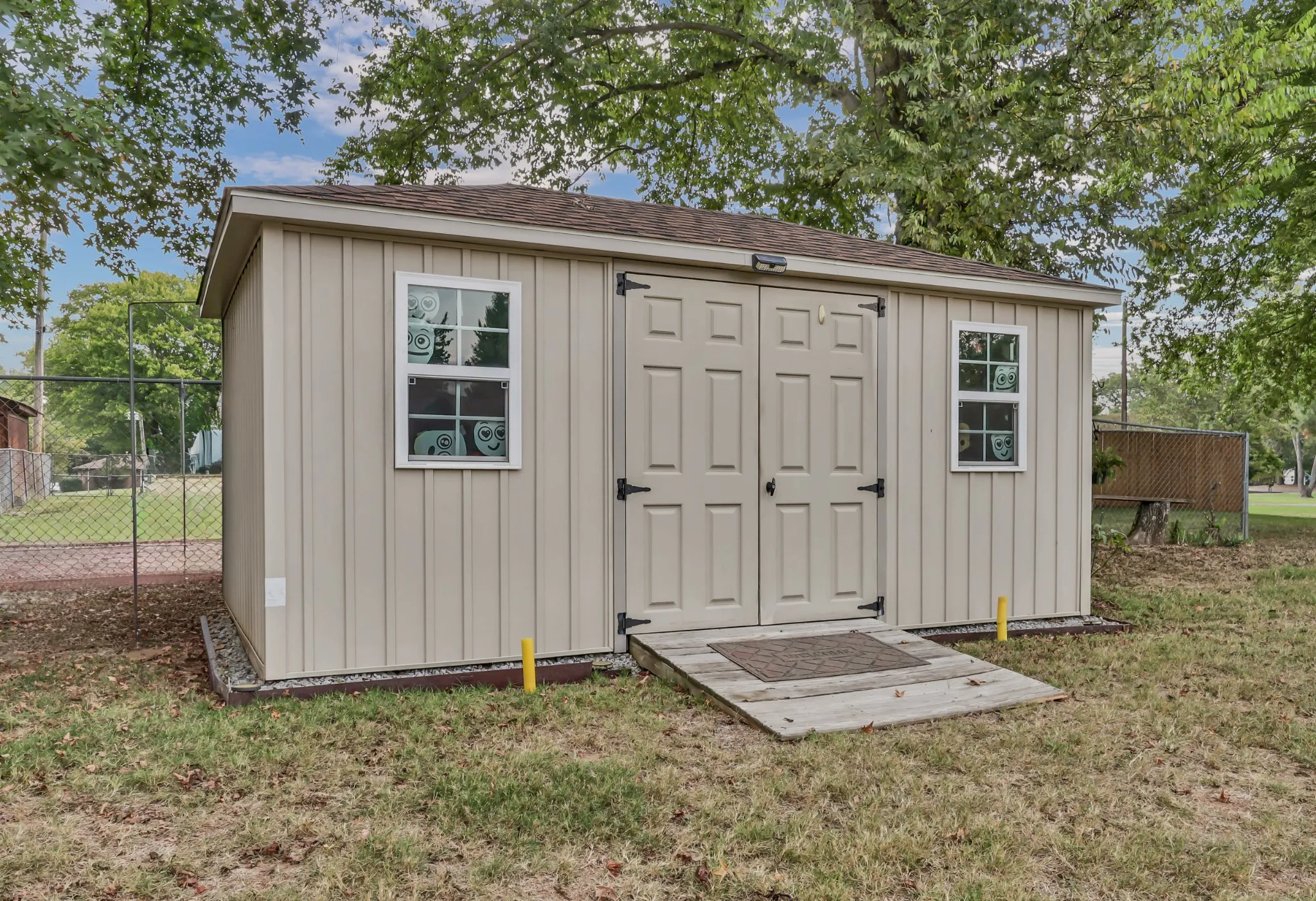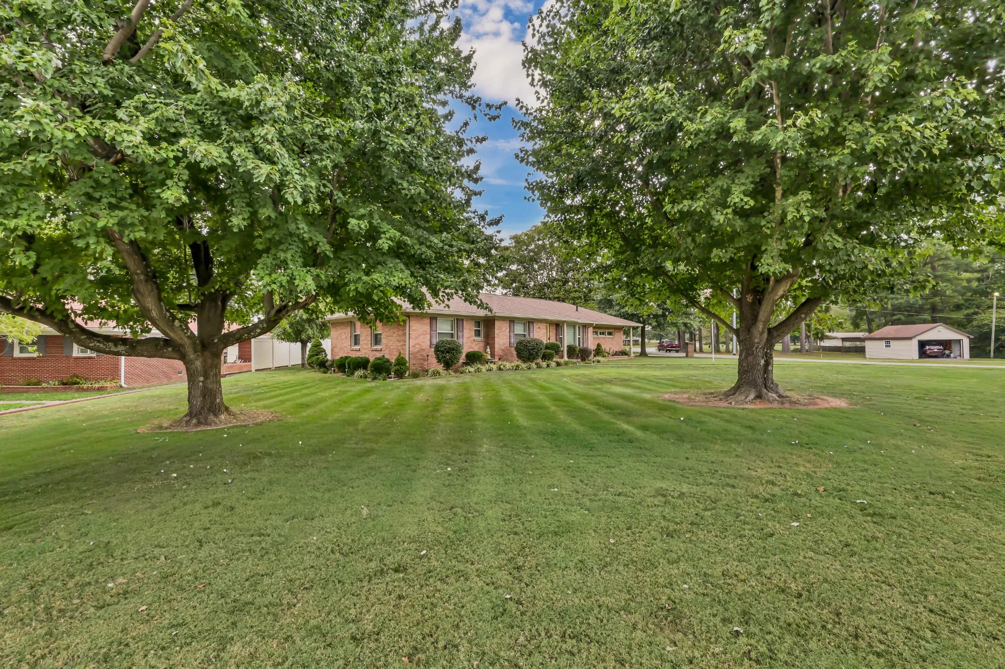 Outside, mature trees frame the corner lot, offering both shade and serenity, while the oversized garage provides ample storage and workspace.
