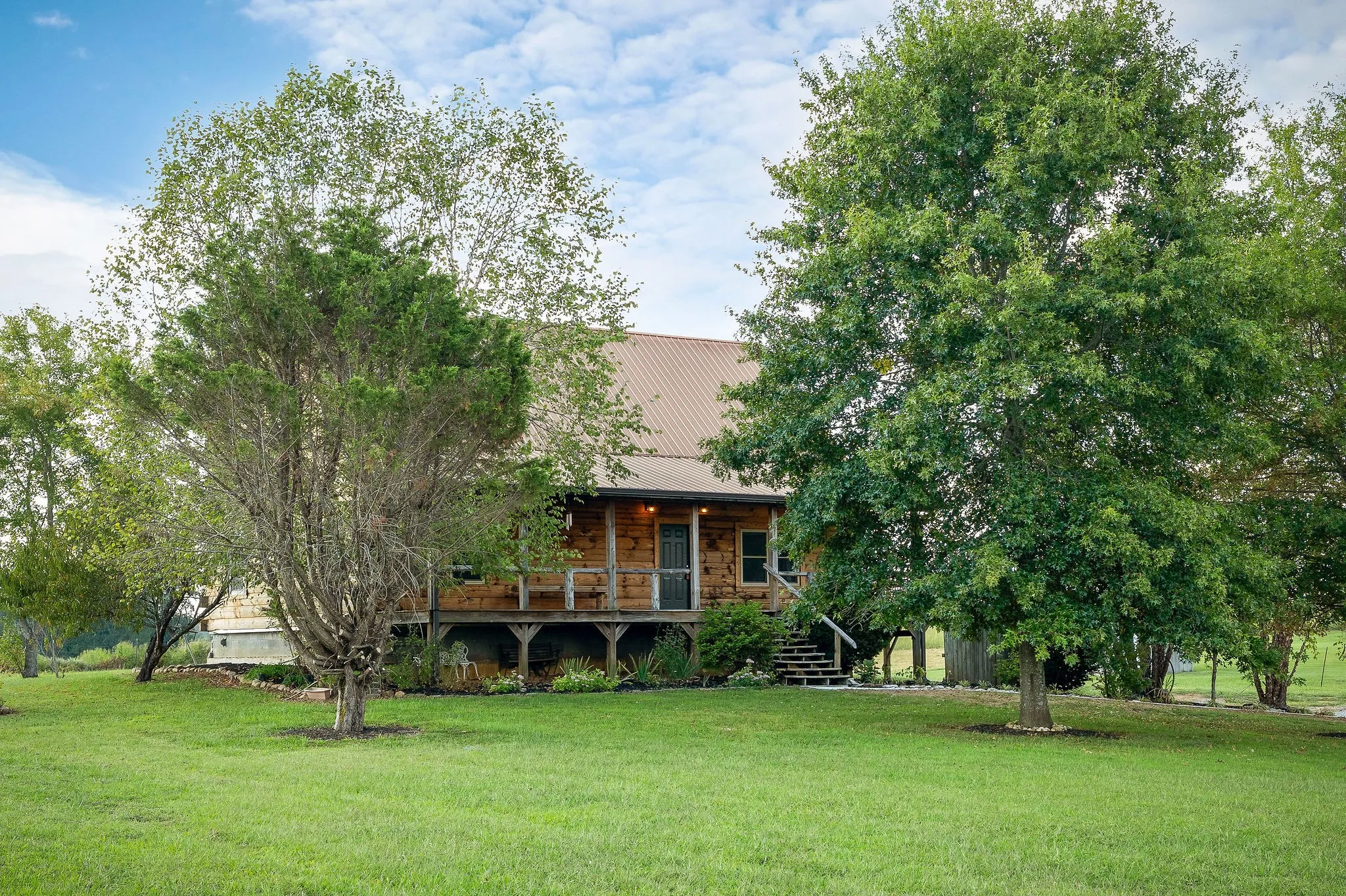 If you’ve been dreaming of a quiet place in the country, this is it! The 3-bedroom, 2-bathroom log cabin sits on 5 beautiful acres with plenty of room to relax and enjoy the outdoors. The home is less than 2 minutes to US-70 (4 lane) and convenient to Centertown Elemnetary. The cabin features a warm and inviting rustic living area, open concept kitchen, and a comfortable floor plan that flows throughout. The primary bedroom has an ensuite with shower, jacuzzi tub and walk-in closet. The additional bedrooms are perfect for family, guests, or even a home office/library. Outside, you’ll find the perfect setting for a garden, fenced in area for livestock, or maybe just enjoy the privacy of farm living. The covered porch with country style swing is the perfect retreat for morning coffee or winding down in the evening while taking in the views. Whether you’re looking for a full-time home or a weekend getaway, this log cabin offers simple picturesque countryside living with NO HOA or RESTRICTIONS! Home has had several updates including new windows, new water heater, refinished hardwood floors, updated interior paint, new concrete sidewalk, and landscape refresh.