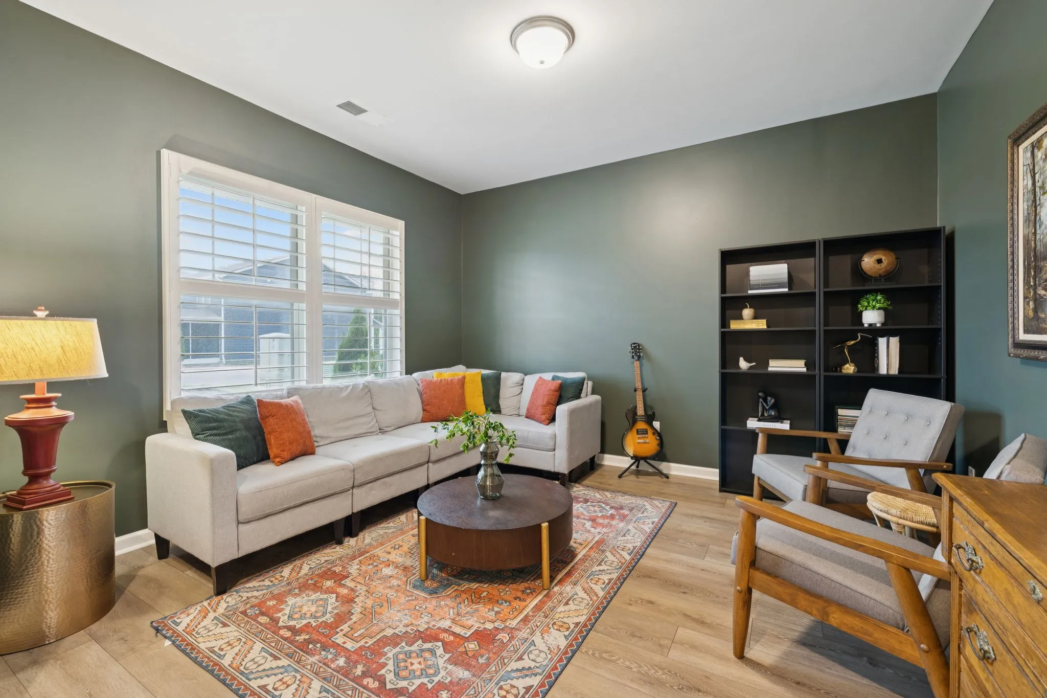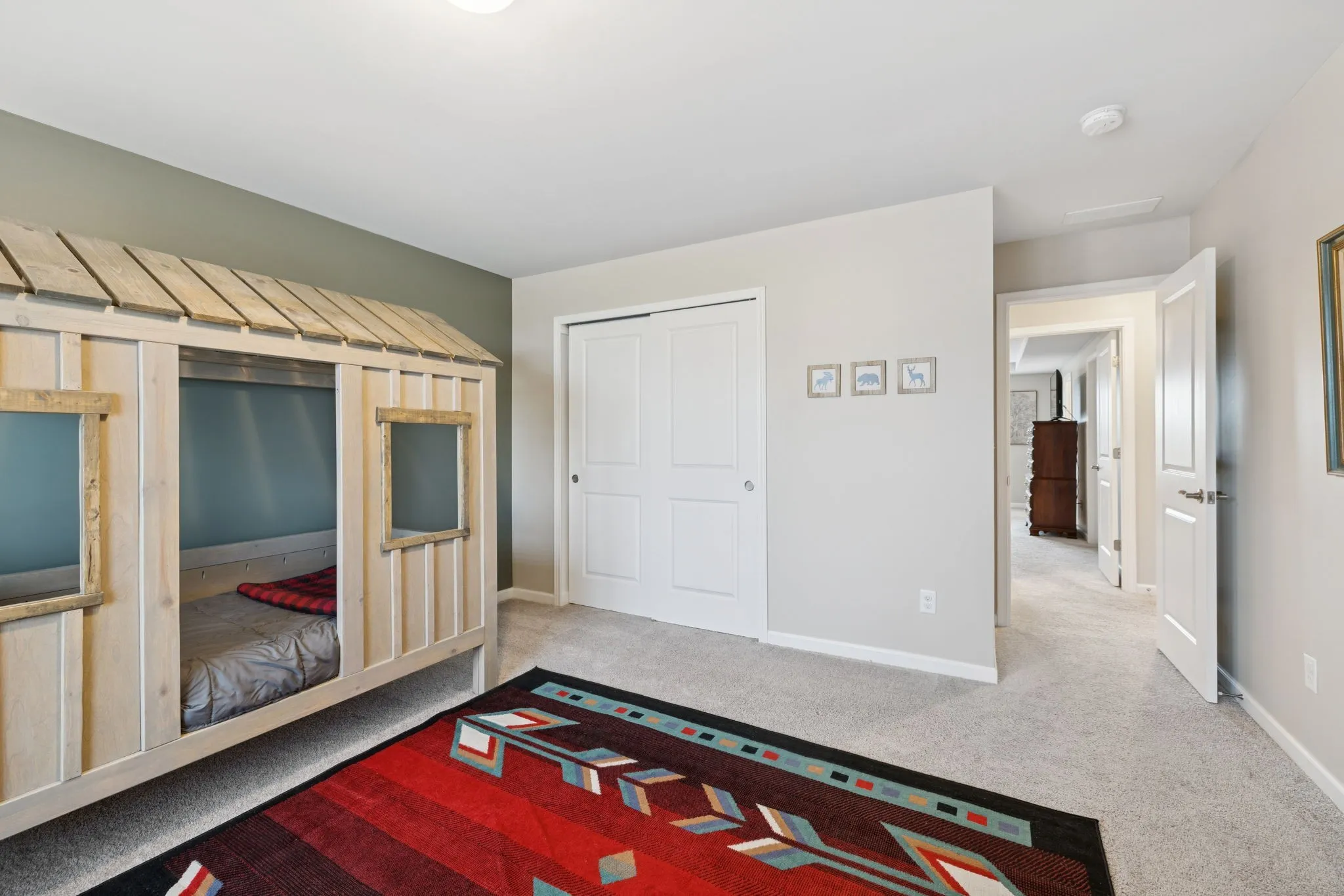 This spacious 5-bedroom home includes a primary suite with en-suite bathroom and custom wooden shelving in the closet. The wood-burning fireplace adds cozy charm, and the front room serves as a library or sitting room. Upstairs, the loft has been transformed into a media room. Modern conveniences include Cat6 Ethernet for wired internet throughout the home, a smart door lock, and a smart doorbell.\n