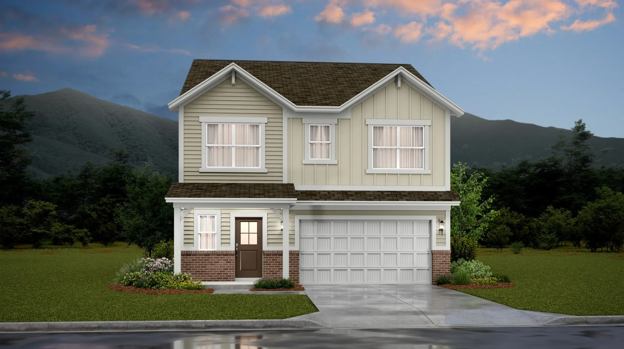 LOT #50 – Aspen. This new two-story home is a family-friendly haven. The first floor features an open-plan layout among a Great Room for shared moments, a kitchen for adventurous cooks and a dining room for memorable meals. The second floor hosts four restful bedrooms and a spacious owner’s suite with a private bathroom and large walk-in closet. *Images from a furnished model of this home. Actual configuration and features may vary.