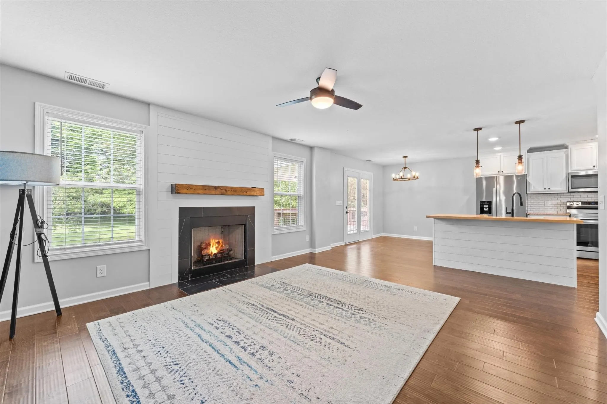 Welcome to your dream home, where modern farmhouse charm meets everyday elegance! This stunning 3-bedroom, 2.5-bath gem offers 1,875 sqft of thoughtfully designed living space. Step inside and be captivated by the one-of-a-kind kitchen, featuring a beautiful farmhouse sink, a shiplap island, and sleek granite countertops—a perfect blend of style and function. The cozy living room boasts a shiplap fireplace, creating a warm, inviting ambiance. Venture outside to your large private backyard, an oasis adorned with modern farmhouse upgrades, perfect for hosting family gatherings or enjoying tranquil evenings under the stars. Nestled in the heart of a friendly community, you’ll be part of the sought-after Rossview Schools district, ensuring a top-notch education for your family. Convenience is at your doorstep, with easy access to local shops, dining, and entertainment. Don’t miss your chance to own this slice of paradise—schedule your tour today!