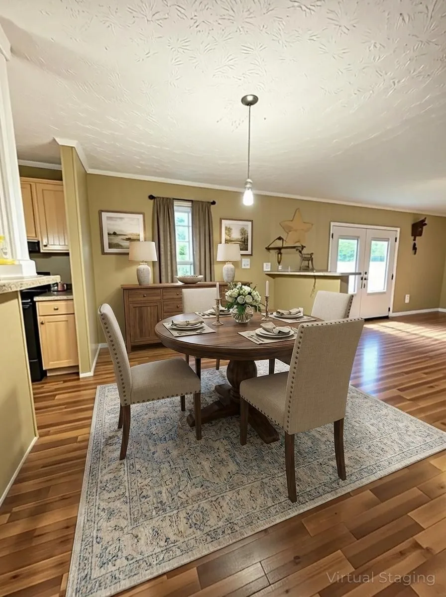 The spacious 3-bedroom, 2-bath manufactured home sits on a permanent foundation and offers handicap-accessible features. Inside, you’ll find a large open-concept living room, a separate den for added flexibility with two fireplaces flowing in to a well-designed kitchen with island bar seating and lots of cabinets—perfect for gathering and entertaining. The split-bedroom (zoned) layout provides privacy and functionality, while the generous floor plan offers plenty of space throughout.