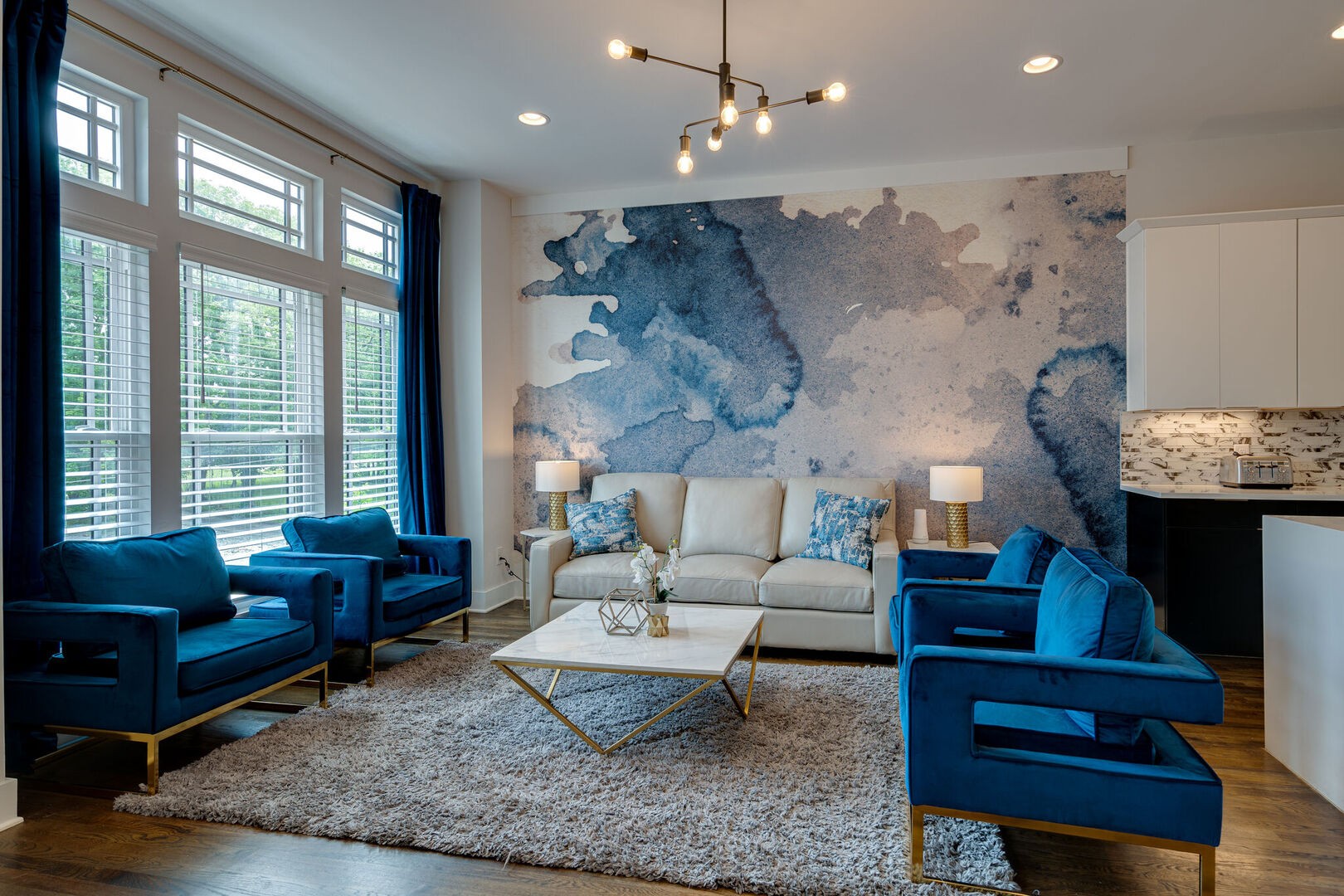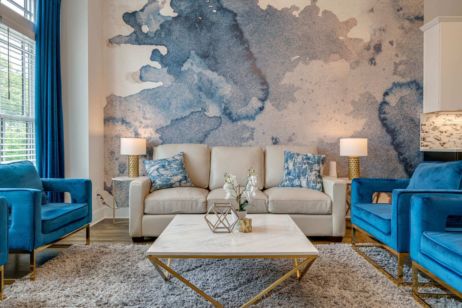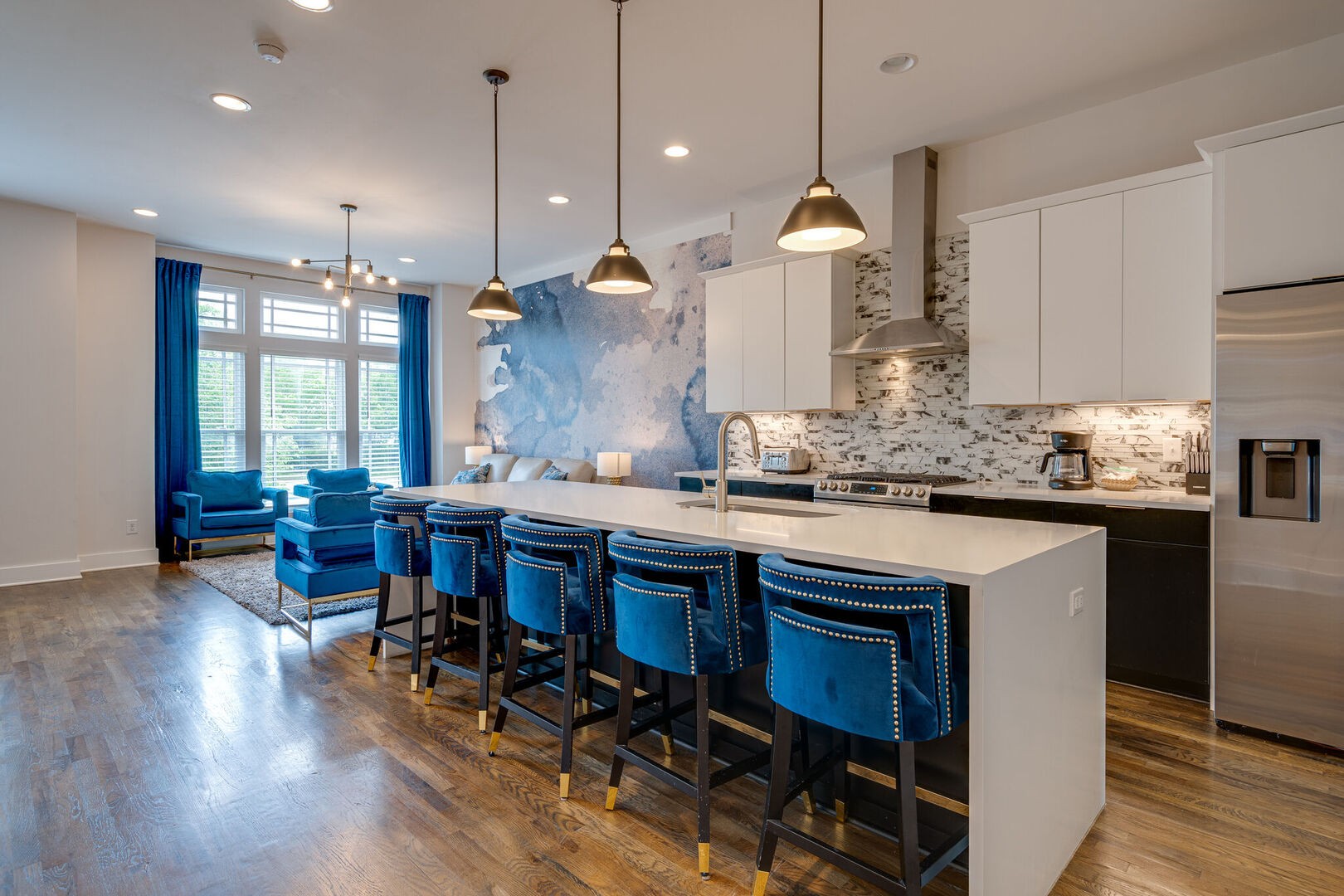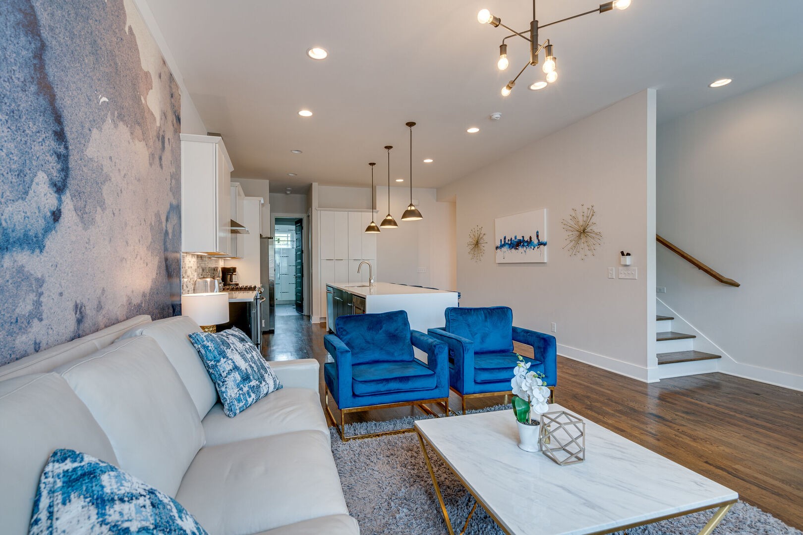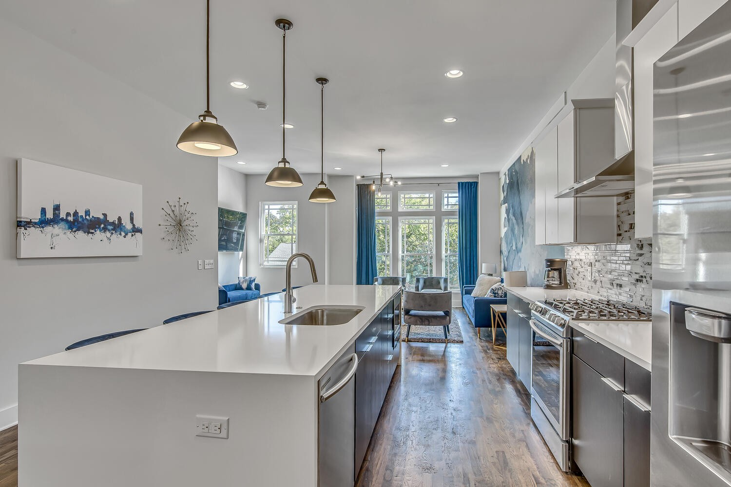 Welcome to Blue Horizon, your dream home away from home, located in Midtown. As you enter this beautifully designed home, you’ll immediately feel at ease with the spacious and open-concept living room and kitchen area that exudes warmth and comfort. The living room features plush sofas and chairs where you can sink in and relax while catching up on your favorite TV shows on the large flat-screen television mounted on the wall. The modern kitchen is fully equipped with high-end stainless steel appliances. Accepting most lease lengths, subject to availability! The rental rate listed is valid for leases with nights stayed in March 2024 – October 2024. Please inquire for seasonal rates. The unit is fully furnished and cannot be unfurnished unless otherwise mentioned. The monthly rental rate listed does not include utilities, security deposit, or management fees unless otherwise explicitly stated. GoodNight Stay requires a signed/executed lease agreement and certified funds (wire).