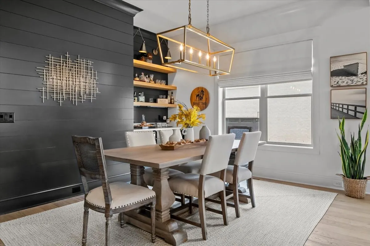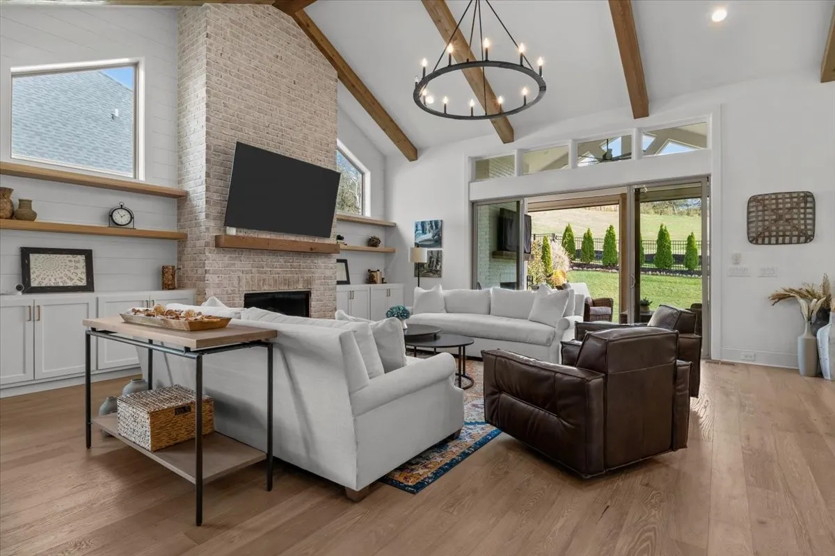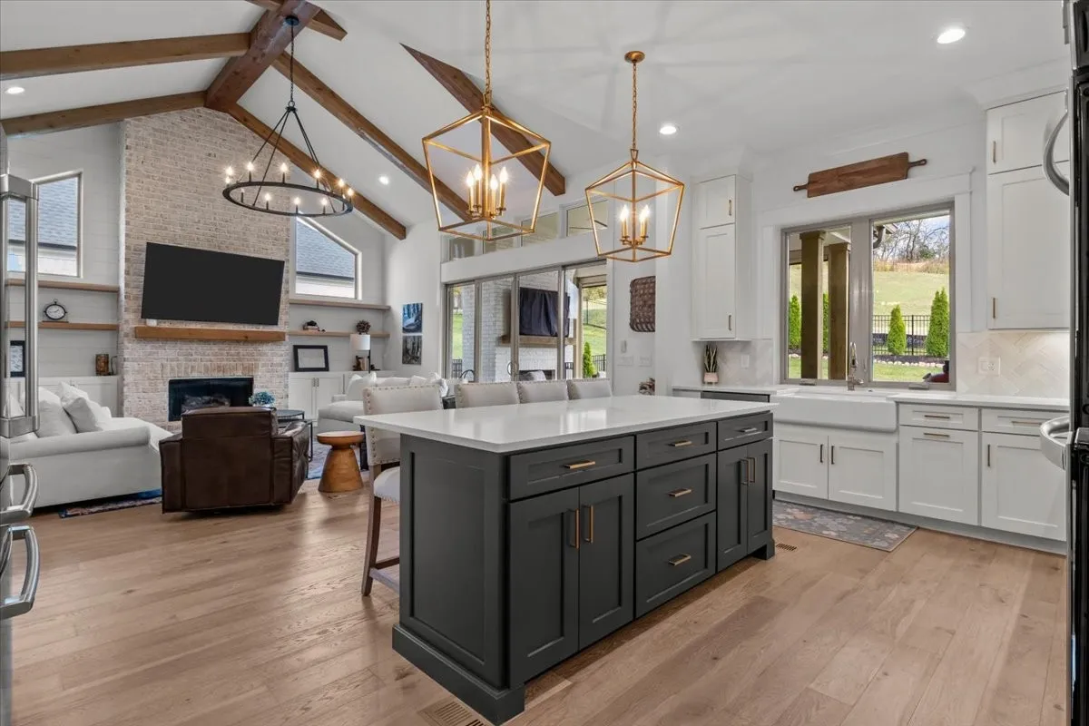 From the moment you step inside, the home’s intentional layout becomes immediately clear. The main living spaces flow effortlessly, creating an inviting atmosphere ideal for both daily routines and large gatherings. The Chef’s Kitchen serves as the heart of the home, featuring high-end appliances, generous counter space, and a beautifully organized walk-in pantry. This culinary space opens seamlessly into a warm and welcoming Family Room accented by striking exposed beams, adding both architectural character and a sense of openness.