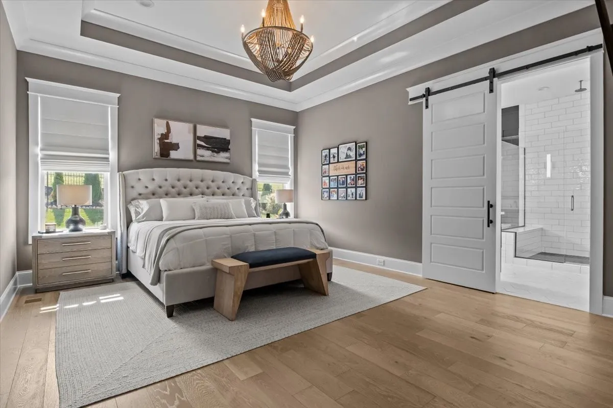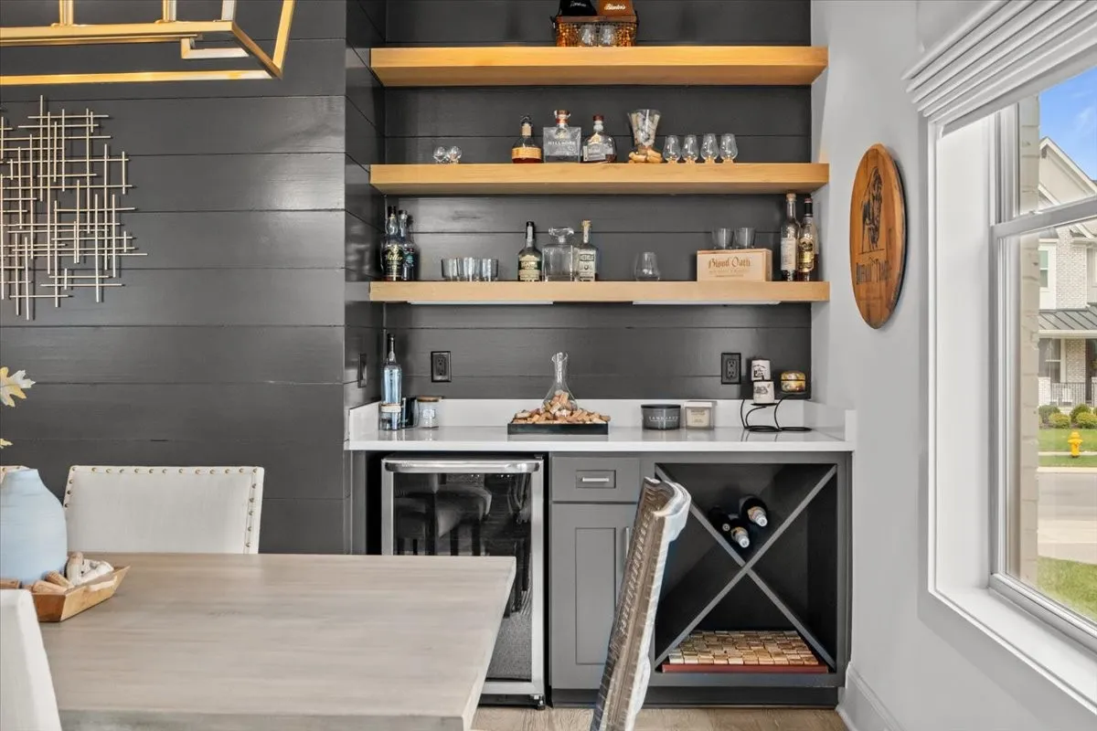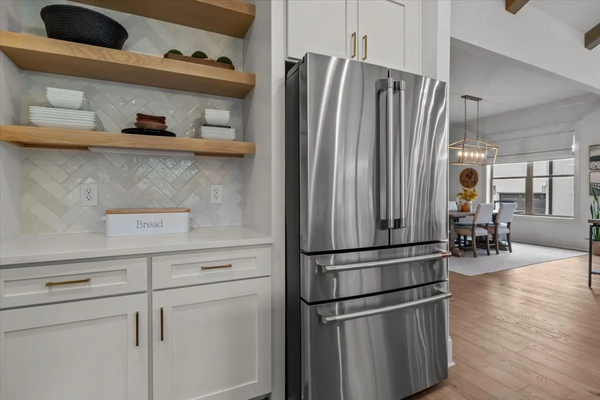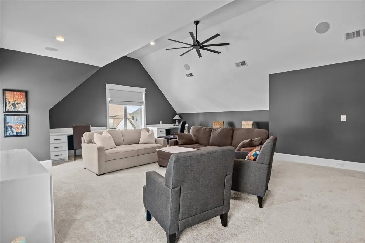 From the moment you step inside, the home’s intentional layout becomes immediately clear. The main living spaces flow effortlessly, creating an inviting atmosphere ideal for both daily routines and large gatherings. The Chef’s Kitchen serves as the heart of the home, featuring high-end appliances, generous counter space, and a beautifully organized walk-in pantry. This culinary space opens seamlessly into a warm and welcoming Family Room accented by striking exposed beams, adding both architectural character and a sense of openness.