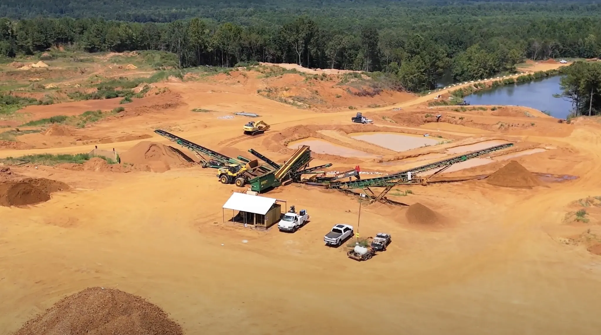 Water Supply: A 15-acre pond on-site provides a sustainable water source for washing, along with a series of 6 settlement ponds for efficient water management.
