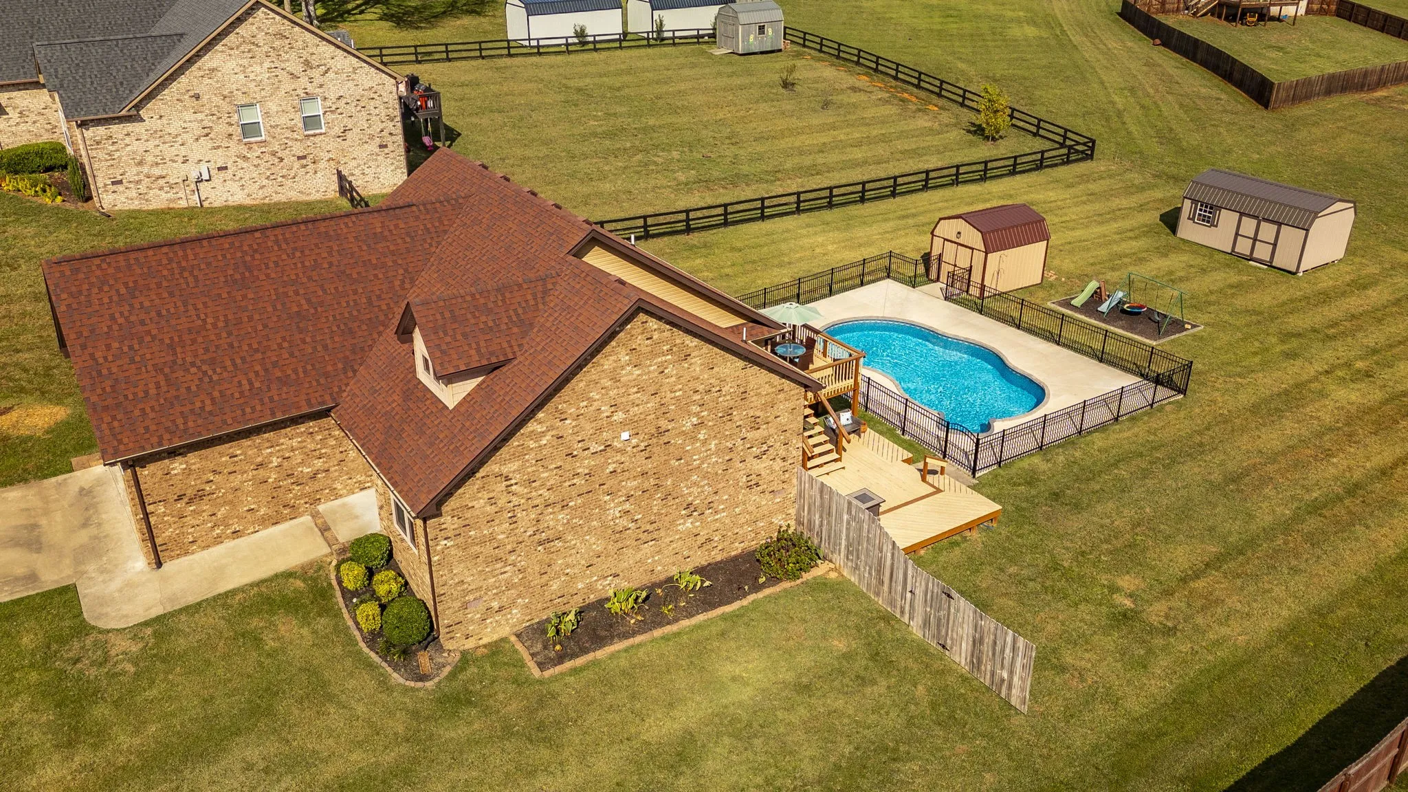 Step outside to your own private retreat featuring a heated in-ground pool, fully fenced and complemented by a spacious deck and patio area—perfect for gatherings, lounging, or summer cookouts. The pool area includes a dedicated attached pool storage building, plus an additional storage building for tools, hobbies, or seasonal items.