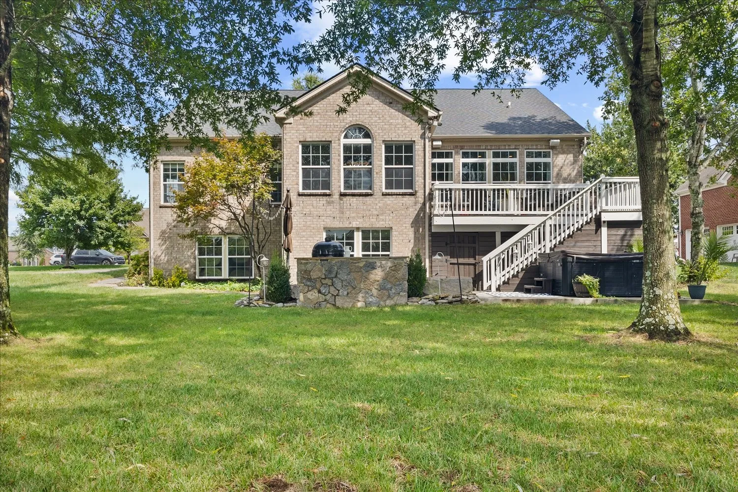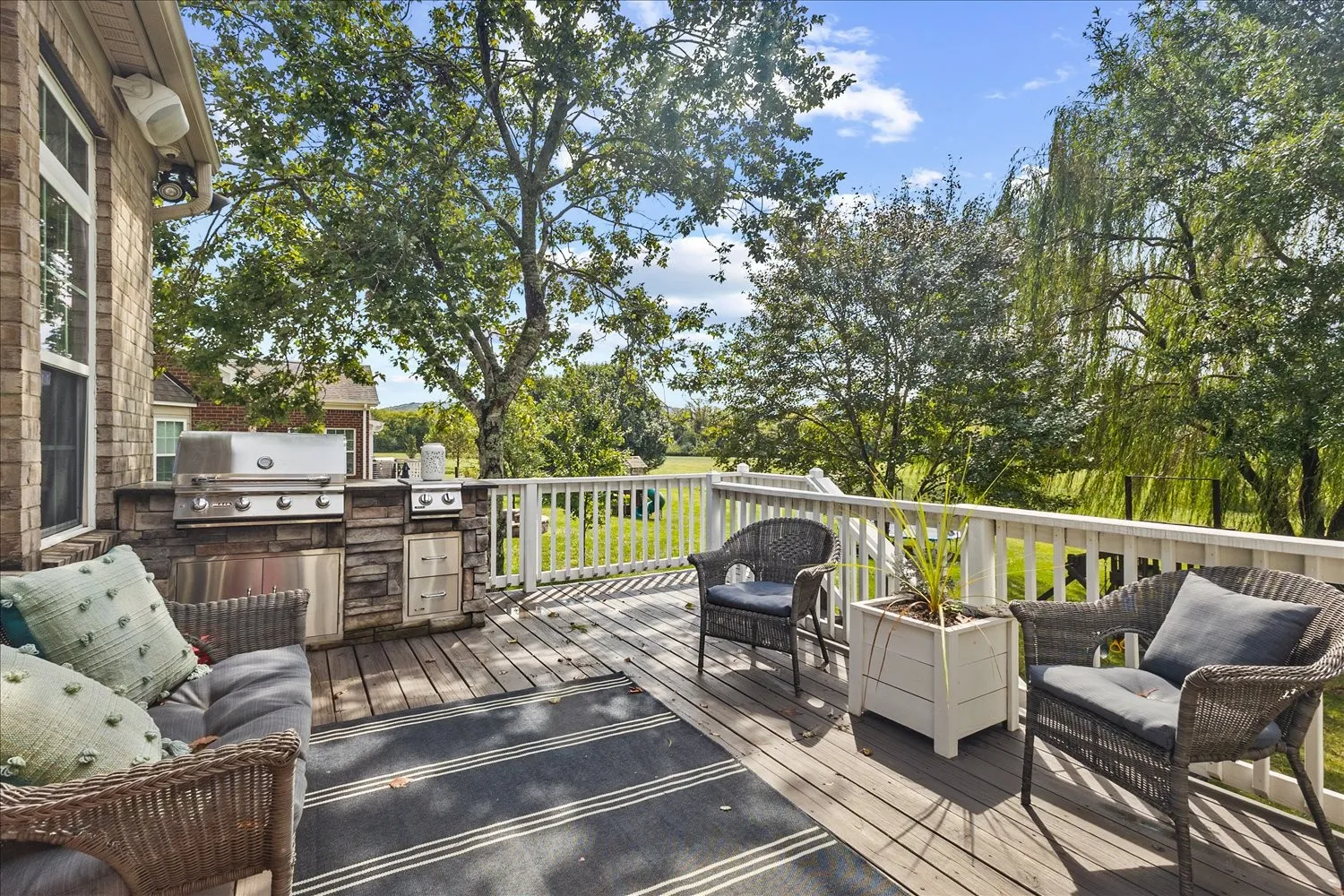 Outdoors, enjoy a large backyard with mature trees and no homes behind for added privacy. Relax on the upper deck, or host gatherings on the lower patio with built-in smoker and expansive paved entertaining space. Whole-home Sonos surround sound and smart wiring complete the experience.
