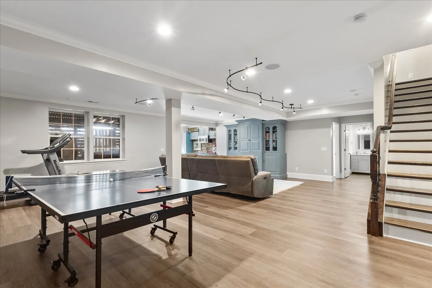 The finished basement features a spacious great room, theater, game room, second kitchen, extra laundry, and a private guest suite—ideal for entertaining or multi-generational living.