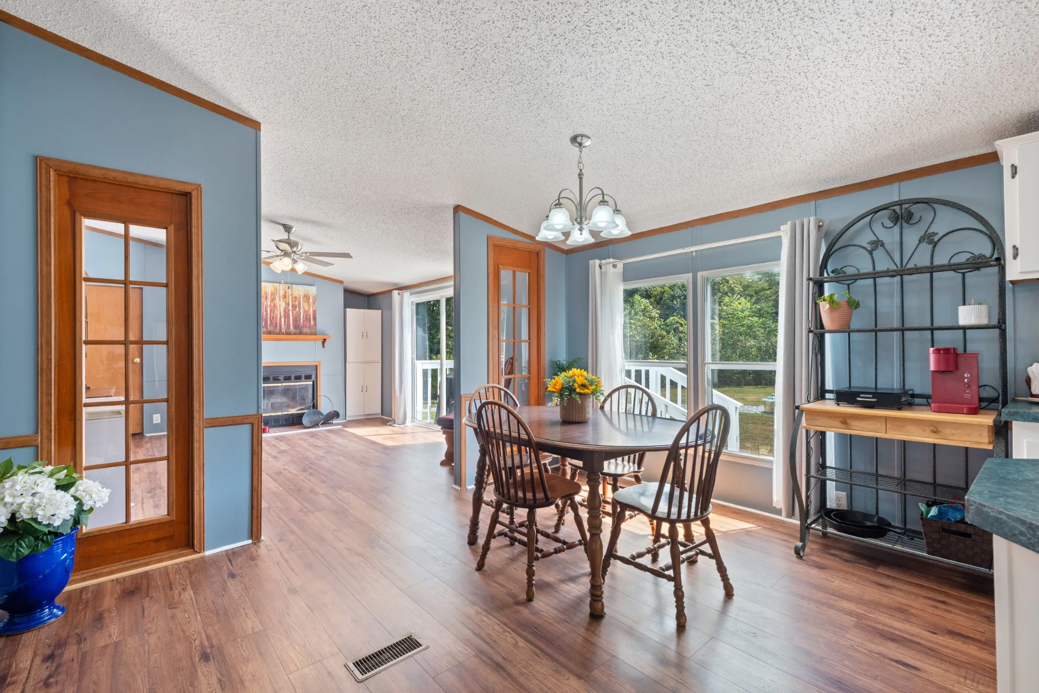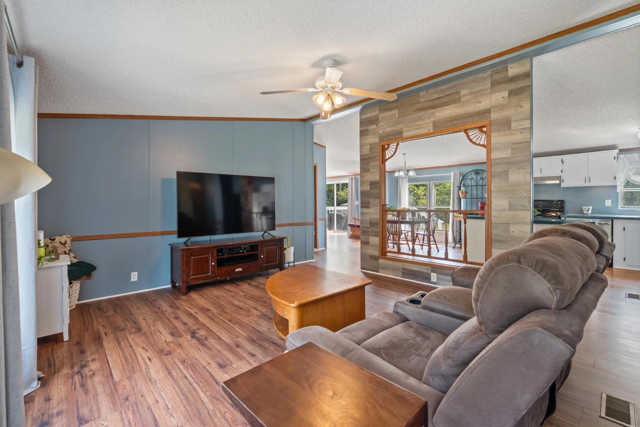 Inside, the home features an open-concept layout with brand NEW LVP flooring throughout and most every room FRESHLY painted. The spacious kitchen boasts abundant cabinetry with new lighting underneath, a convenient pantry and a new dishwasher**The inviting living room centers around a wood-burning fireplace, while each bedroom includes LARGE or WALK-IN closets and NEW ceiling fans for comfort and efficiency. Additional highlights include a FULLY ENCAPSULATED crawlspace for peace of mind.\n