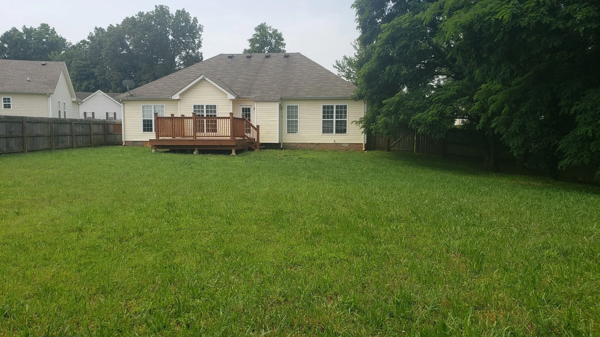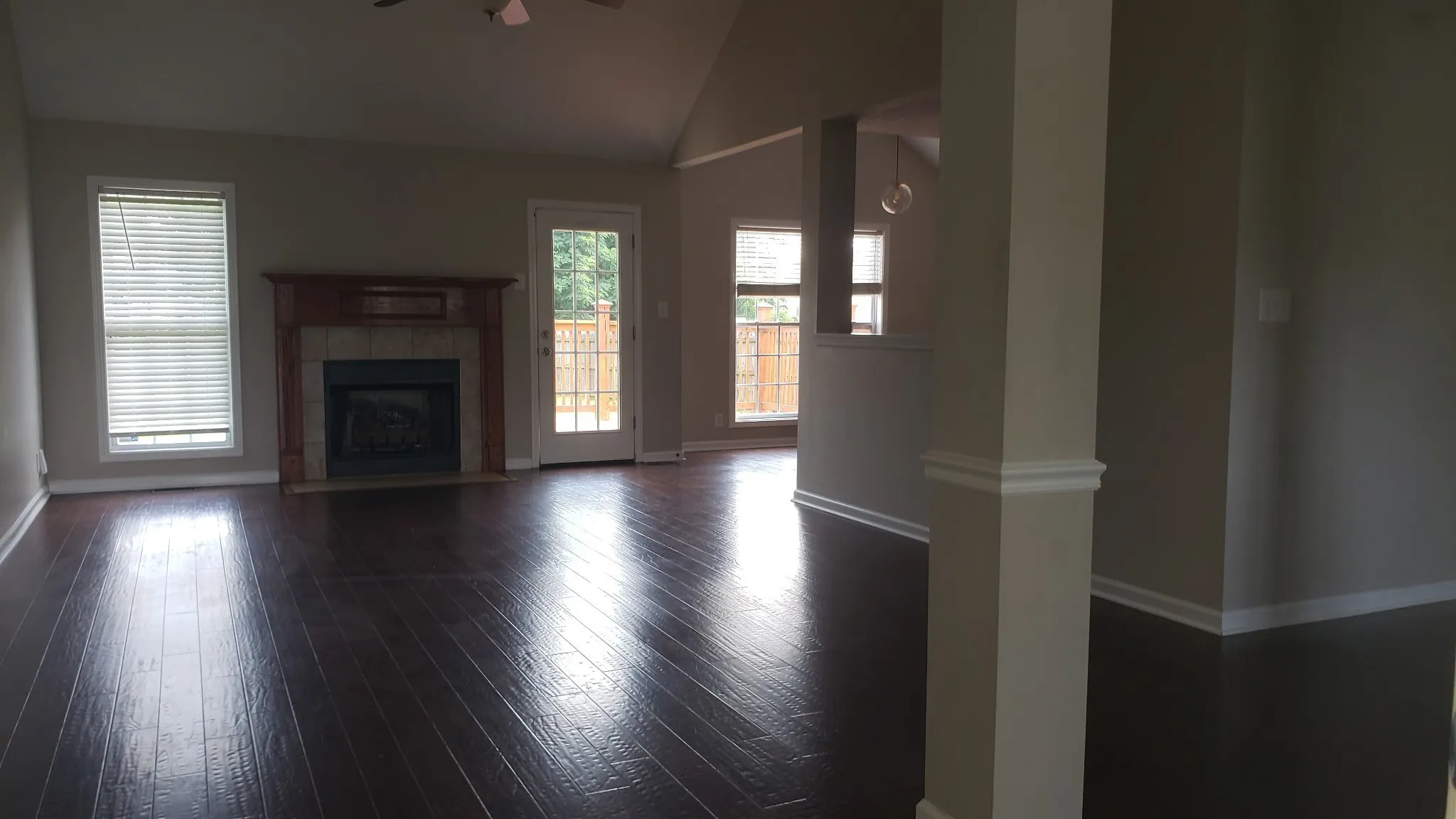 Now Vacant, Charming home located on a cul-de-sac. The home has high ceilings, open concept floor plan, hardwood floors in the Living Rm, Dining Rm, and hallway and a gas fireplace. Split Bedroom floor plan. Fully fenced back yard with deck is great for entertaining. Dogs OK, NO Cats