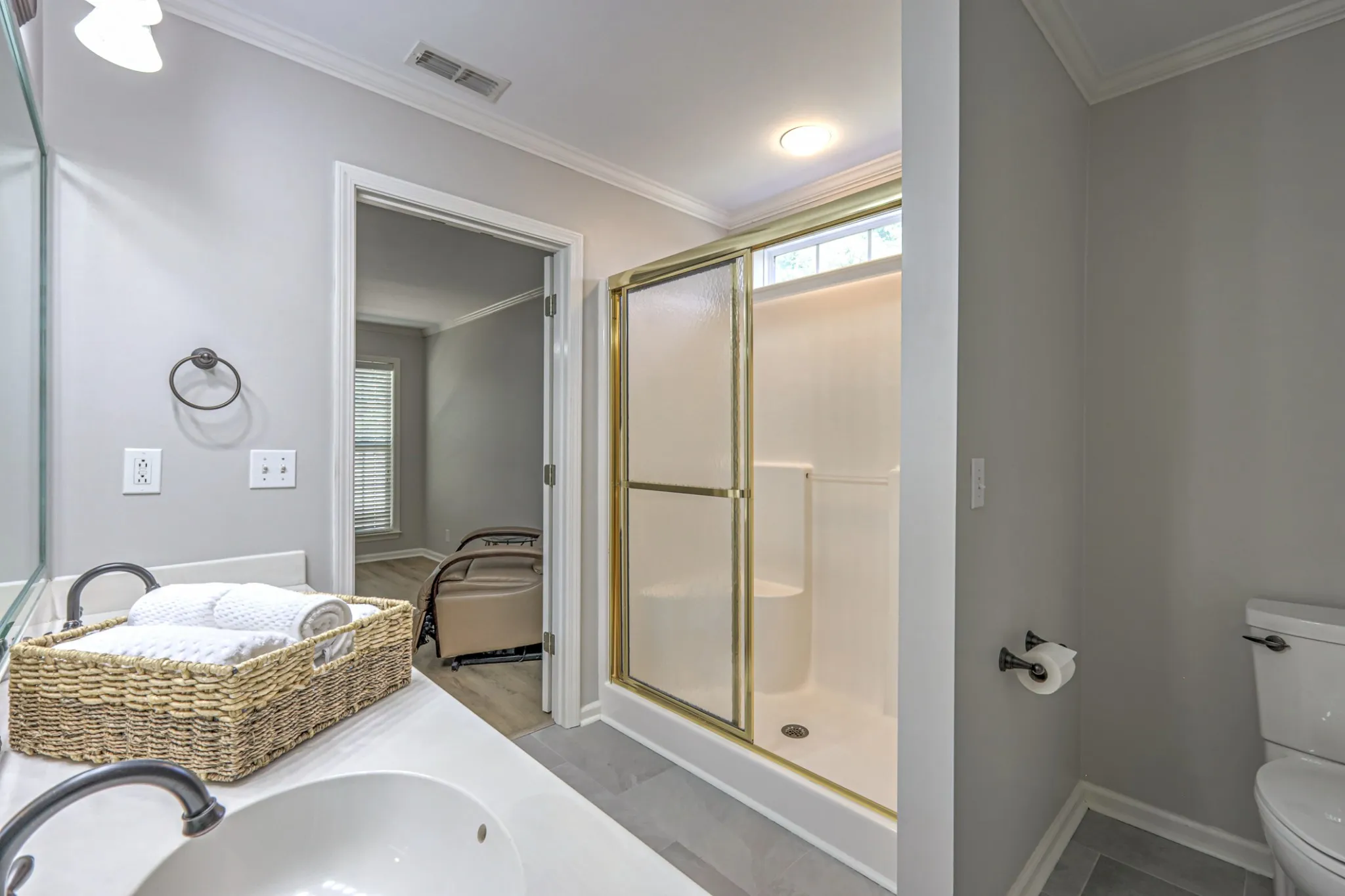 The main level features 2 bedrooms, including the Primary Suite, and 2 full baths. The open living and dining areas create a welcoming space for everyday living and entertaining, flowing seamlessly into a well-appointed kitchen with plenty of storage, workspace and breakfast room. Natural light fills the home, enhancing its warm, comfortable atmosphere.