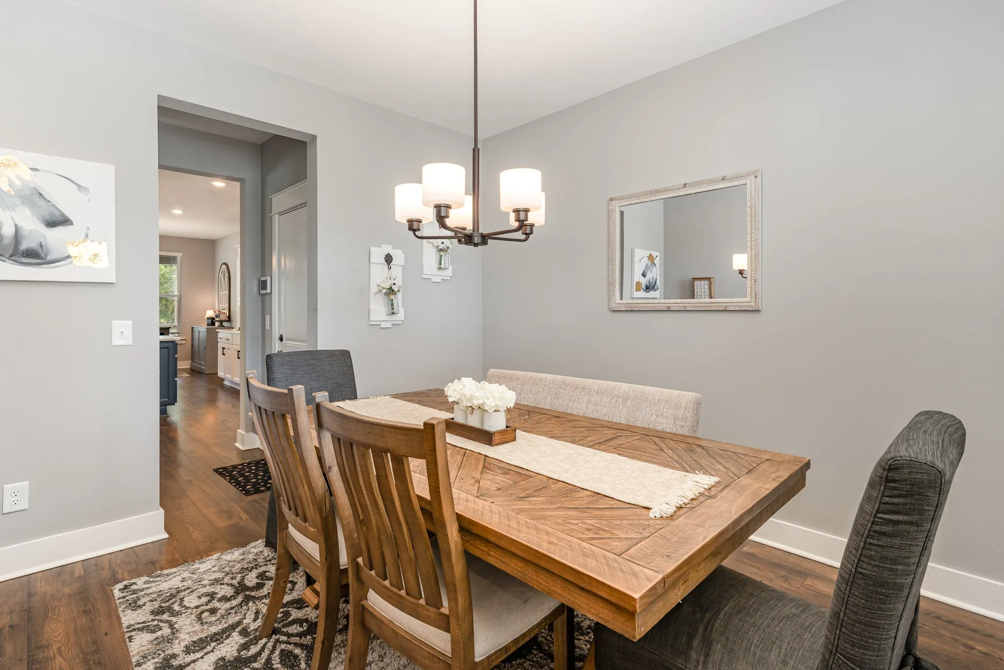My favorite part is the back yard! A covered deck plus a patio area, looking onto the walking path, tree line, and the pond! No homes directly behind you, it’s like living in a park! The walkability of Baird Farms is just a short walk to the play ground and pool! The grocery store, restaurants, and shopping are 1.5 miles away! The airport is 15 minutes. Downtown Nashville 25 minutes!