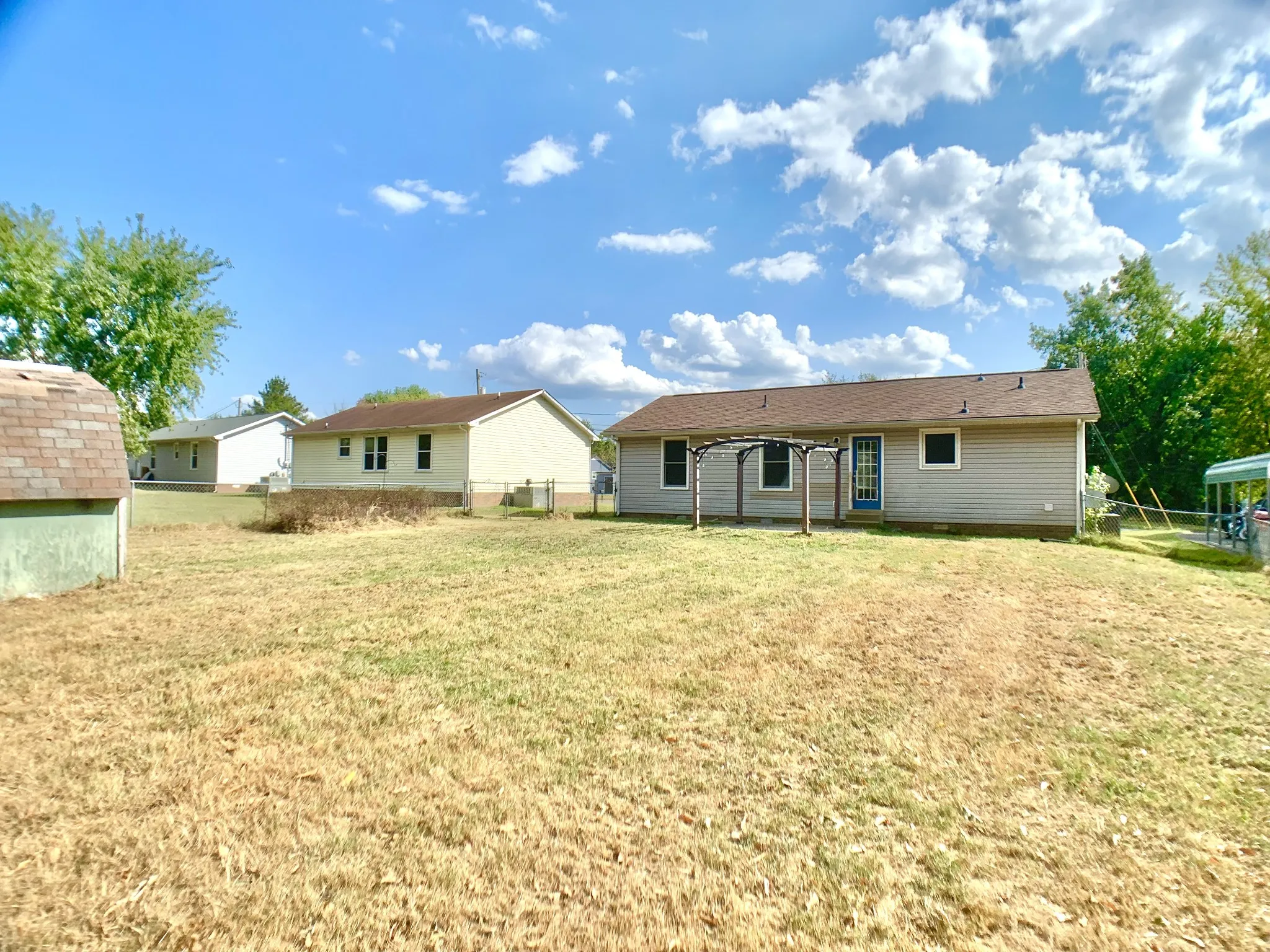 Step into comfort and style with this beautifully maintained 3 bedroom, 2 bathroom home located just a short drive from Fort Campbell. The spacious living room features vaulted ceilings, creating an open and inviting atmosphere perfect for relaxing or entertaining. Each bedroom offers a lot of closet space, ensuring plenty of room for storage and organization. The primary suite includes a private full bath for added convenience and comfort. Outside, enjoy a fully fenced backyard, ideal for pets, play, or weekend gatherings, plus a handy storage shed for tools and equipment.