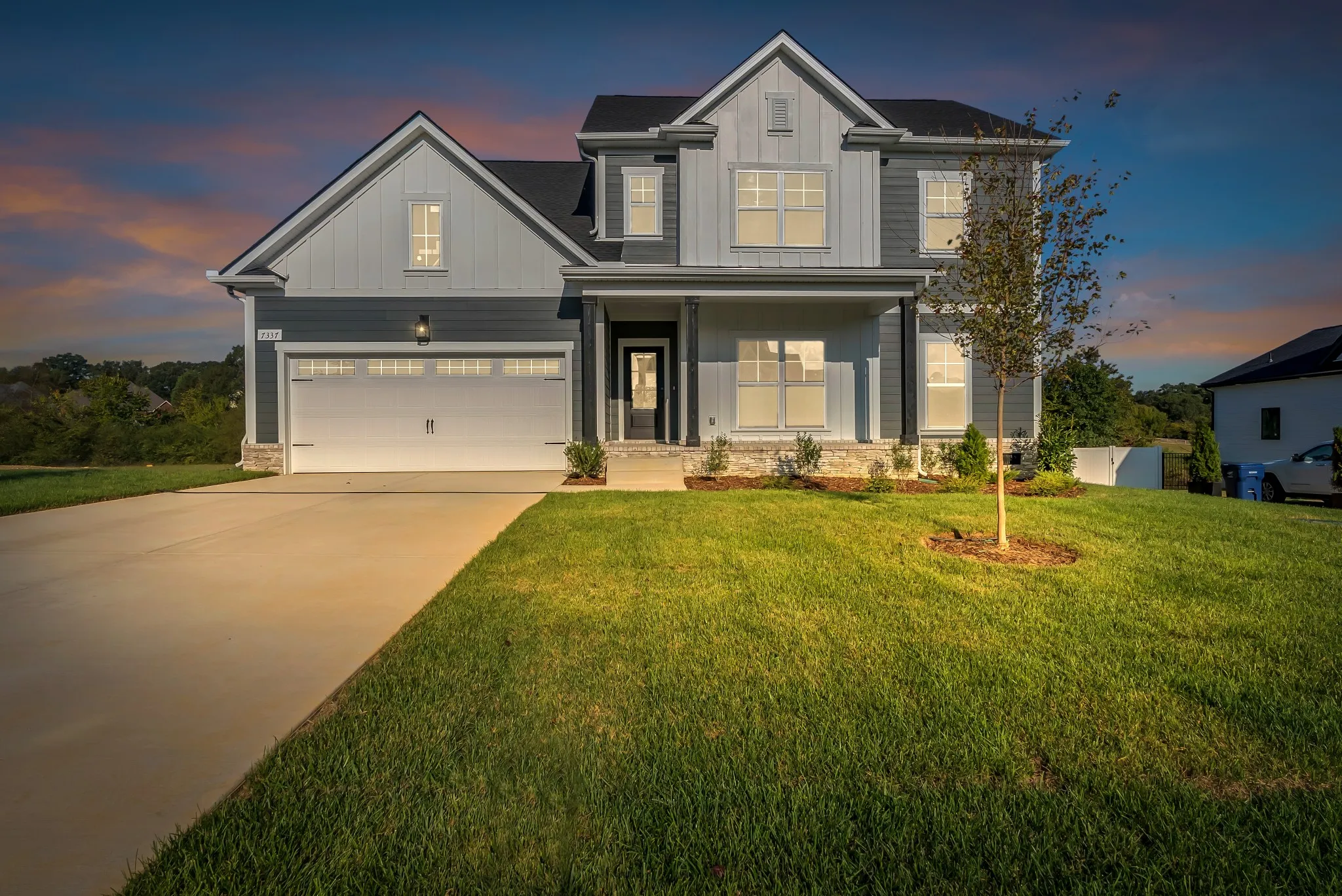 This BEAUTIFUL NATCHEZ floorplan will not be on the market long! This home boasts of 3,049 sq.ft. and is luxury living at its finest! With 4 bedrooms and 3.5 baths there is plenty of room for everyone! With its spacious open floorplan and primary bedroom on the main floor this home has everything you are looking for. While cozying up to the outdoor fireplace you can enjoy the beautiful scenery Fairview has to offer. While offering a rural atmosphere, Richvale is located just 35 minutes outside of Nashville and will be WALKABLE TO FAIRVIEW TOWN CENTER!, Richvale Estates brings new homes to the growing city of Fairview, Tennessee. This new community welcomes residents home with a beautiful brick monument at its entrance before pulling into driveways of nearly half-acre homesites featuring beautiful floor plans. These include spacious bedrooms with walk-in closets, luxurious kitchens with oversized islands, and open-concept designs to swoon over. Richvale Estates’ proximity to Nashville means modest commutes for in-office days or nights out in Music City. Its location is also ideal for avid shoppers, hungry foodies, and outdoor enthusiasts, with shops, dining, and the 700-acre Bowie Nature Park just a short drive away.
