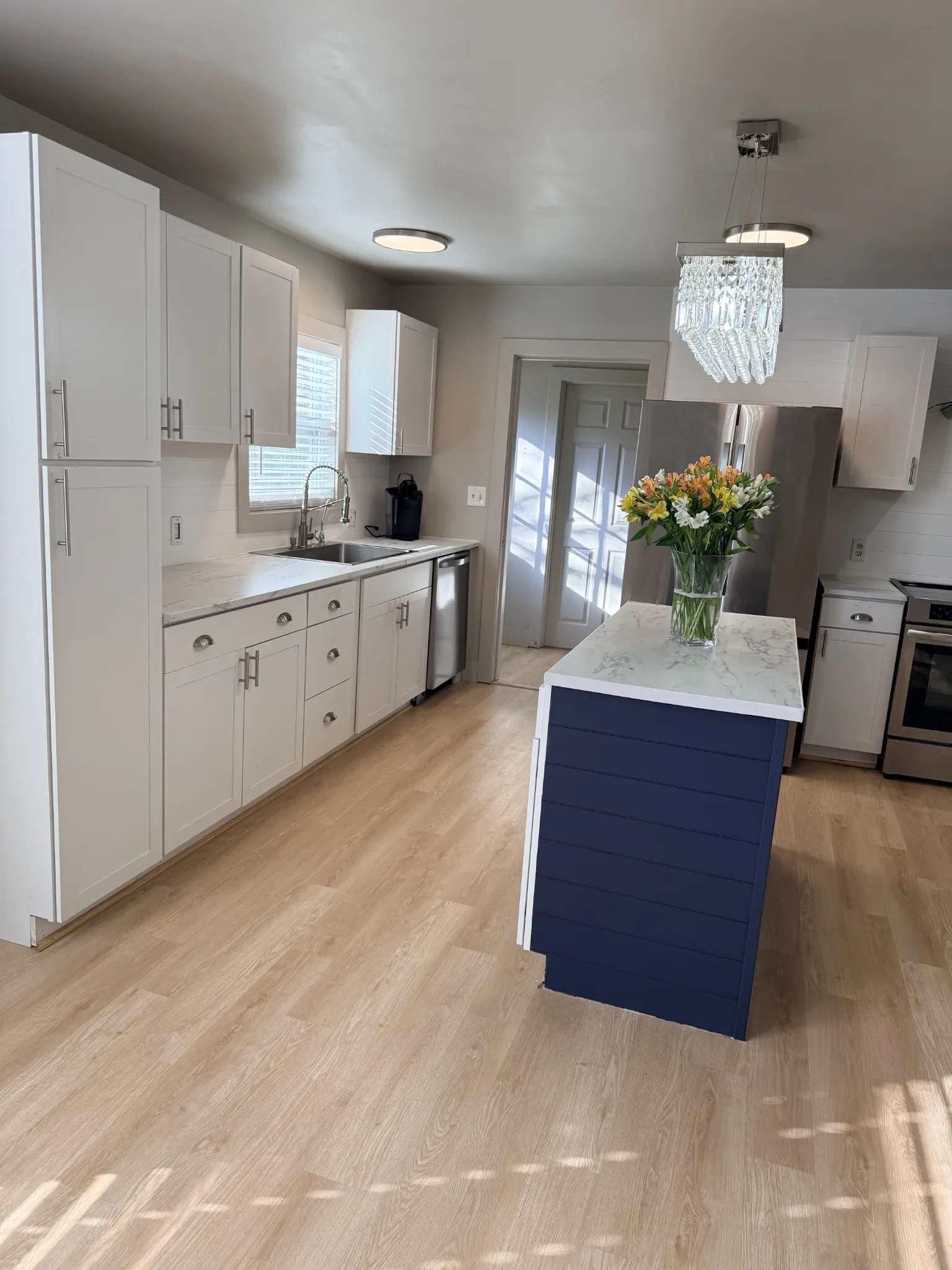 Come and see your new home at an amazing new price! Welcome to this move-in ready, all-brick ranch where thoughtful updates and modern touches create the perfect blend of comfort and functionality. This home has been meticulously upgraded from top to bottom, featuring three spacious bedrooms and two fully renovated bathrooms that offer sleek fixtures and contemporary design. Inside, brand-new laminate flooring flows throughout the entire space, setting a warm and modern tone that is complemented by fresh Benjamin Moore Scuff-X paint and new overhead lighting. The kitchen is a true showstopper, having been entirely gutted and rebuilt with all-new cabinetry, beautiful countertops, and a functional center island that is ideal for both entertaining and everyday use. It features a premium suite of stainless steel appliances, including a voice-activated range hood, induction range, large refrigerator, and dishwasher, all designed with style and practicality in mind. Beyond the visible beauty, the “bones” of the home have been extensively modernized for total peace of mind. All walls have been insulated, a new roof was installed in 2023, and the property features all-new PEX plumbing, a partial new electrical system, a new hot water heater, and updated HVAC vents. The laundry room has been improved with updated washer and dryer hookups, and the crawl space has been fully waterproofed and reinforced with additional support structures for long-term stability. The exterior of the home is just as impressive, featuring fresh paint and a large front and back porch perfect for taking in the view. The backyard is like a scene from a park, with the property line ending at a small, flowing creek. You will often find deer wandering through the community, bringing a sense of natural peace to your doorstep. With no HOA and a one-year home warranty offered by the seller, this beautifully updated home is a rare find.