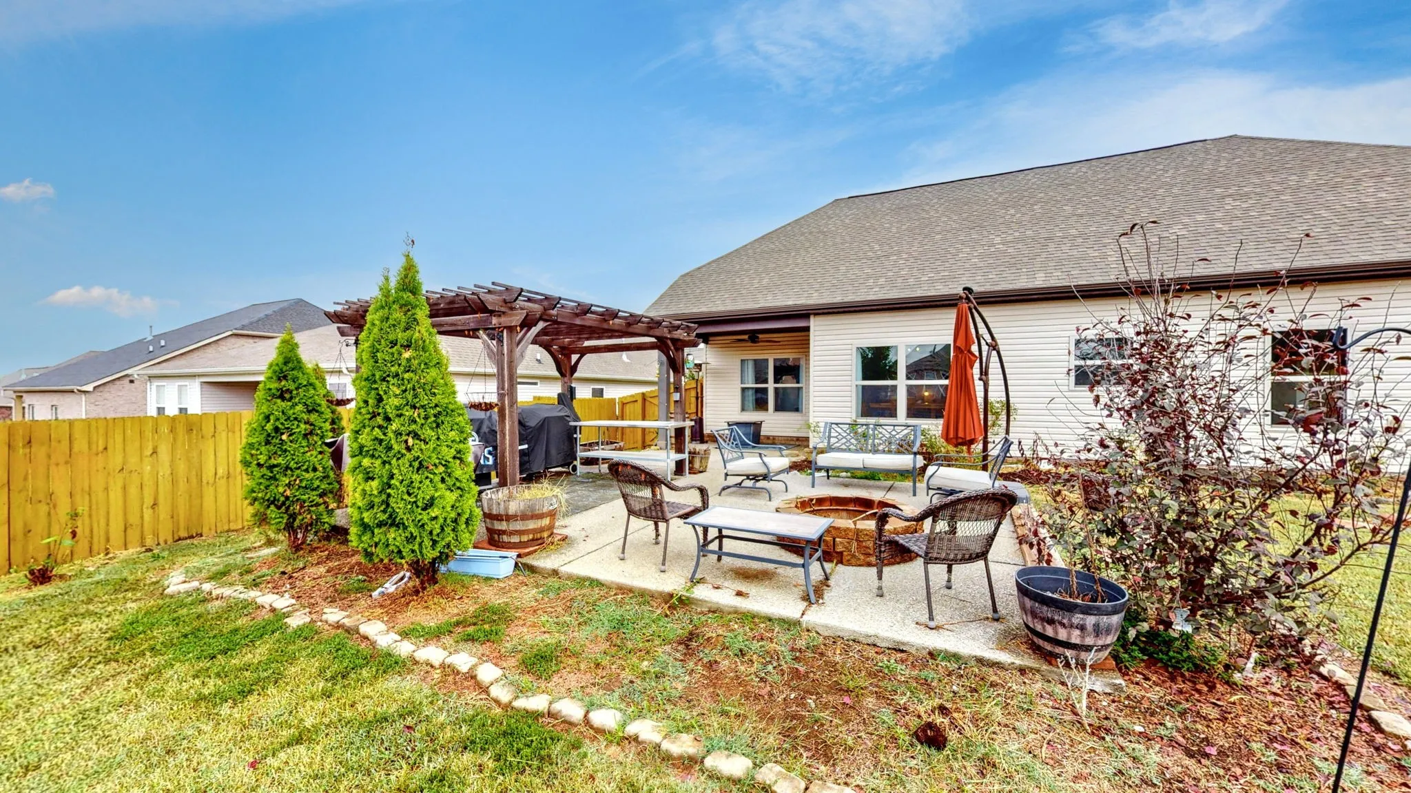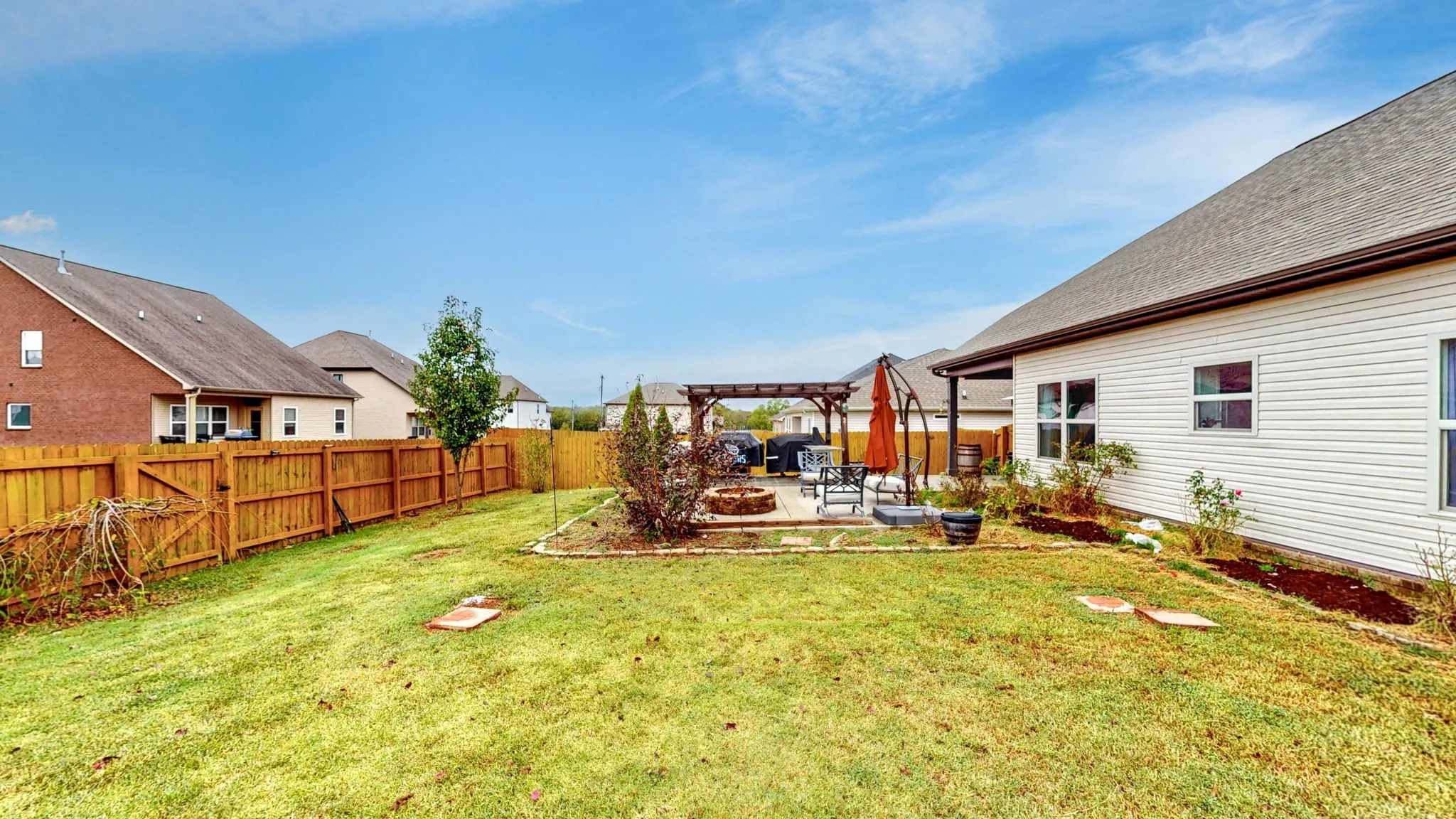 Built in 2019 this is One level living at its BEST. Spacious bedrooms, Vaulted ceilings, expansive lot with extended stamped concrete patio, fire pit, pergola and 10×10 shed all surrounded by a beautiful privacy fence. Beautiful hardwoods throughout all common spaces. Extra-large primary suite with walk-in shower and soaking tub PLUS 2 primary closets and a linen closet. Enjoy a perfect location with Hwy 386, Route 25 and SR 109 all minutes away. Convenient to Nashville and Hendersonville, you can enjoy the quaint square in Gallatin or many of the new restaurants and shops, with quick access to grocery stores and amenities.