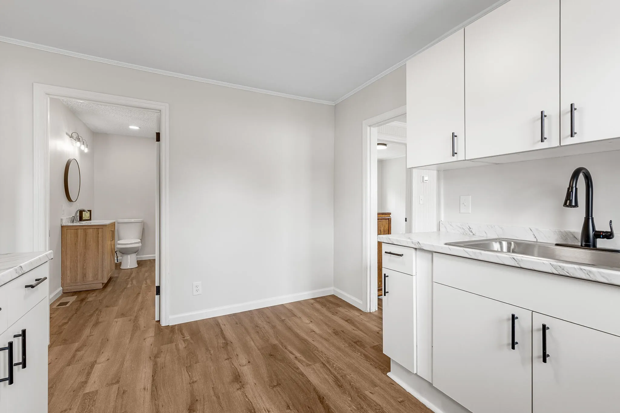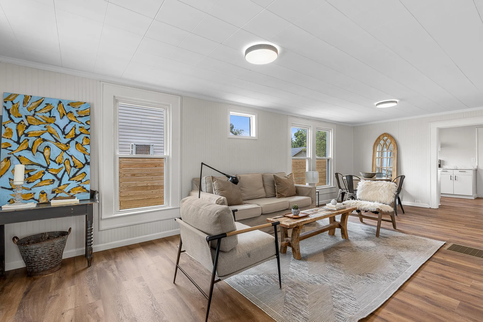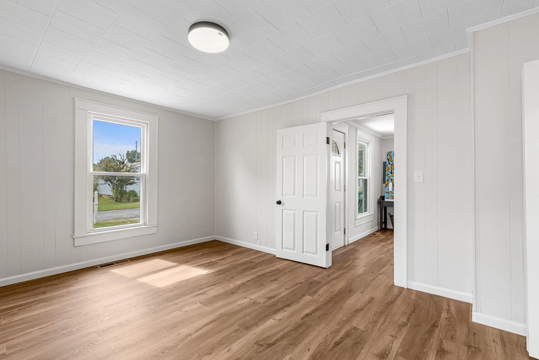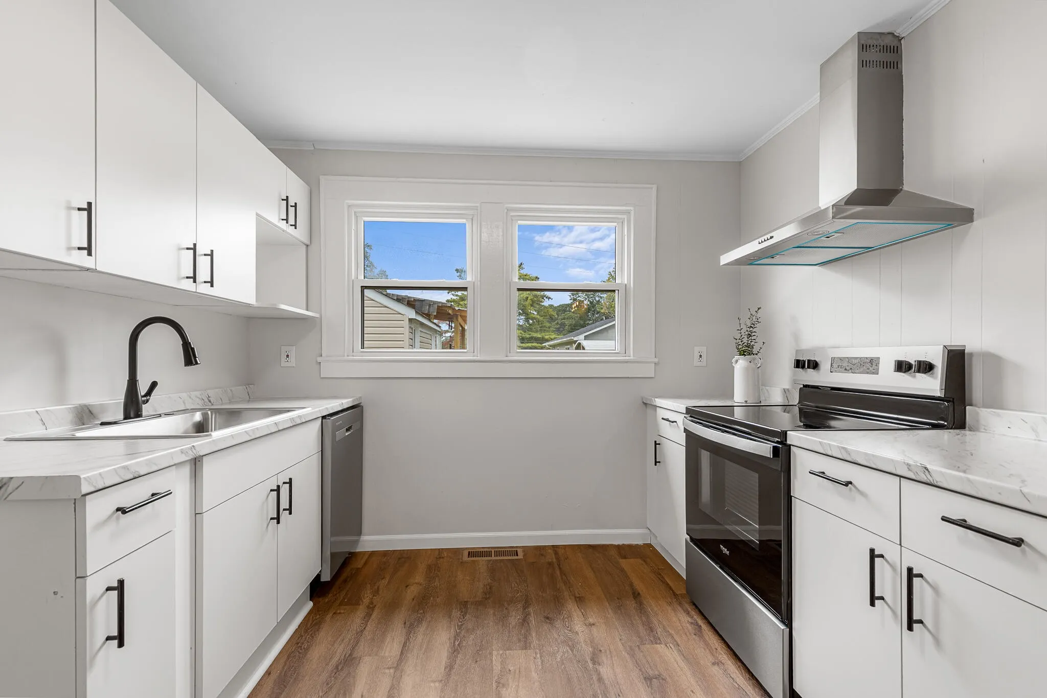 Welcome to 5289 Spriggs St—a newly remodeled 2-bedroom, 1-bath home that feels bright and inviting from the moment you step inside. An open living and dining area is lined with large windows that flood the space with natural light, while the refreshed kitchen showcases marble countertops and new appliances. The primary bedroom features a private French door entry that opens to the backyard, creating easy indoor-outdoor flow. Outside, two separate sheds add valuable versatility, including a dedicated workshop and an additional storage shed. A driveway with space for two cars completes this move-in-ready home that blends modern finishes with everyday practicality.