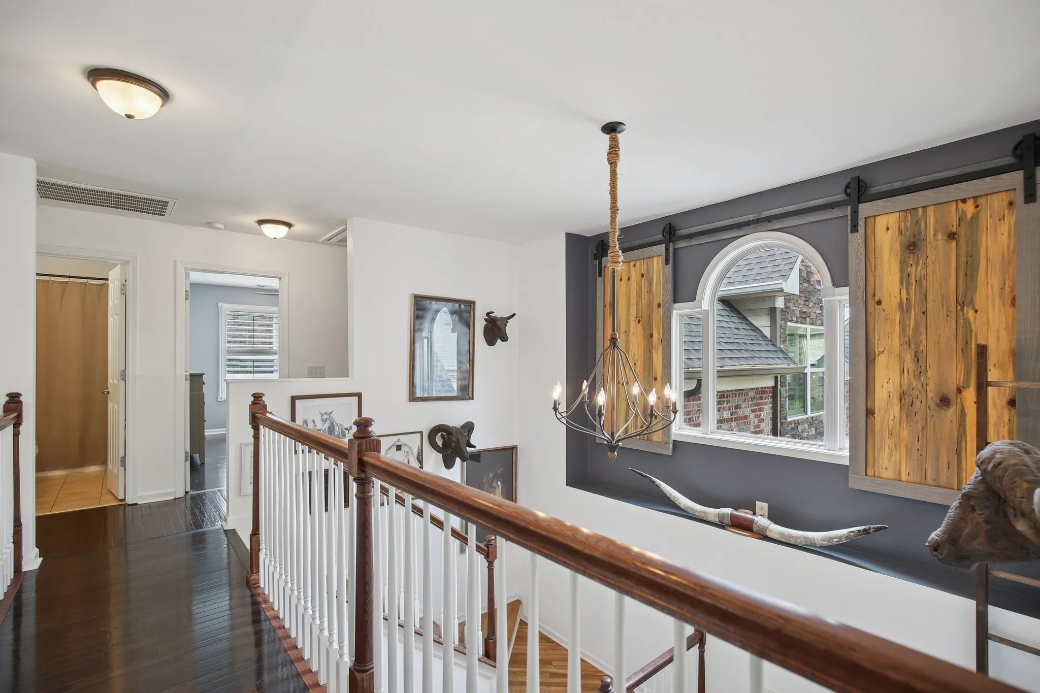 Discover a showpiece of style, comfort, and craftsmanship in one of Hendersonville’s most desired locations. Every inch of this home shines—gleaming hardwoods, plantation shutters, designer lighting, and hand-built barn doors create warmth and character throughout.\n