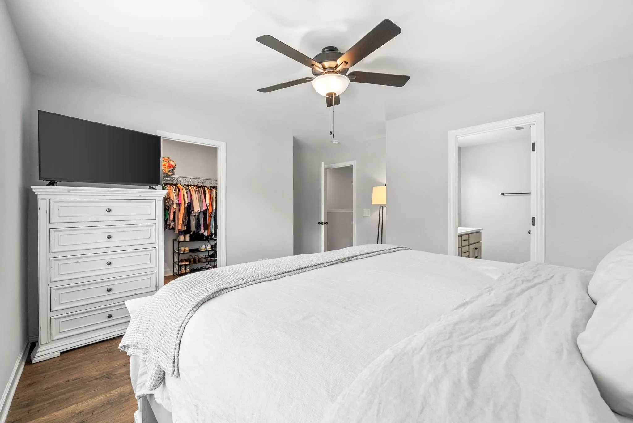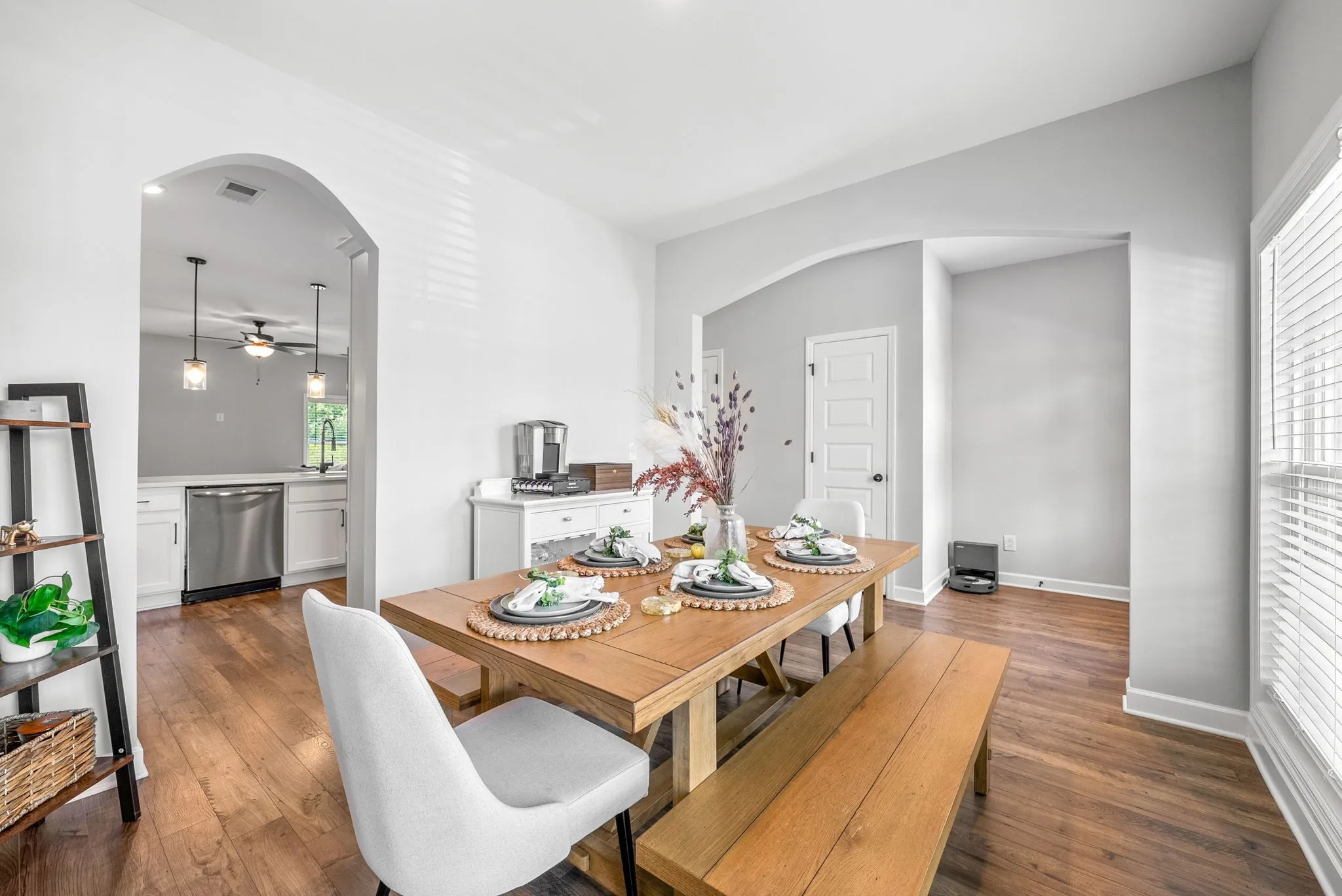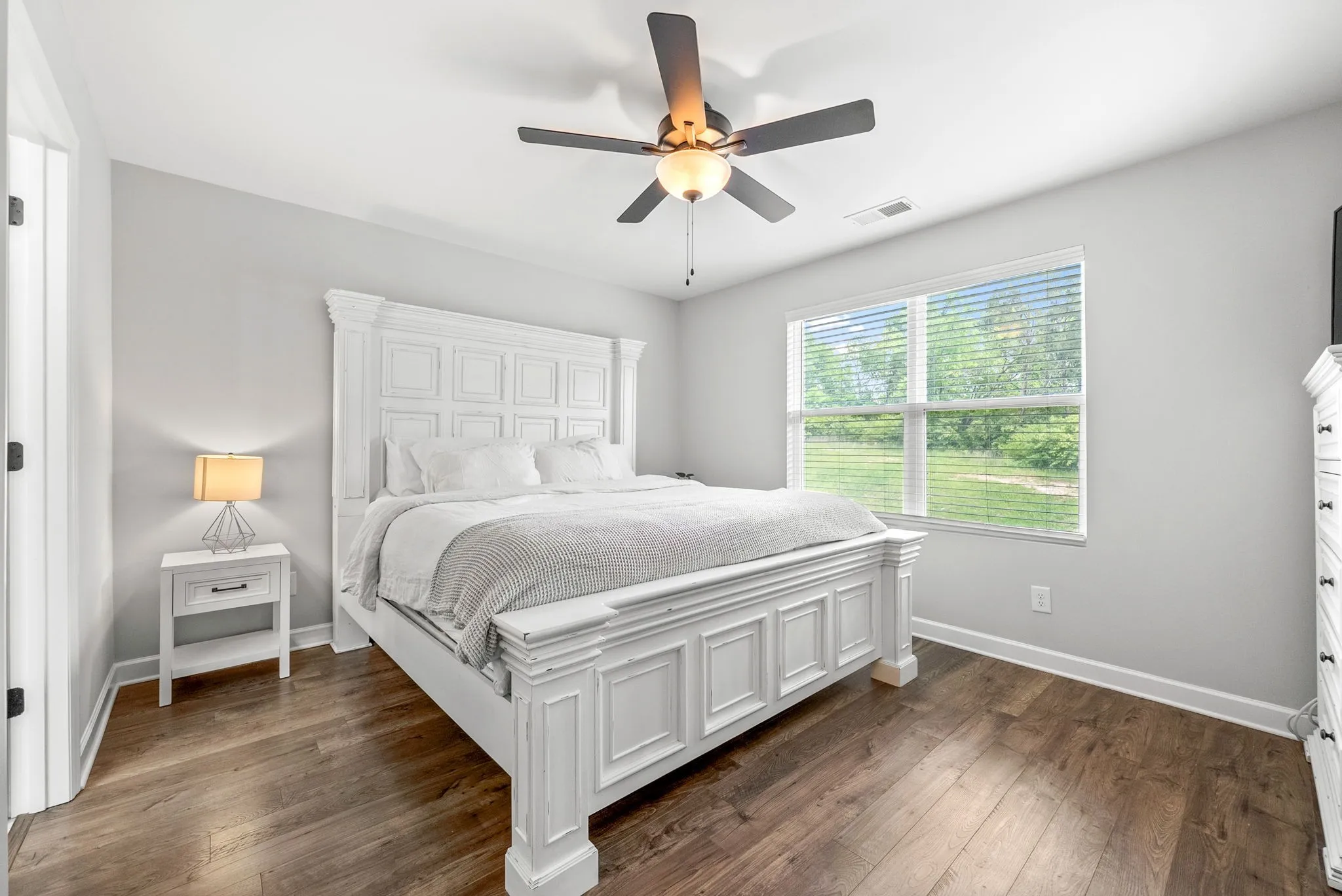 Additional modern touches include ceiling fans in all bedrooms and the living room, two high wall outlets for mounted TVs, a Wi-Fi extender upstairs, and spray foam insulation for improved energy efficiency.\n