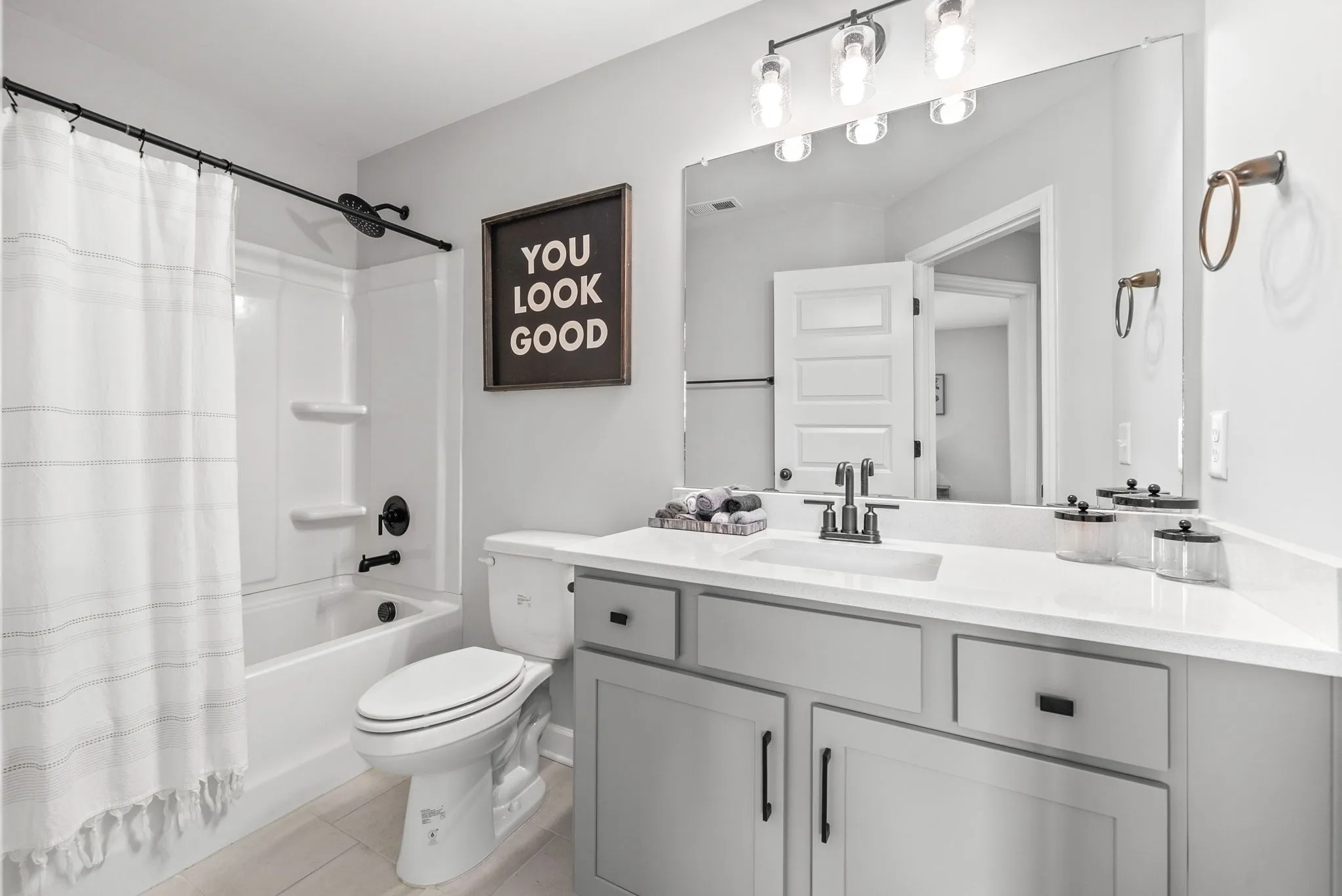 Enjoy rich, Mohawk-engineered hardwood flooring throughout, including the hardwood-stained staircase, complemented by tile flooring in the utility closet, laundry room, and all full baths. Retreat to the luxurious owner’s suite, complete with a floor-to-ceiling tiled shower, comfort-height toilets, and upgraded gray maple cabinetry.\n