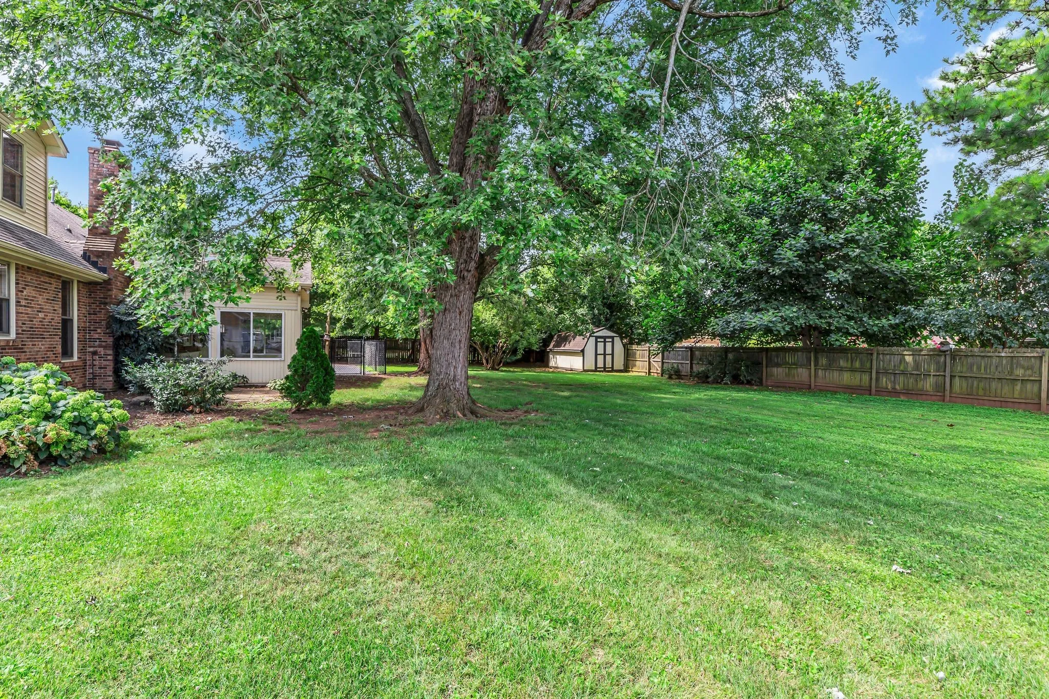 overlooking the almost half acre fenced backyard with a storage shed. Lots of hardwood flooring downstairs and large storage area upstairs the could be converted to another room. Please give 1 hr. notice before showing.