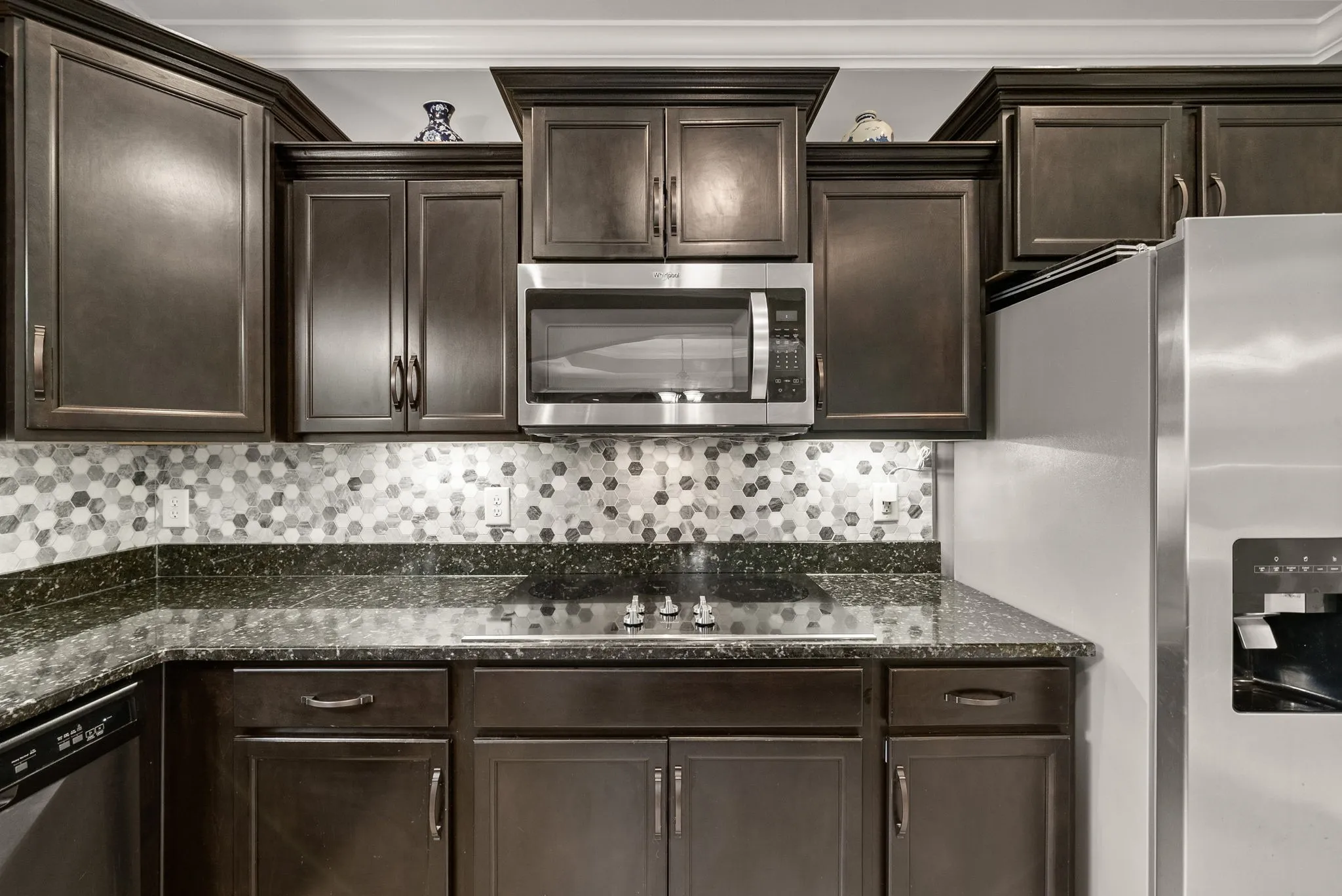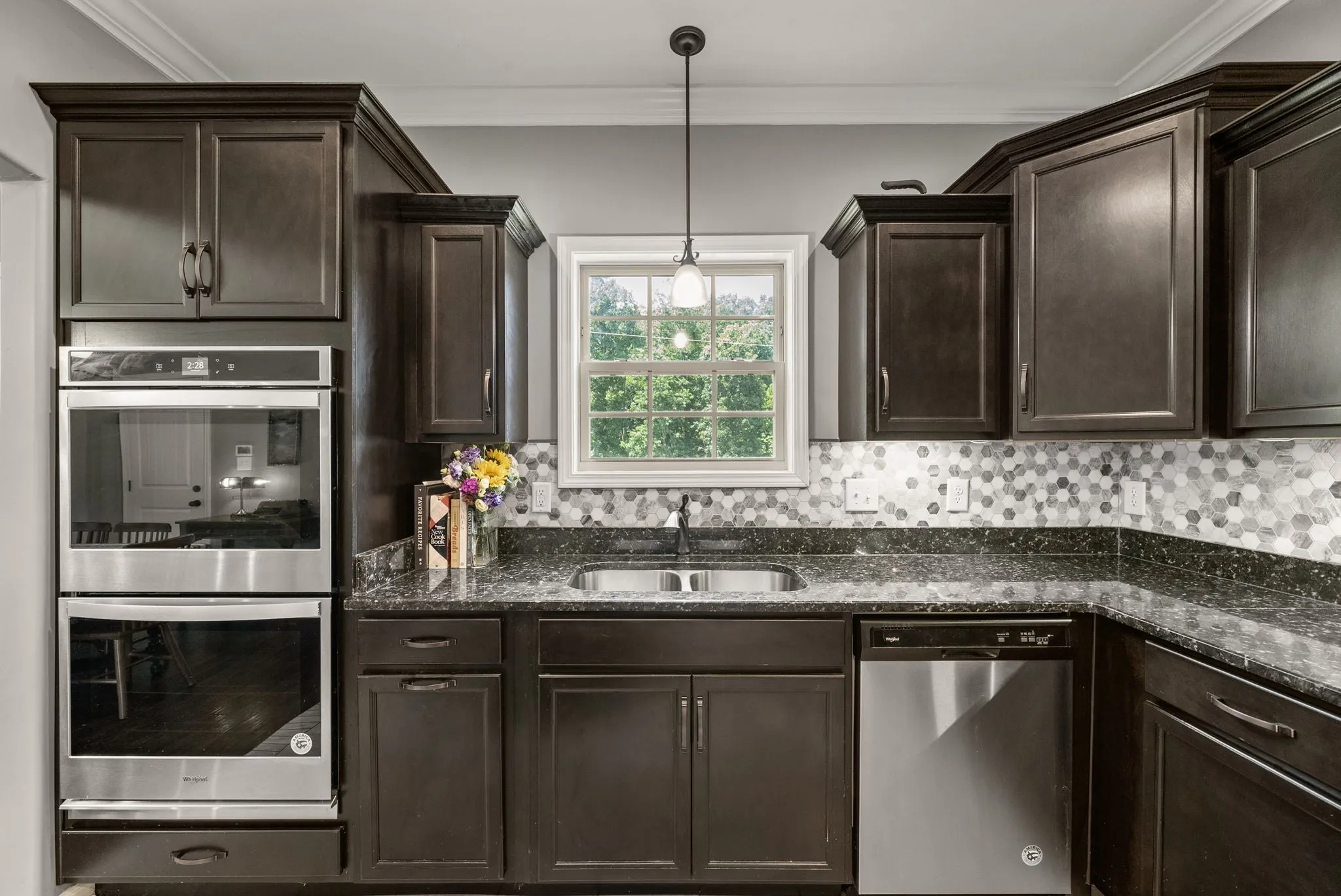 Step inside to an Open-Concept Design that flows seamlessly from the spacious Living Area With Fireplace to the Gourmet Kitchen featuring Granite Countertops, Large Island, Tile Backsplash, and Double Ovens. A Main-Level Bedroom with a Full Bath & Walk-In Tiled Shower makes an ideal guest suite or Multi-Generational Space.