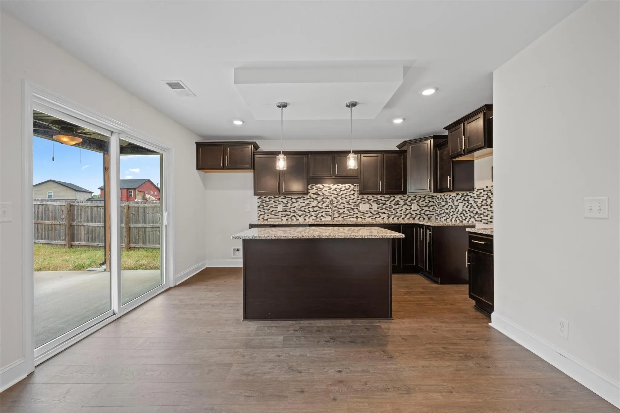 Upstairs, you’ll find a huge primary suite with a walk-in closet, double vanities, and a tiled shower for a touch of luxury. Step outside to enjoy the covered patio overlooking a large privacy-fenced backyard—ideal for relaxing or hosting gatherings. Conveniently located near Fort Campbell, shopping, and dining, this home offers the perfect mix of comfort, style, and convenience.