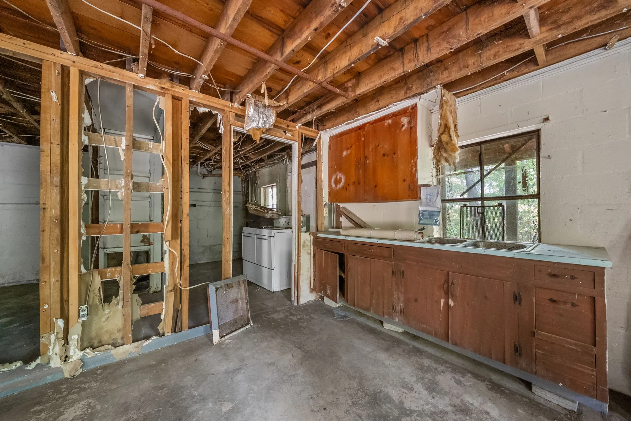 The basement has its own entrance and is separate from the main level, making it a prime candidate to be finished into a duplex or income-producing rental unit. At one time, it was fully finished with a kitchen and 2 bathrooms. It’s currently to the studs—ready for your vision to bring it back to life.