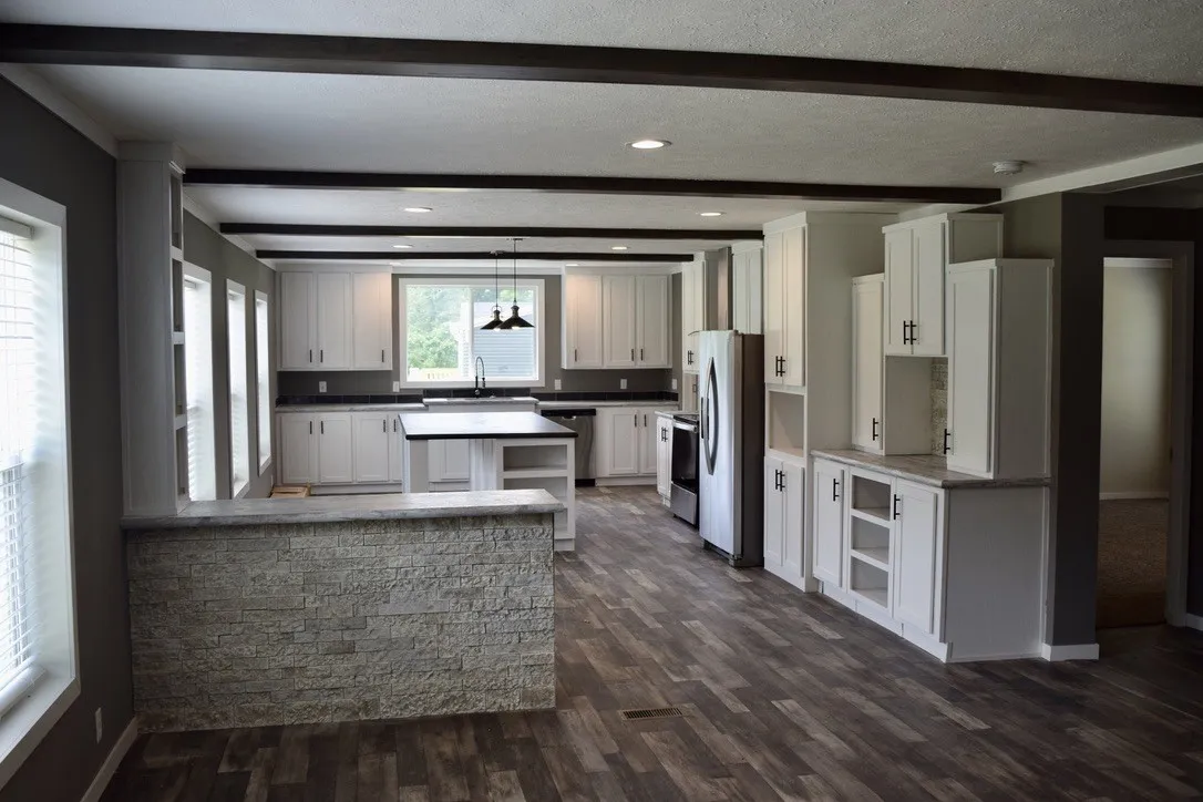 Spacious 3 Bed/ 2 Bath 1800 sq ft manufactured home on 5.01 acres in a country setting. Walk in the front door and get greeted by a built-in entertainment center in the living room with rock accents. From there turn left and to view the large island and all the natural light coming in. The kitchen boasts lots of storage, stainless appliances, and an eat-in area. Home also has a large utility room with a coat closet. The large primary bedroom has an ensuite of dreams, 6′ tile shower, stand alone tub, double vanity, and a large walk-in closet. Bedrooms 2 & 3 feature ample space and large walk-in closets as well. This home features all the Fleetwood Lafayette standards 2×6 exterior walls, 40-21-22 insulation package, Low-E windows, Full-Finish Drywall, LED lighting throughout. Come make this never lived in home yours today.