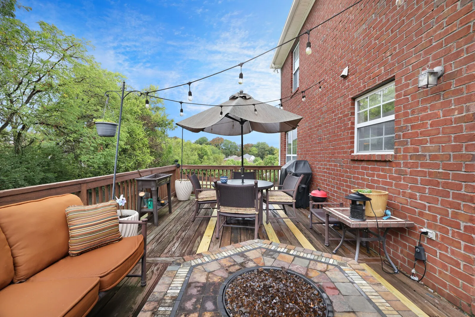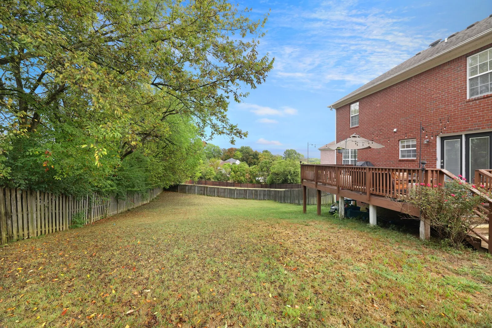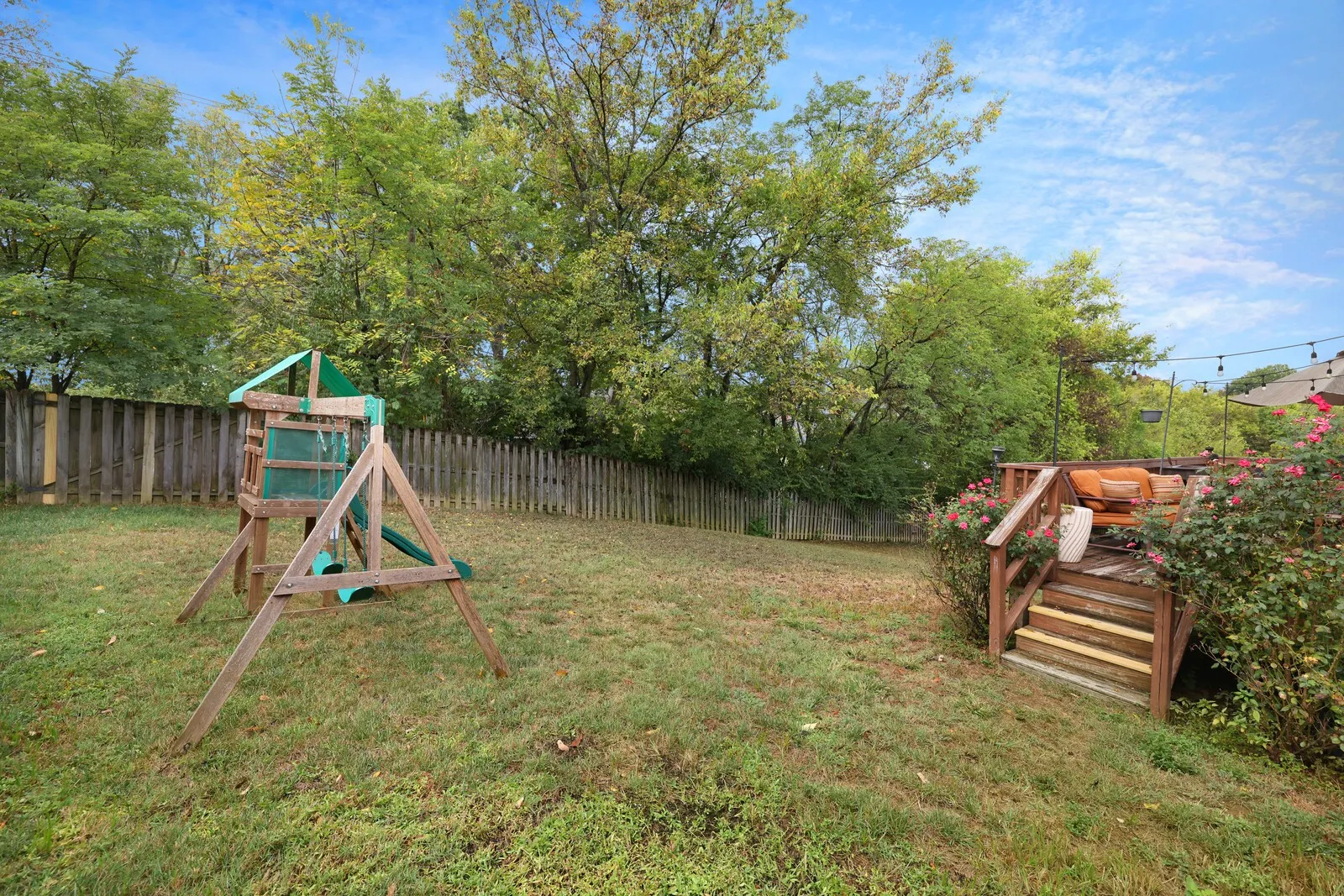 Step outside to enjoy your private backyard oasis. A large deck with string lighting and space for both dining and lounging overlooks the fully fenced yard, perfect for kids, pets, and outdoor fun. Keep an eye out for the friendly family of deer that often visits the neighborhood, adding to the peaceful, natural setting.