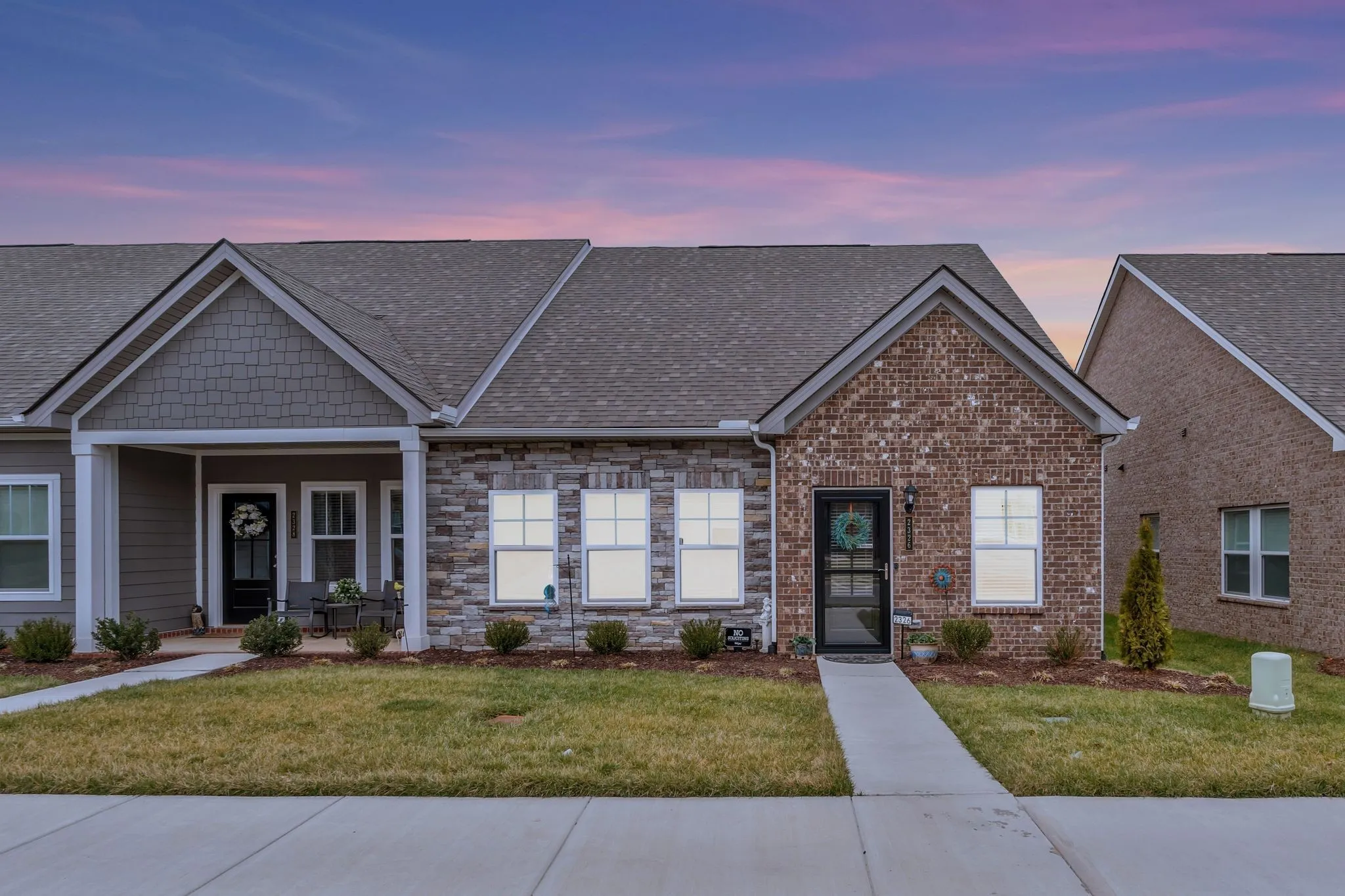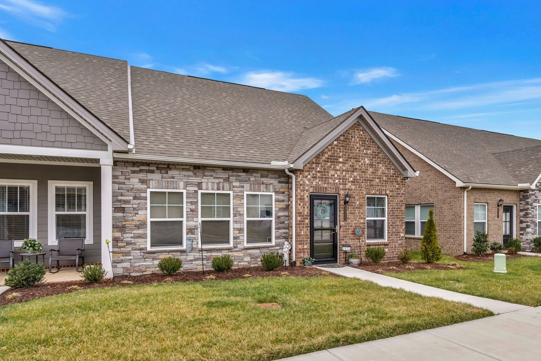 Motivated seller! End unit! Move-in ready! This charming home offers the perfect blend of comfort, style, and convenience, making it the ideal place to return to at the end of the day. The spacious front room makes a perfect office space, thanks to its abundance of natural light. The open-concept living room, dining room, and kitchen areas boast ample space for relaxation and entertainment. The modern kitchen features granite countertops, stainless steel appliances, and a large island. The primary suite on the home’s main floor offers a serene retreat, complete with a generous walk-in closet and a luxurious ensuite bathroom. The additional main-floor bedroom is ideal for guests. This home also boasts an additional second-floor primary bedroom with a walk-in closet and ensuite bathroom. Enjoy the outdoors in the gated, private courtyard – perfect for grilling out, entertaining, or unwinding after a long day. The two-car garage offers protection from the rain, along with additional storage space. This home also features water purification at the kitchen faucet, keyless entry, and a storm door at the front entrance, as well as 2-inch faux wood blinds on every window. Don’t miss the opportunity to own this stunning home. Schedule your tour today!