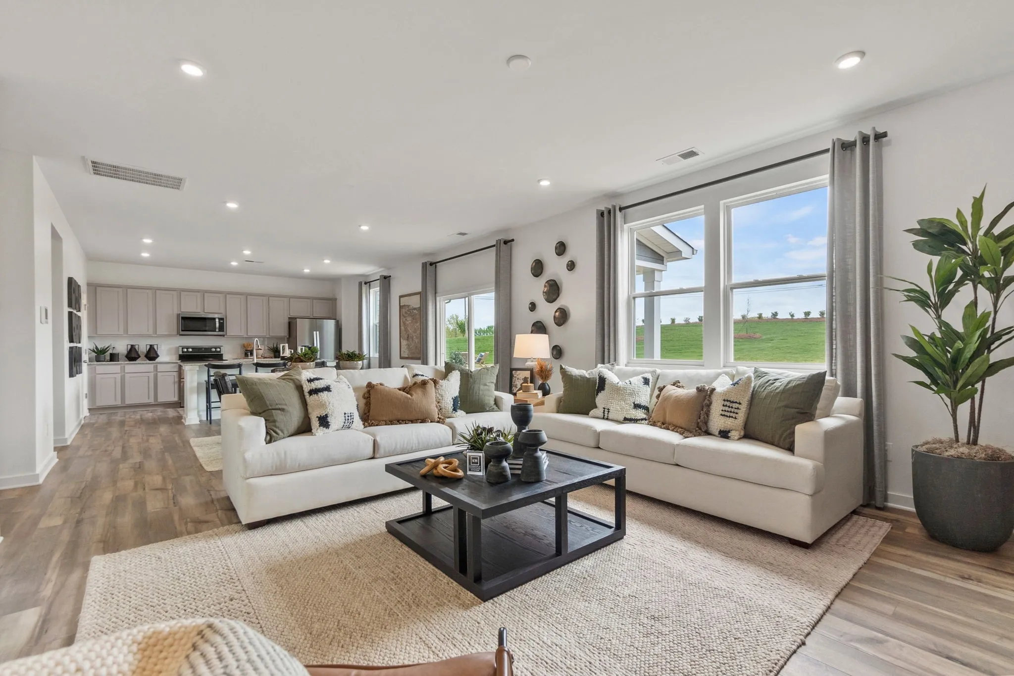 Step into The Harding at The Oaks in Mount Juliet, TN, a versatile two-story home designed for modern family living. The main floor welcomes you with a bright, open great room anchored by an electric fireplace, perfect for cozy nights or lively gatherings. The extended kitchen with white cabinets and a center island flows seamlessly to the dining area and covered patio, making entertaining effortless—whether it’s casual breakfasts or evening barbecues. A guest-ready bedroom with an en suite bath on the main level provides privacy for visitors or multi-generational living. Retreat upstairs to additional bedrooms, a full bath, and a spacious loft area for family activities, hobbies, or relaxation. The primary suite is a serene escape, featuring a built-in tub, walk-in shower, and generous closet. With a 3-car garage and thoughtful design throughout, this home balances comfort, style, and practicality.