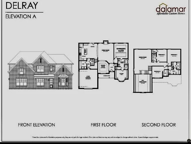 Dalamar Affordable Custom Homes presents the Delray plan, offering approximately 3,130 square feet of living space with 4 bedrooms and 3.5 bathrooms. This home is to be built on a cul-de-sac lot with natural surroundings and hilltop views.