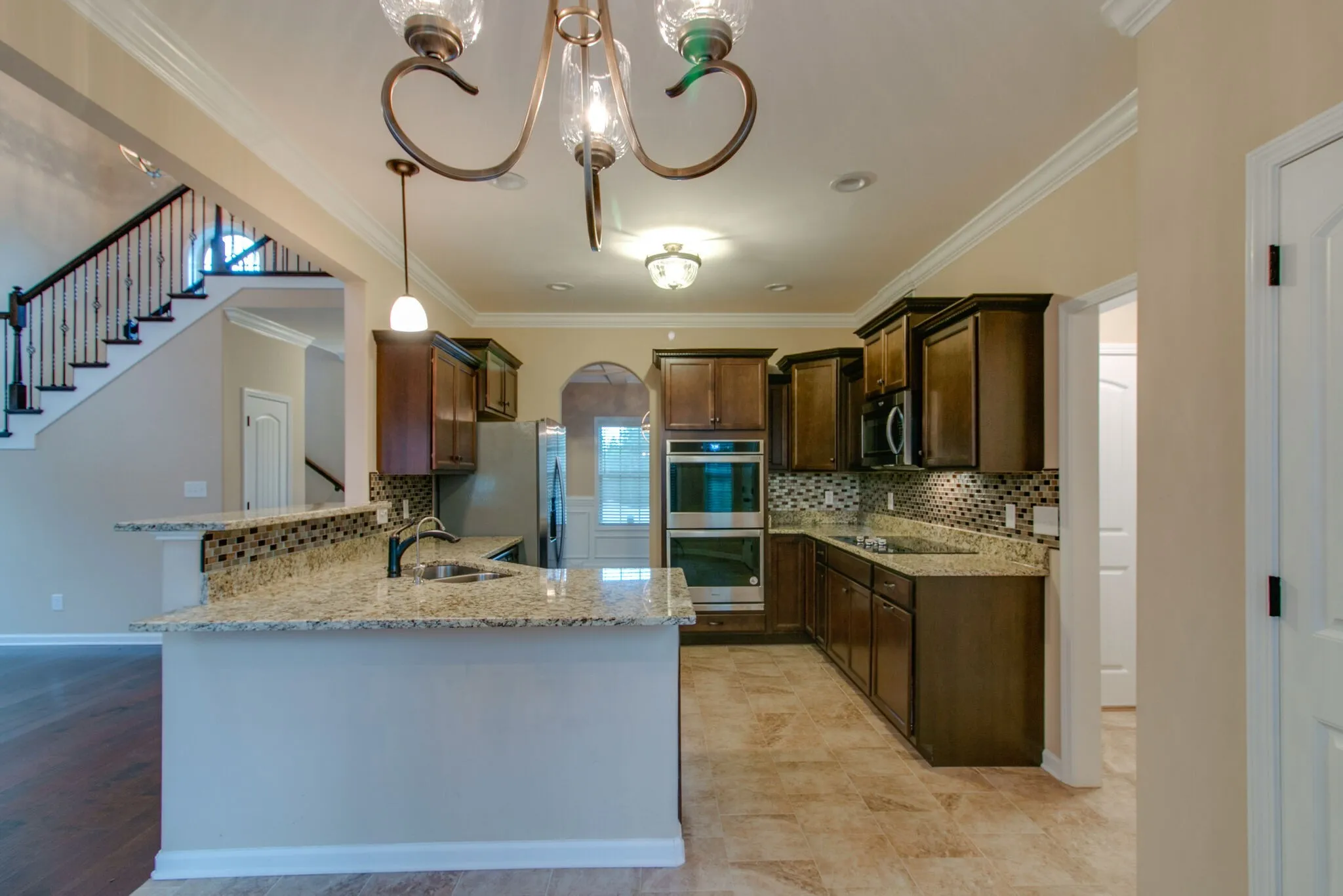 The Groves at Hearthstone – SMART HOME FEATURES, 4 Bedrooms, 3 Full Baths, Single-family 2 stories, Open Floor Plan, Laminate Floors in the foyer, living room, and dining room, Tile floors in the kitchen, laundry, and bathrooms, granite counters in the kitchen. The master suite is spacious and beautifully decorated, featuring a double-tray ceiling and crown molding. Adjoining the master is a full master bath, with a tile shower and whirlpool tub. Also included in the master suite are 3 large walk-in closets. “ENERGY SAVING” EcoWater Home Filtration and Soft water system, Ventless Fireplace, covered porch, covered deck with ceiling fans, Security System, Door Bell Camera, and Blooming Blinds, Custom Window Treatment