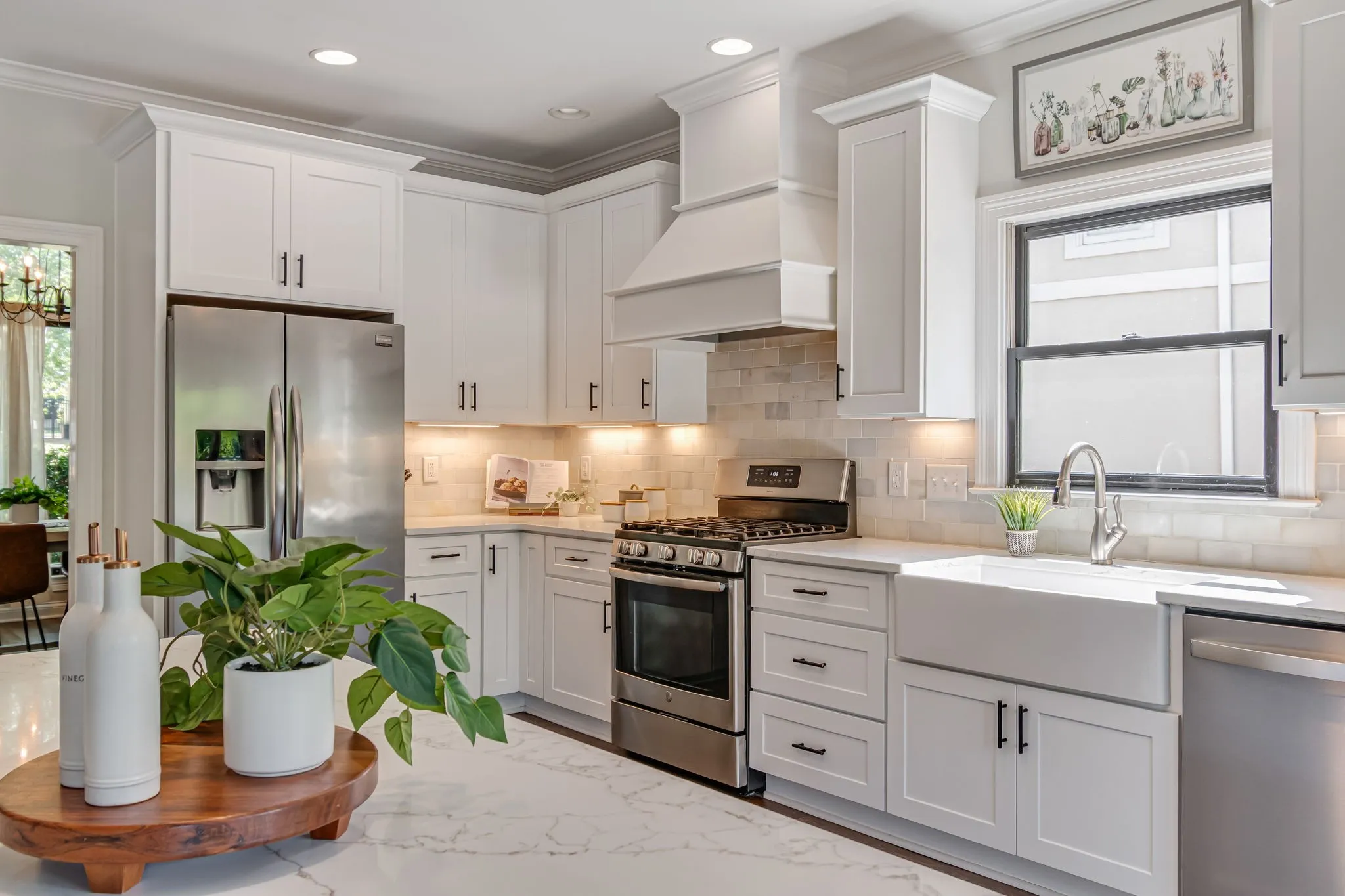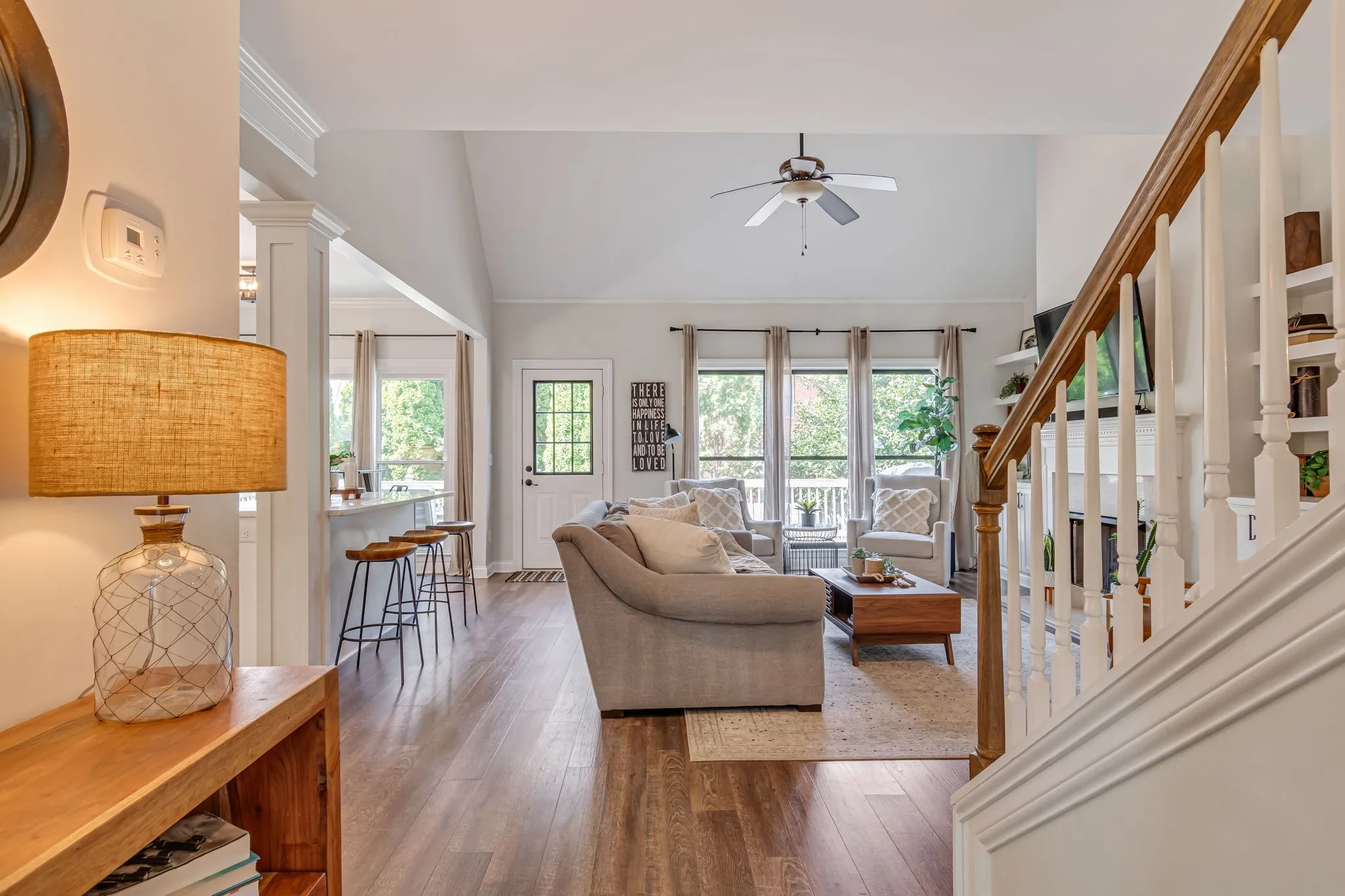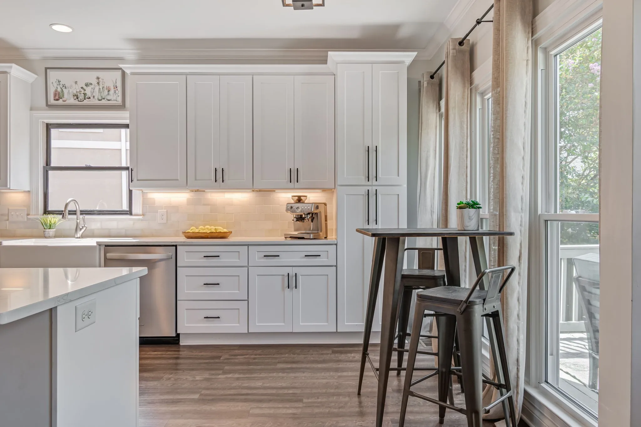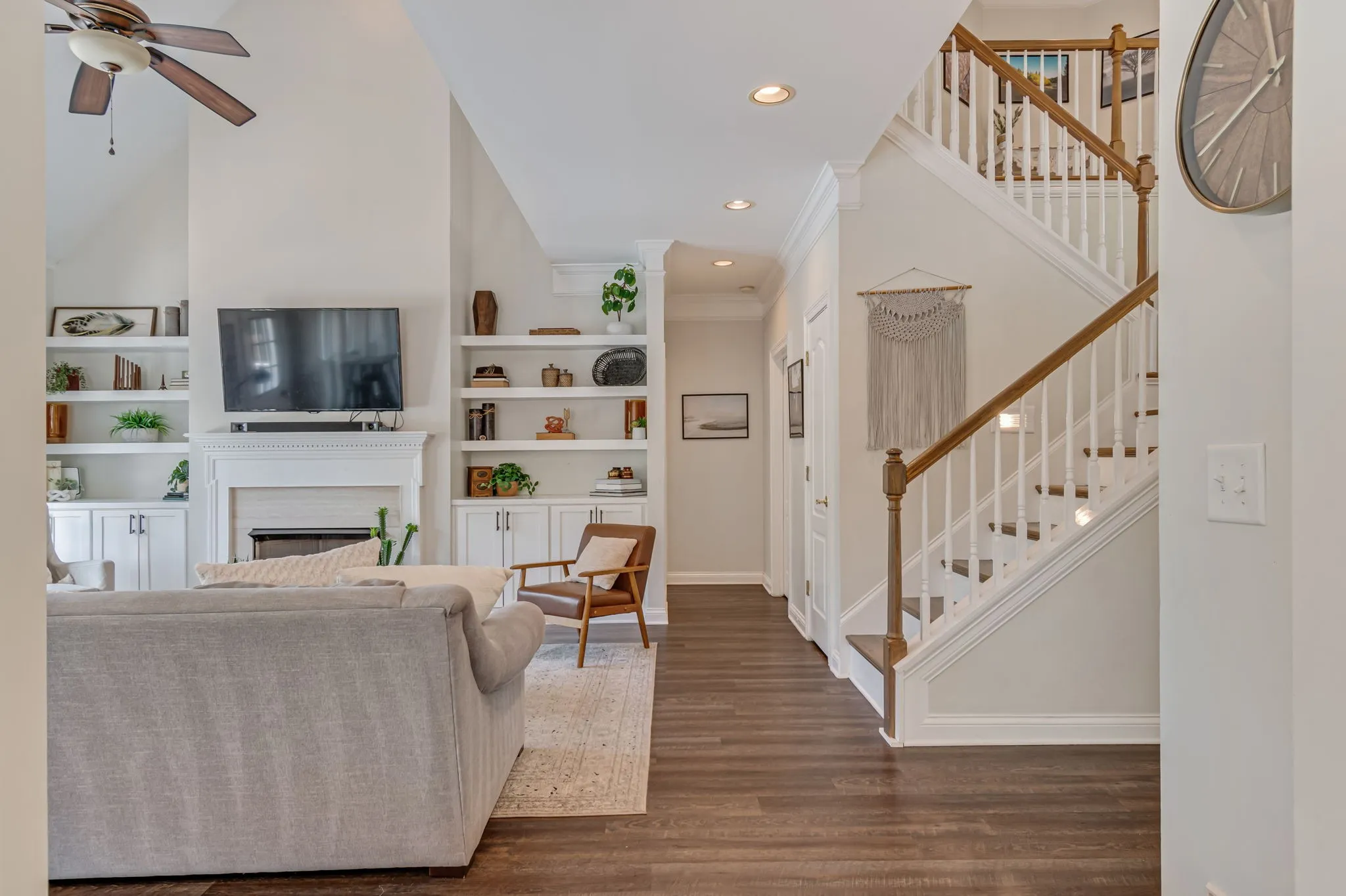 Beautiful light and bright 4 bed 3.5 bath home in desirable Forrest Crossing! 2 story foyer flooded with natural light welcomes you into this spacious, modern home. The gorgeous kitchen features a full renovation with all white wood cabinetry, black hardware, beautiful veined quartz countertops, soft white and taupe tile backsplash, stainless steel appliances, and a custom range hood. Eat-in area and counter height bar boast plenty of space for gatherings. Separate formal dining room offers upgraded lighting, crown molding, and chair railing. This is the perfect extra space to entertain or could be an additional formal sitting/living room. Kitchen opens to a soaring 2 story den with oversized windows bathing the space in light. An elegant fireplace is flanked by shelving and built-ins for ample storage. Primary bedroom features a vaulted tray ceiling, crown molding and oversized windows. Primary bath has double vanities, separate tub and shower and a walk-in closet. Downstairs powder bath features modern wallpaper and upgraded fixtures and lighting. Large bedroom up features wal- in closet and en suite bath. 2 remaining bedrooms feature large shared hall bath. Bonus room with a vaulted ceiling and walk in closet is perfect as a playroom, theatre room, or school room! Mature trees offer shade in this private back yard featuring a large deck. Neighborhood offers a pool and clubhouse. The location provides easy access to downtown Franklin and is just 5 minutes to I 65. Amazing schools and incredible community. A perfect 10!