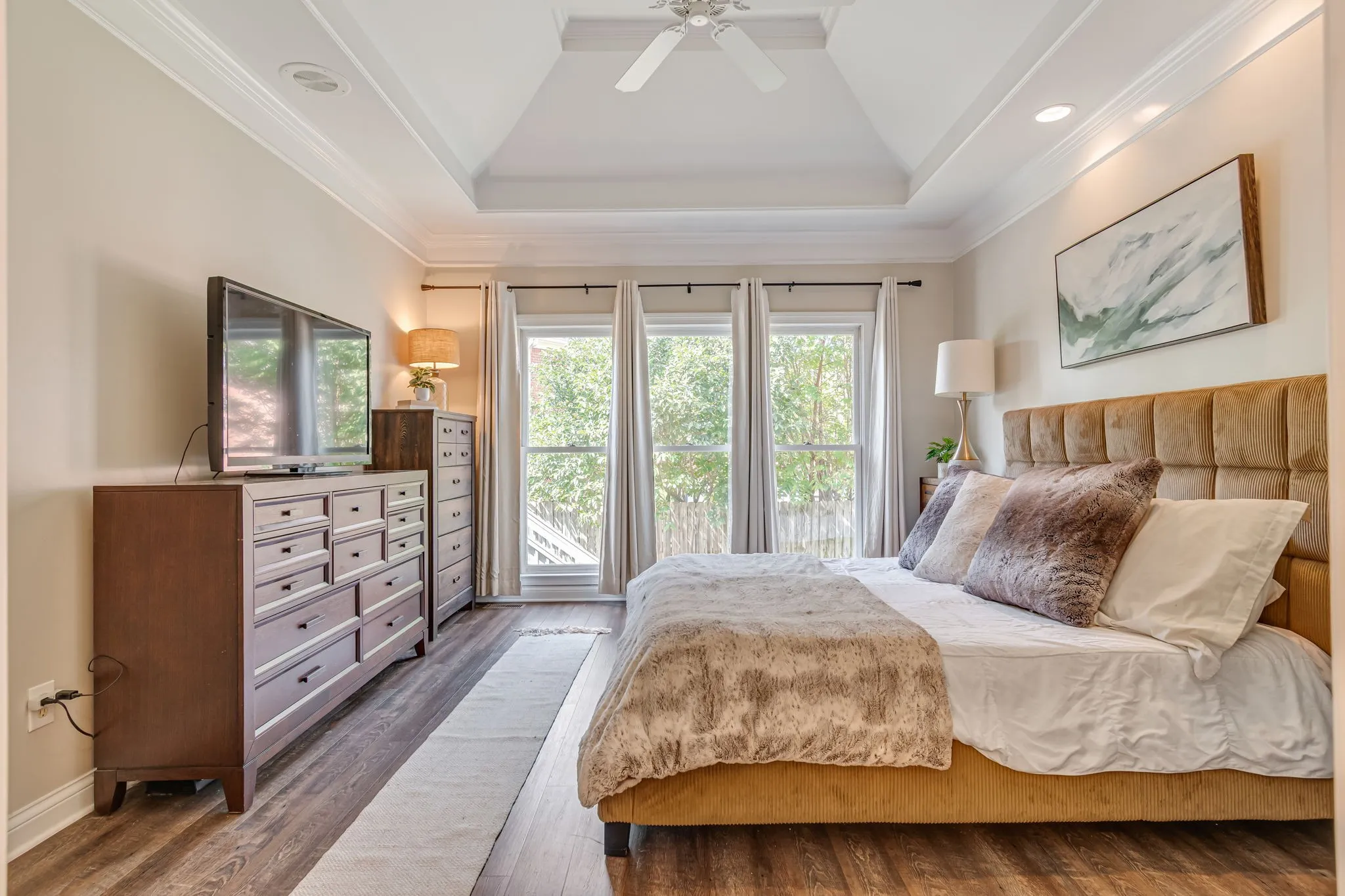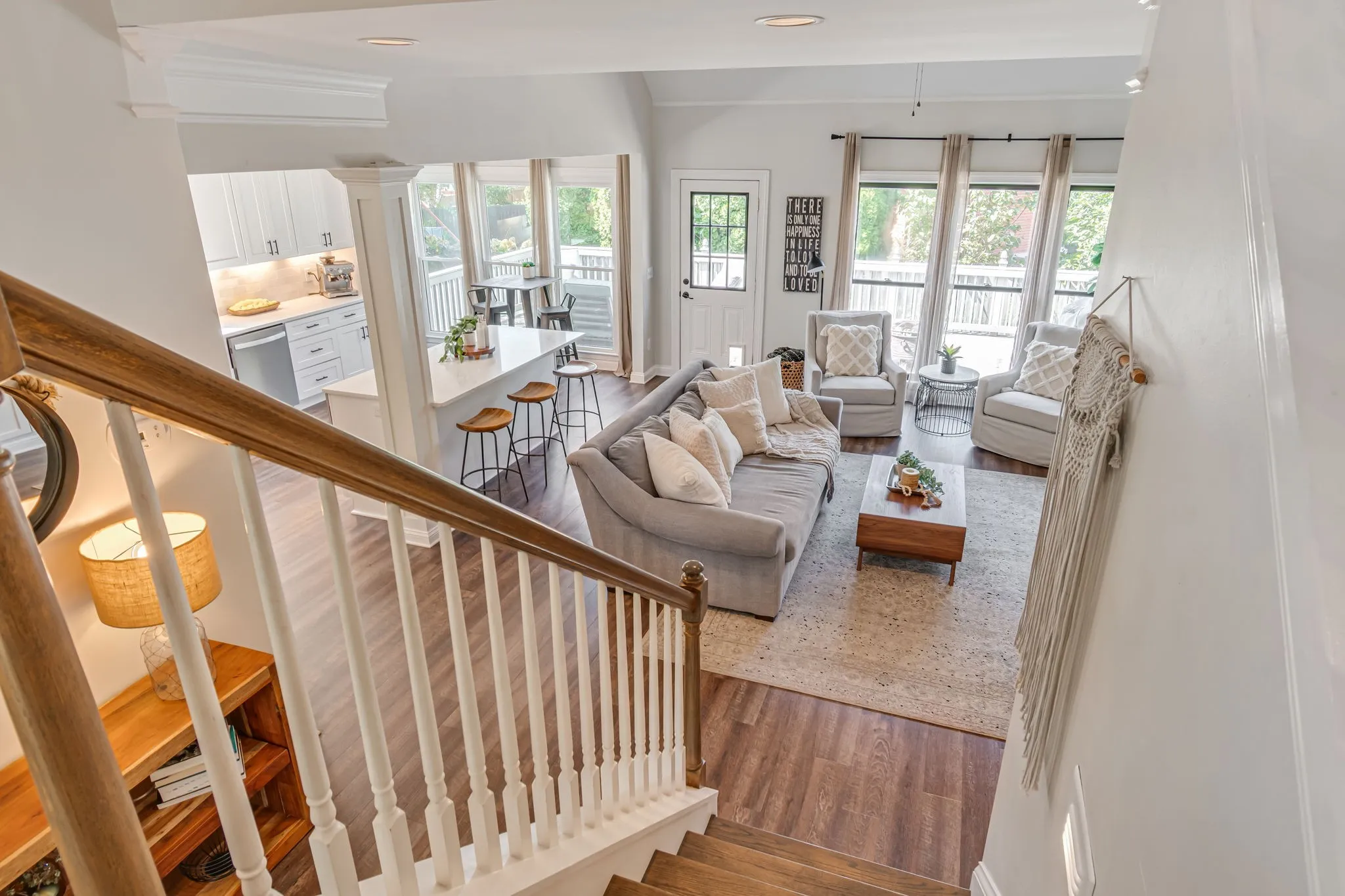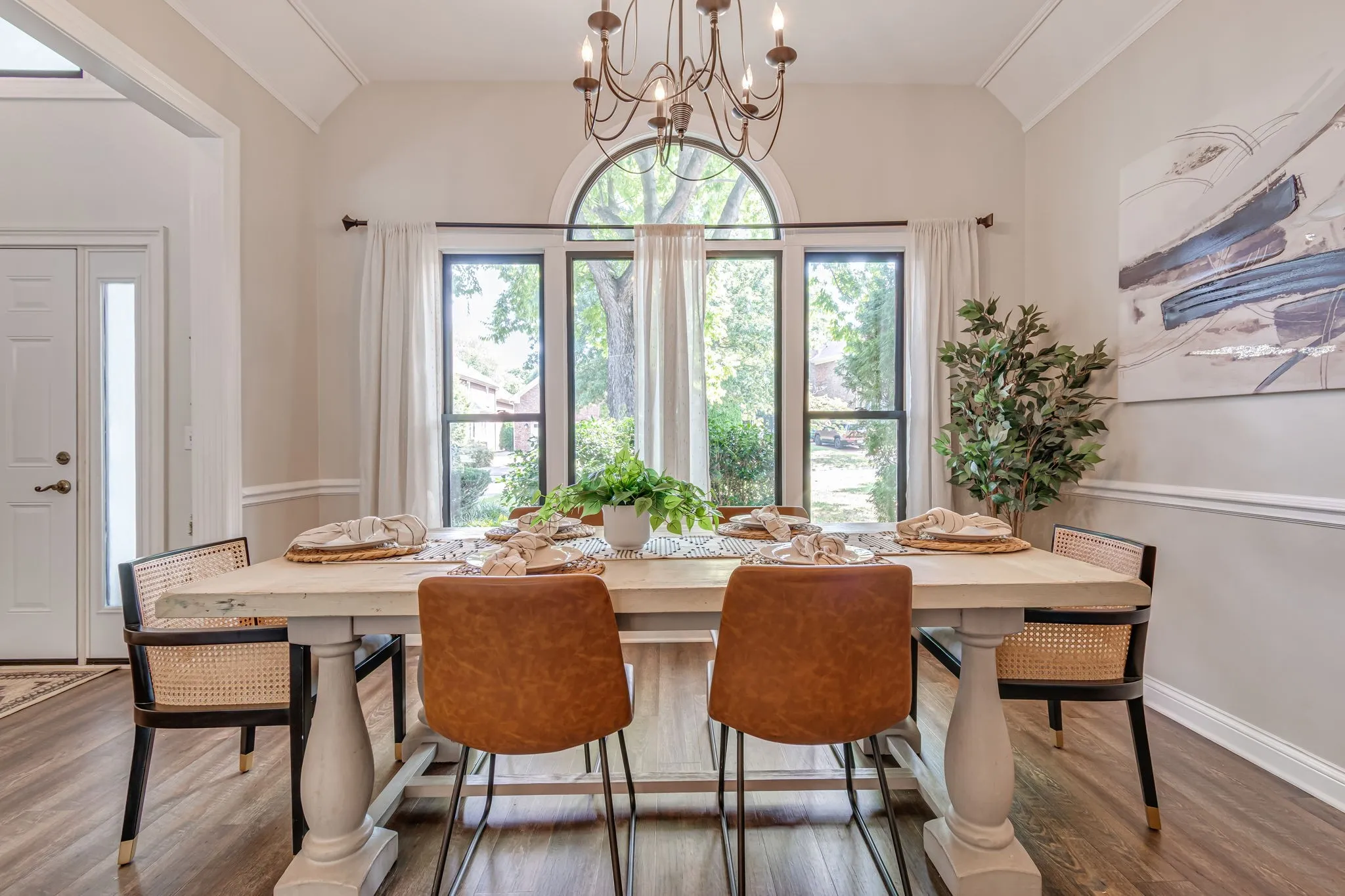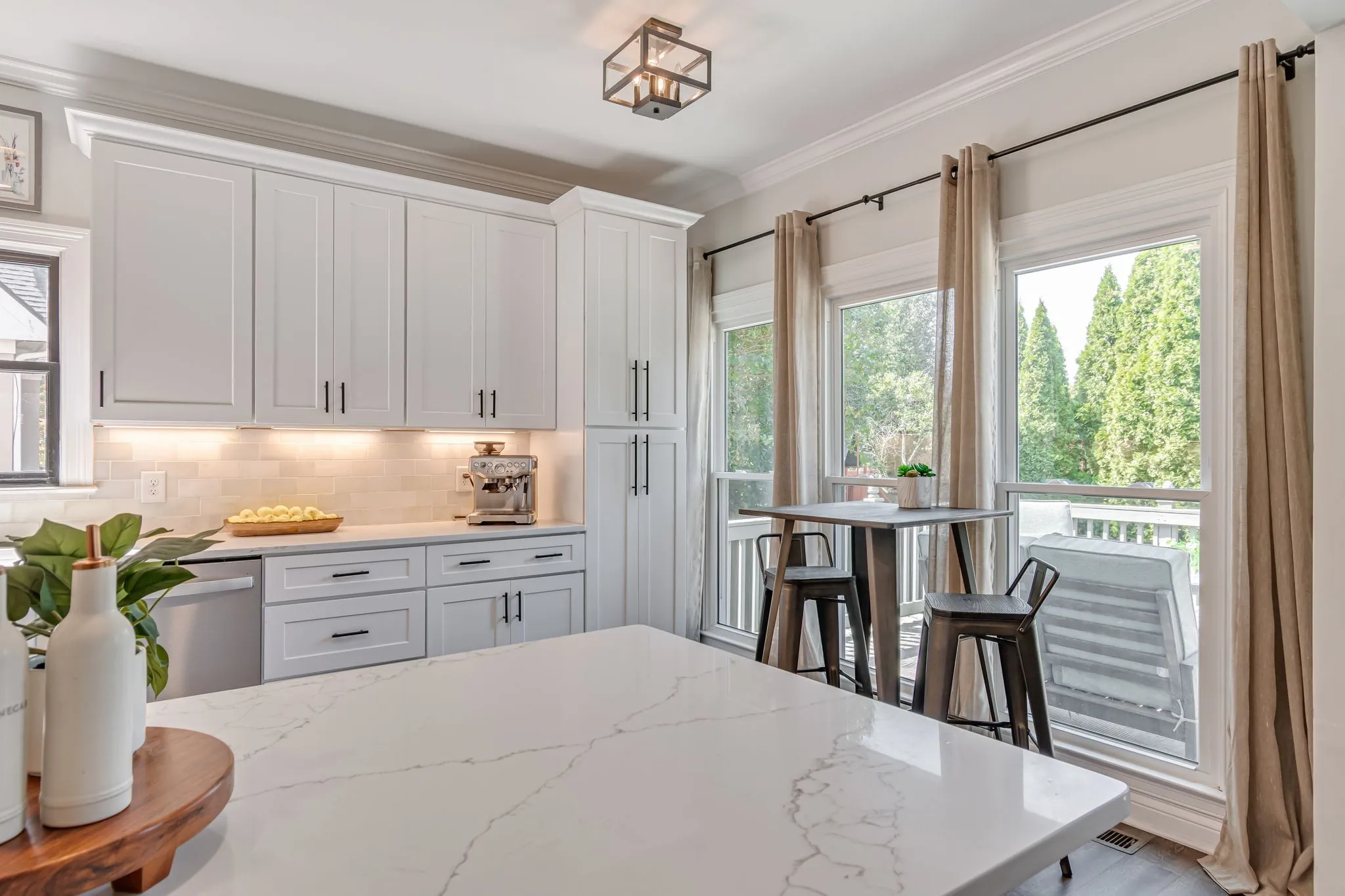 Beautiful light and bright 4 bed 3.5 bath home in desirable Forrest Crossing! 2 story foyer flooded with natural light welcomes you into this spacious, modern home. The gorgeous kitchen features a full renovation with all white wood cabinetry, black hardware, beautiful veined quartz countertops, soft white and taupe tile backsplash, stainless steel appliances, and a custom range hood. Eat-in area and counter height bar boast plenty of space for gatherings. Separate formal dining room offers upgraded lighting, crown molding, and chair railing. This is the perfect extra space to entertain or could be an additional formal sitting/living room. Kitchen opens to a soaring 2 story den with oversized windows bathing the space in light. An elegant fireplace is flanked by shelving and built-ins for ample storage. Primary bedroom features a vaulted tray ceiling, crown molding and oversized windows. Primary bath has double vanities, separate tub and shower and a walk-in closet. Downstairs powder bath features modern wallpaper and upgraded fixtures and lighting. Large bedroom up features wal- in closet and en suite bath. 2 remaining bedrooms feature large shared hall bath. Bonus room with a vaulted ceiling and walk in closet is perfect as a playroom, theatre room, or school room! Mature trees offer shade in this private back yard featuring a large deck. Neighborhood offers a pool and clubhouse. The location provides easy access to downtown Franklin and is just 5 minutes to I 65. Amazing schools and incredible community. A perfect 10!