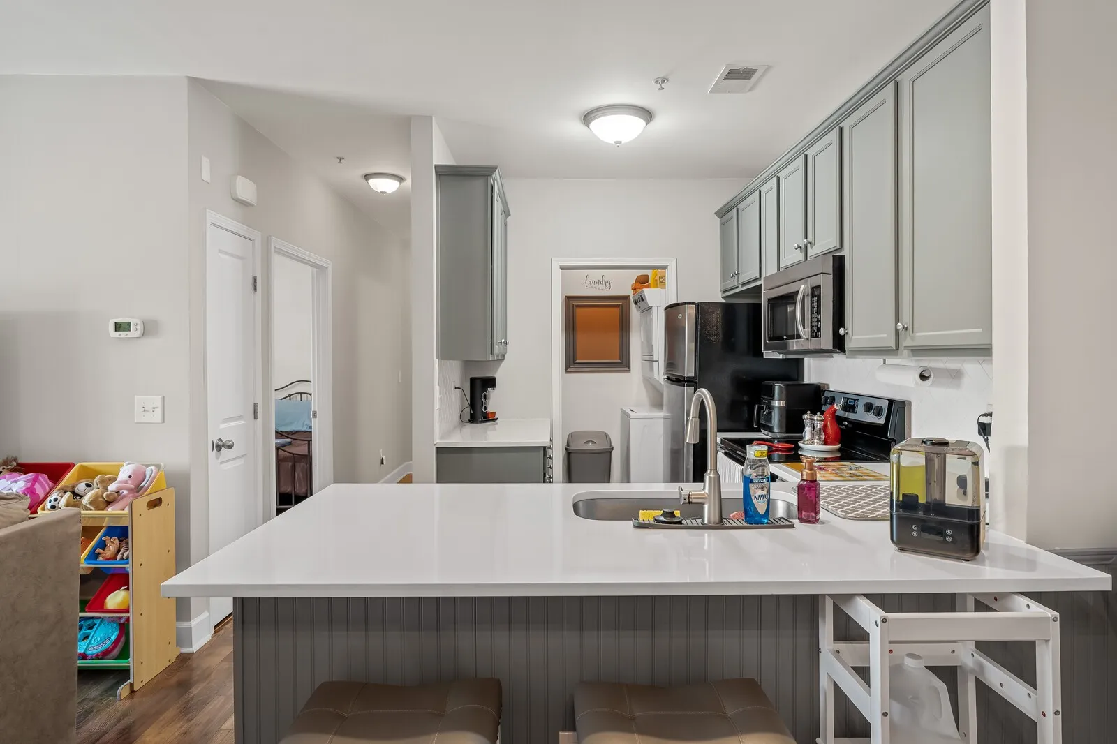 Motivated Seller! Bring All Offers! Welcome to your new home – a stunning second-level condominium that perfectly balances modern elegance and comfort, nestled in a sought-after community just moments away from the vibrant communities of Nolensville and Brentwood. This delightful 2-bedroom, 1-bathroom residence is designed for both relaxation and entertaining, making it an ideal choice for first-time buyers, busy professionals, or anyone looking to downsize without sacrificing quality. Step inside to discover a bright and airy open floorplan that seamlessly connects the living, dining, and kitchen areas. This inviting layout enhances the sense of space and is perfect for hosting gatherings or enjoying quiet evenings at home. The heart of this home is undoubtedly the beautifully appointed kitchen, featuring stunning quartz countertops that offer both style and durability. Paired with sleek stainless steel appliances, this culinary haven is ready for you to whip up your favorite meals and entertain guests with ease. Retreat to the generous primary bedroom, complete with ample closet space and natural light. The second bedroom is equally inviting, perfect for guests, a home office, or a cozy den. Both rooms ensure comfort and tranquil nights. This vibrant community features beautifully landscaped grounds, tree-lined sidewalks with pet stations, a pavilion, grills and access to the Mill Creek Greenway. This is MOVE-IN ready. Excellent location with numerous amenities close by. With Nolensville and Brentwood just minutes away, you’ll have everything you need at your fingertips. Don’t miss your chance to experience all that this vibrant community has to offer. Schedule your private showing today and envision your new life in this beautiful condominium! Preferred lender, Marshall Parsons with CMG Home Loans, will credit buyer up to 1% toward buyer closing cost.