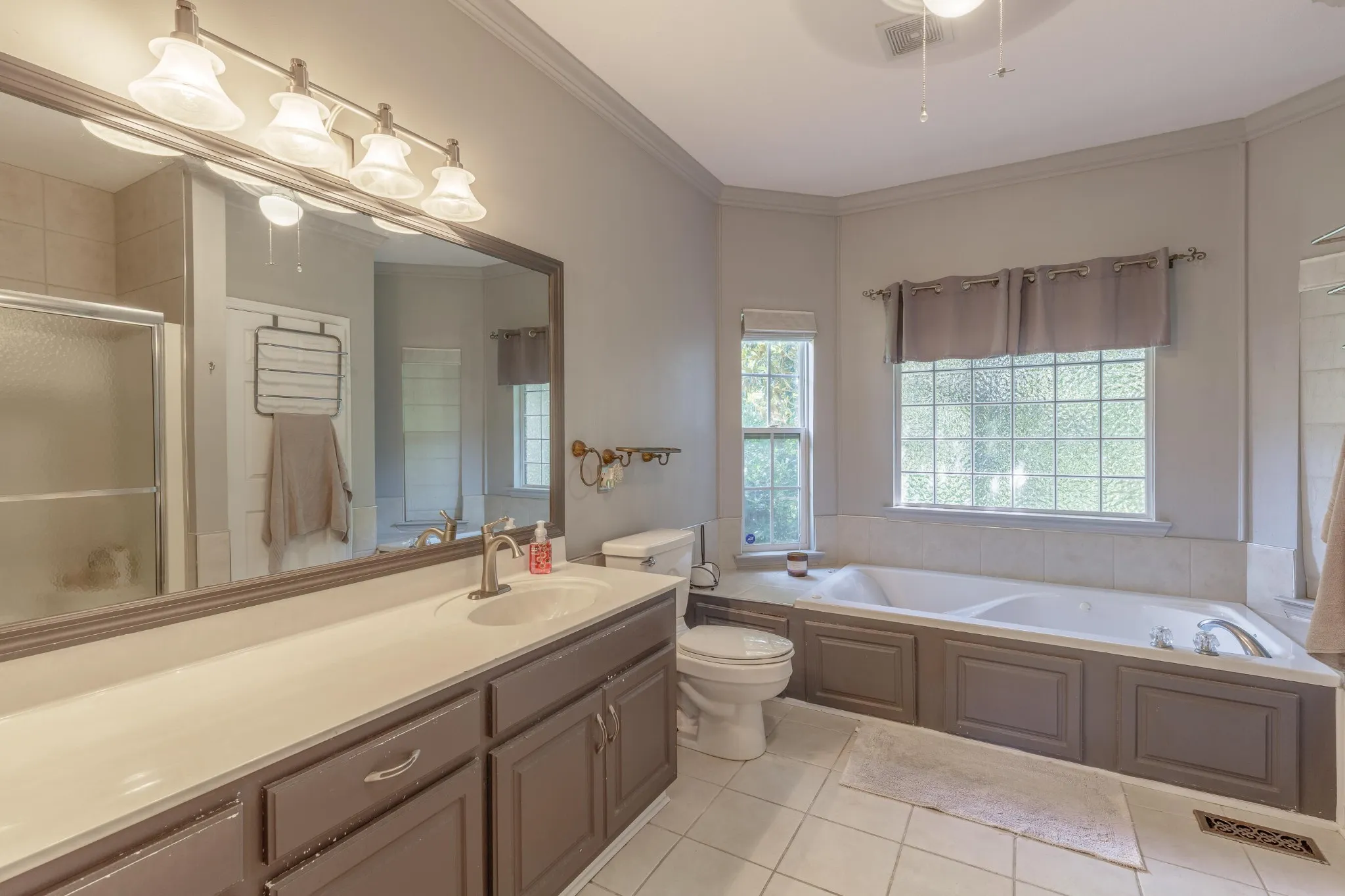 The main-level primary suite features a walk-in closet and a luxurious en-suite bath with ceramic tile, a jetted tub, and a private sunroom with separate heating and air—perfect for relaxing year-round. Upstairs, you’ll find two oversized bedrooms with walk-in closets and a full bathroom.
