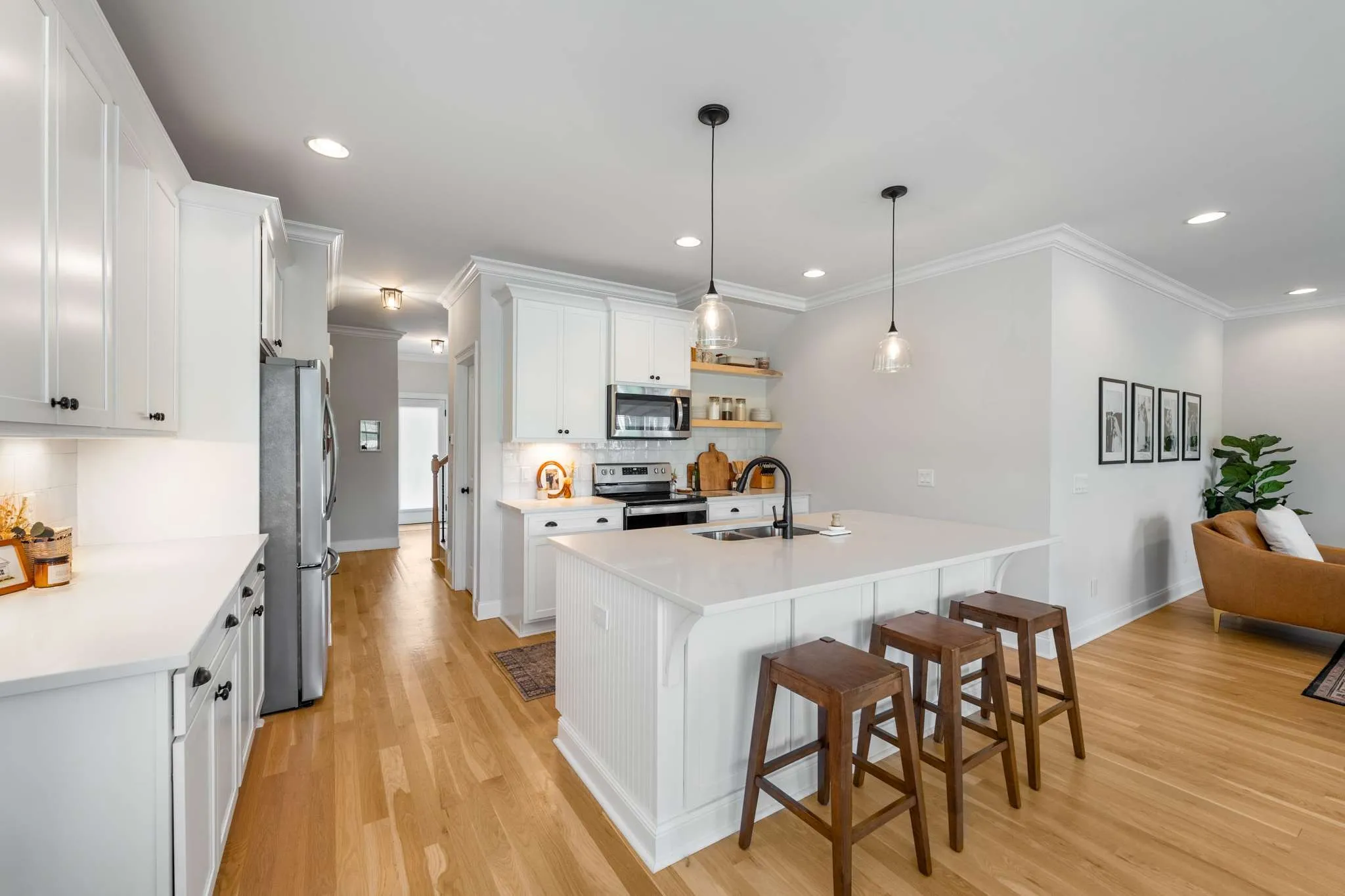 1% lender credit available with preferred lender!! Welcome to this like-new 3-year-old home in one of Nolensville’s most desirable communities – a rare opportunity that combines modern upgrades, timeless design, and a prime location. From the moment you step onto the inviting covered porch and through the foyer, you’re greeted by natural real hardwood floors and warm designer tones that set the stage for elegant yet comfortable living. The open-concept layout flows effortlessly into a showstopping kitchen with quartz countertops, sleek open shelving, a large center island with sink, stainless steel appliances, upgraded lighting, and a custom backsplash – a true entertainer’s dream. The main level also features a powder room and a spacious primary suite tucked at the rear of the home with double vanities, oversized shower, and walk-in closet – plus no stairs to navigate. Upstairs you’ll find two additional bedrooms, a shared bath, and a flexible loft perfect for an office or reading nook, along with a bonus extended space ideal for a private retreat, creative workspace, or cozy lounge. Outdoor living shines with a covered patio, fully fenced backyard, and custom garden beds ready for your own home garden. The rear-entry two-car garage adds convenience and curb appeal. Better than new construction and move-in ready, this home offers the best of Nolensville living in a vibrant and growing neighborhood. Schedule your private showing and make this exceptional property yours before it’s gone.