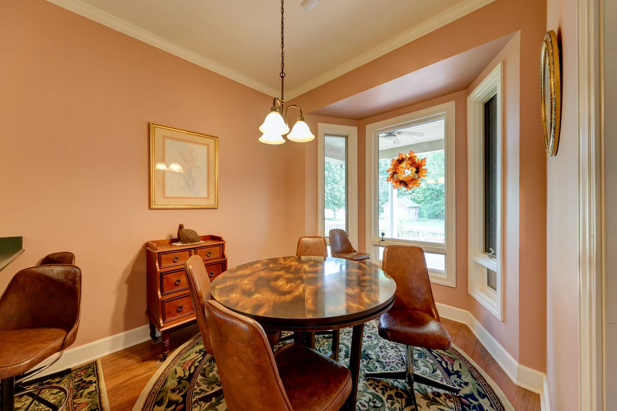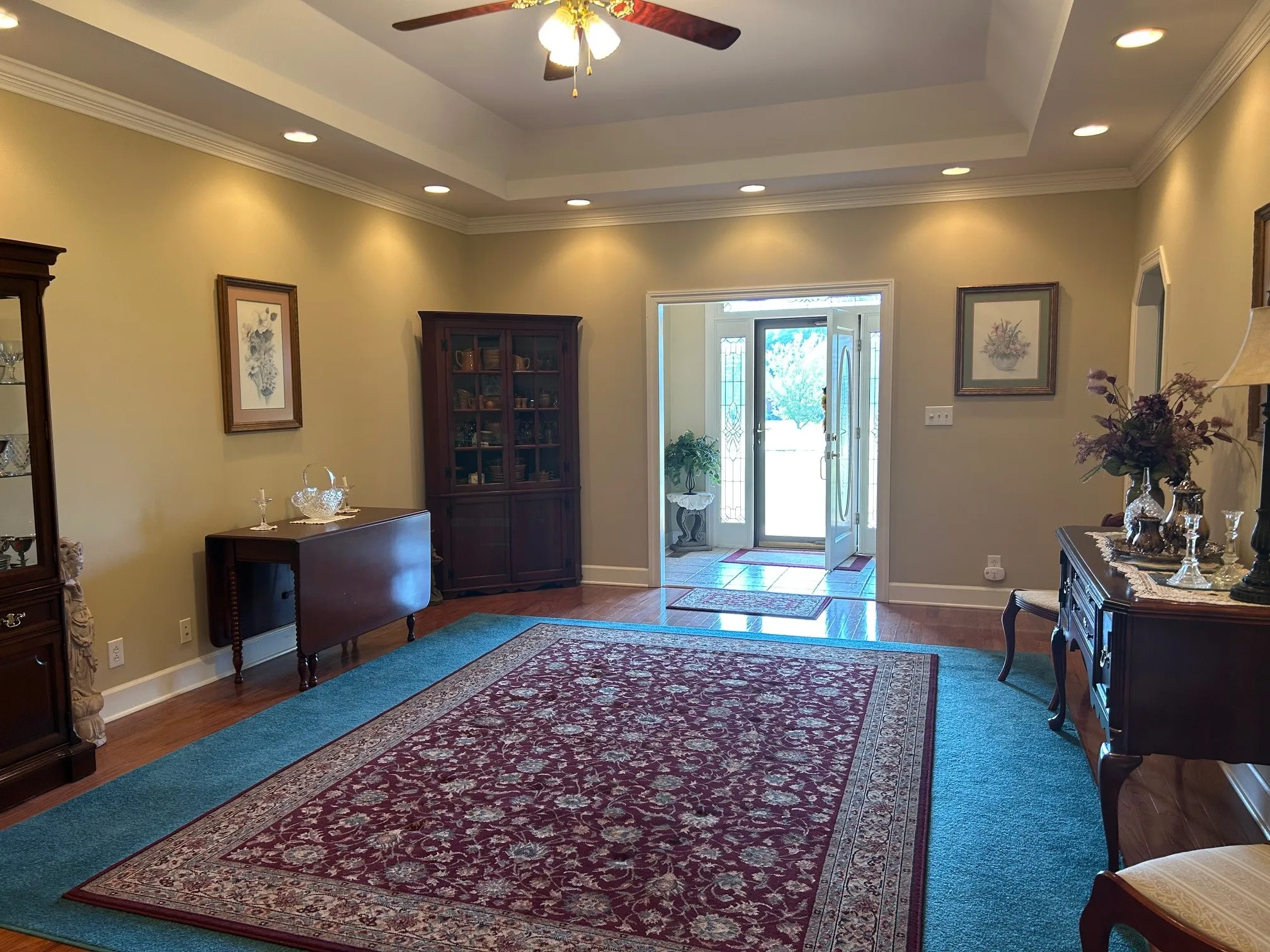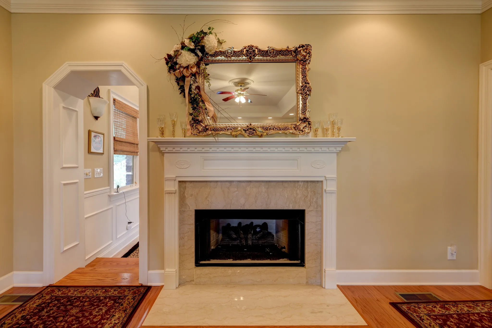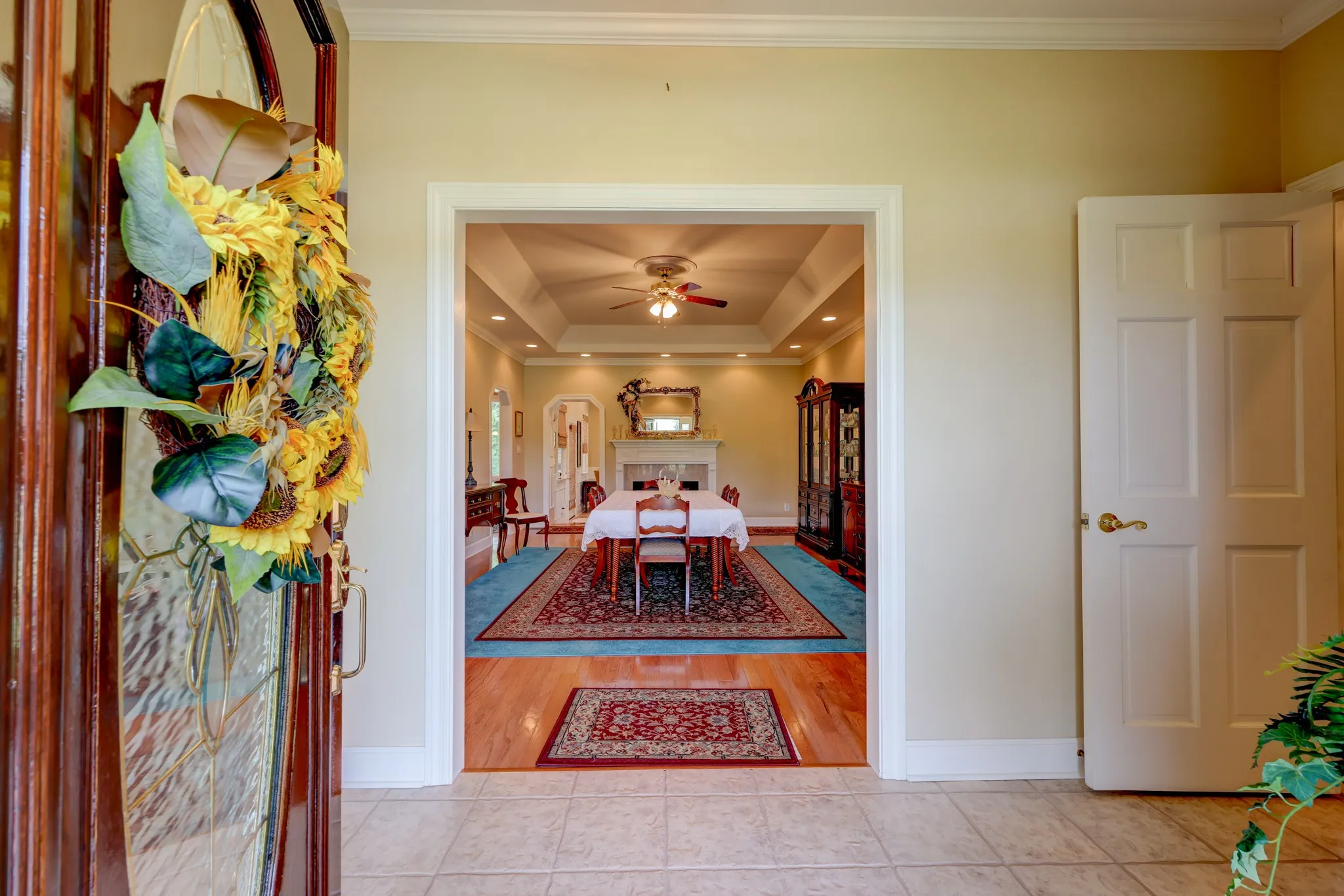 Step inside to an elegant entry foyer leading into a spacious.Great Room featuring gleaming hardwood floors,a tray ceiling,& a cozy fireplace.The formal dining room also showcases beautiful hardwood flooring, ideal for hosting guests.