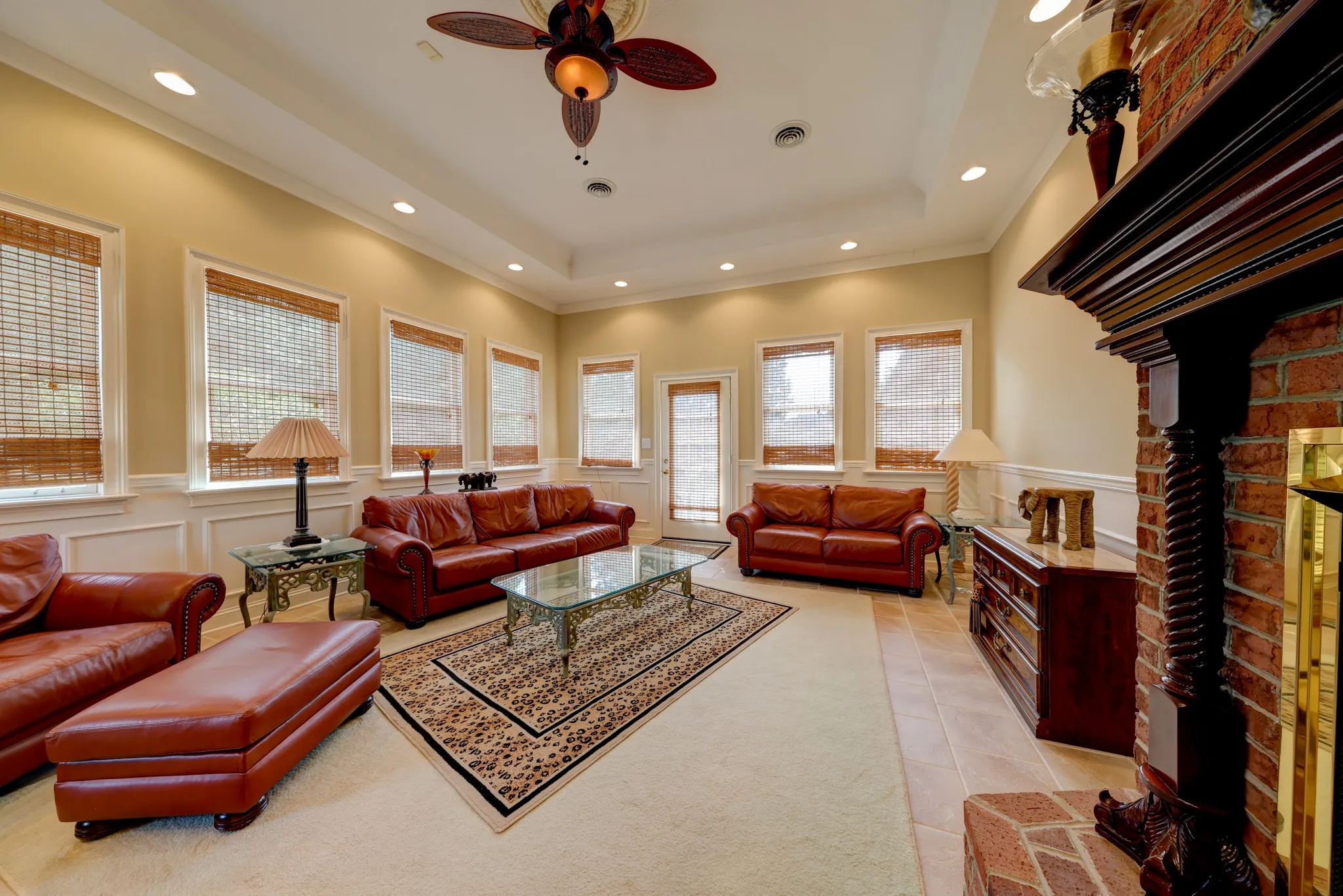 The eat-in kitchen comes fully equipped with all appliances — including a gas range — & offers plenty of space for casual dining.Adjacent to the kitchen is a large Florida Room/Den with tiled flooring & second fireplace, offering the perfect spot to unwind with a view of your property.