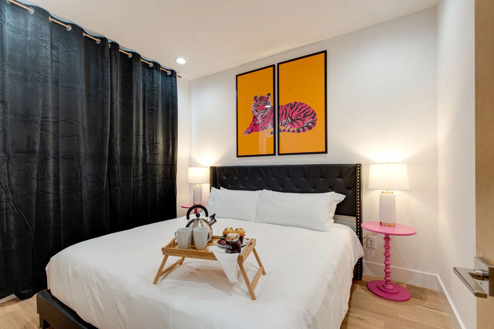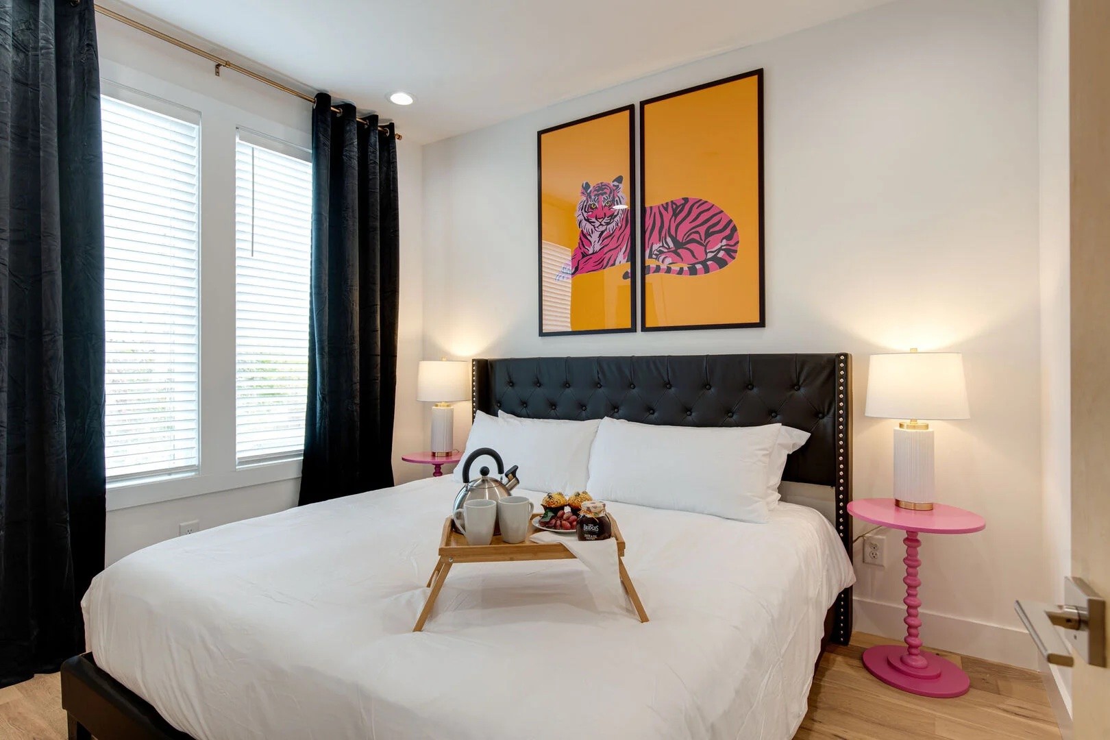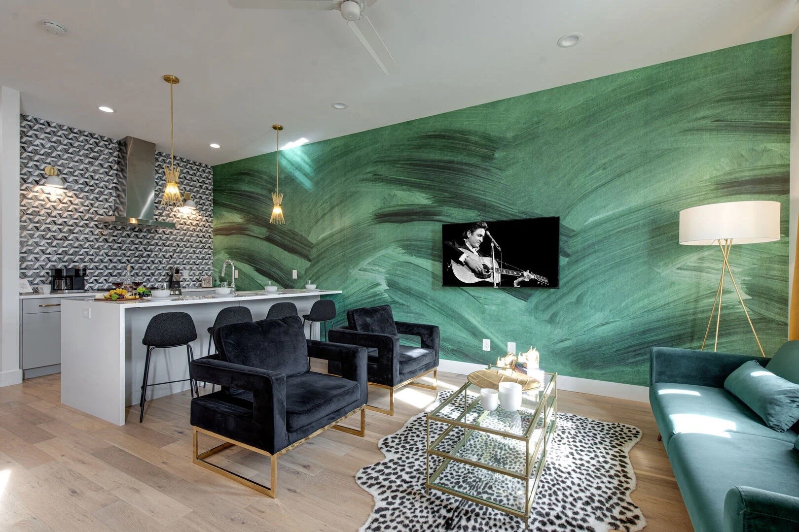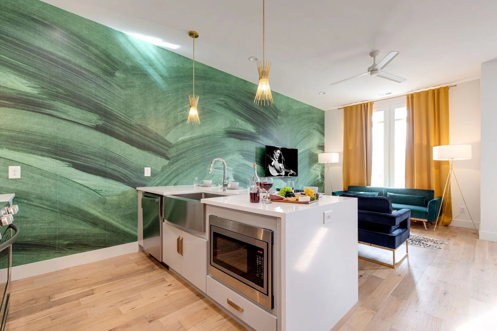 Make Nashville your runway at The Green Room, a colorful, upscale townhome nestled in the heart of Nashville. This home is adorned with designer decor, providing the perfect backdrop for every picturesque moment, great for bachelorette and bachelor parties. You will notice nods to timeless classics, including Chanel, Hermès, and Goyard. Upon entering this 4-bedroom haven, you will immediately feel the dynamic soul of Music City, enhanced by the home’s bold and flamboyant palette. Accepting most lease lengths, subject to availability! The rental rate listed is valid for leases with nights stayed in JAN TO MARCH RATES Please inquire for seasonal rates. The unit is fully furnished and cannot be unfurnished unless otherwise mentioned. The monthly rental rate listed does not include utilities, security deposit, or management fees unless otherwise explicitly stated. GoodNight Stay requires a signed/executed lease agreement and certified funds (wire).