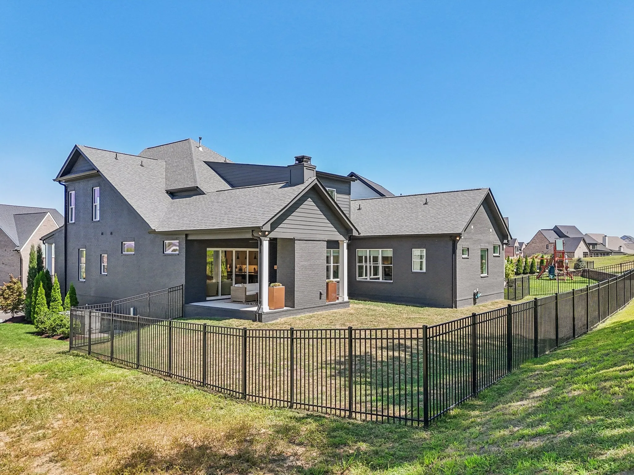 Outside, enjoy a fenced yard with a large private cocered patio featuring a custom wood-burning fireplace and potential space for a future pool. Gas lantern curb appeal with a three-car garage. Walk to Thompson’s Station Elementary and enjoy parks, dining, and historic downtown Franklin just minutes away—all in award-winning Williamson County with low taxes and exceptional schools.\n