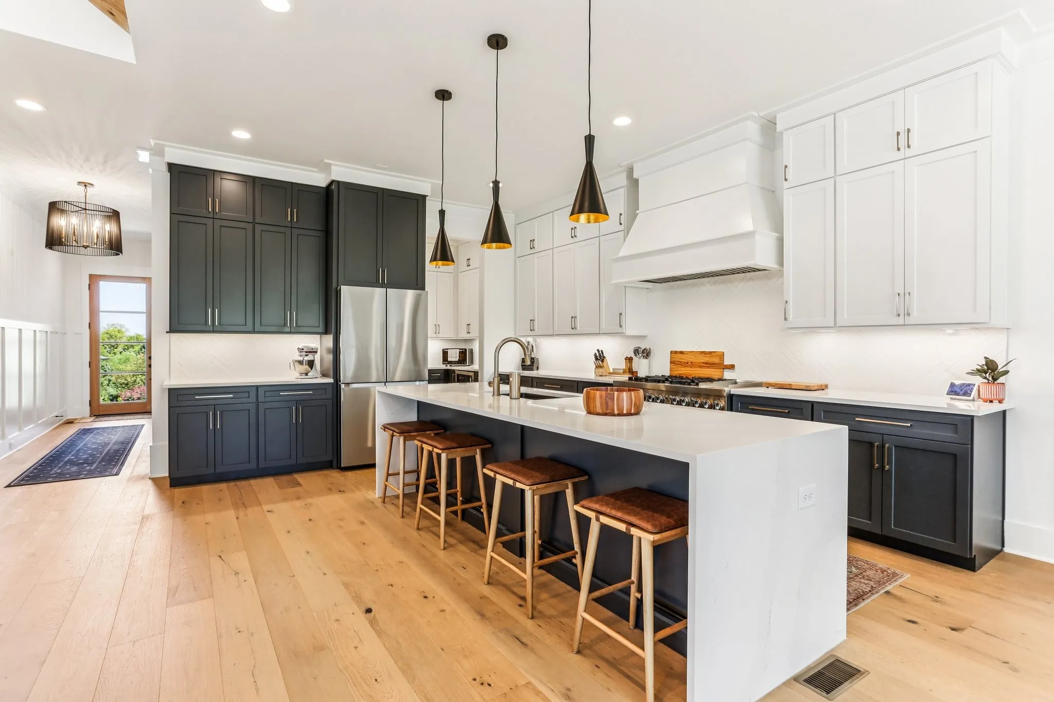 Set on one of Avenue Downs’ larger lots, this is the only available home not in a construction zone. The wide-open layout is bright and livable, featuring hardwood floors throughout, vaulted ceilings with wood beams, and thoughtful finishes. The oversized laundry room with sink, main-level office that doubles as a fifth bedroom, and a chef’s kitchen with over $36,000 in upgrades (10-ft waterfall island, 48-inch JennAir range, custom pantry) blend luxury with daily ease.\n