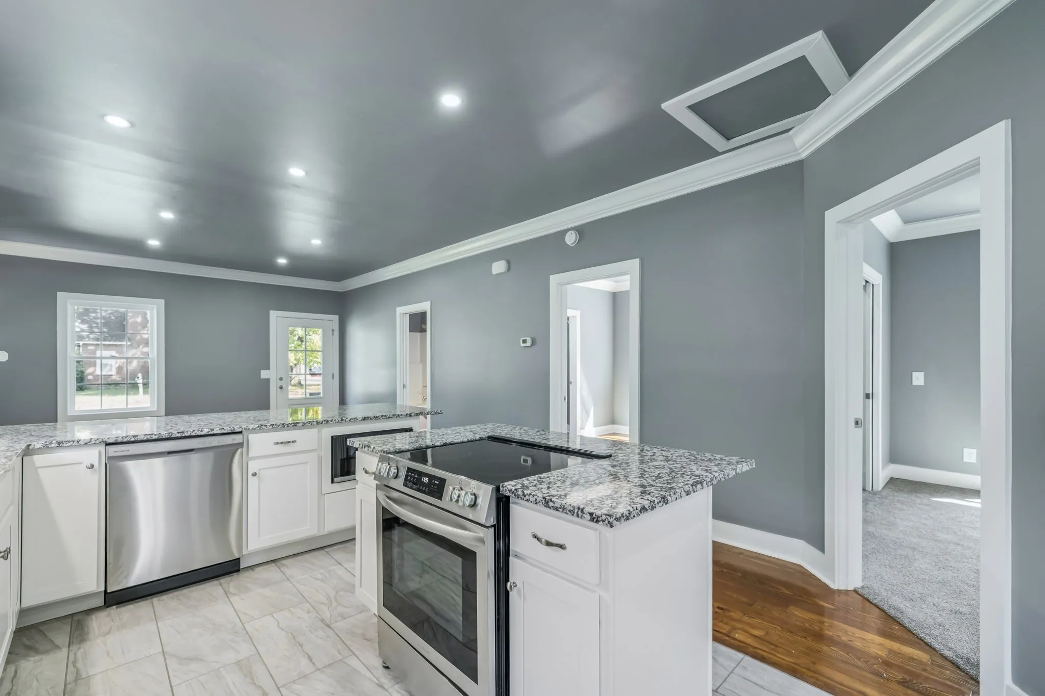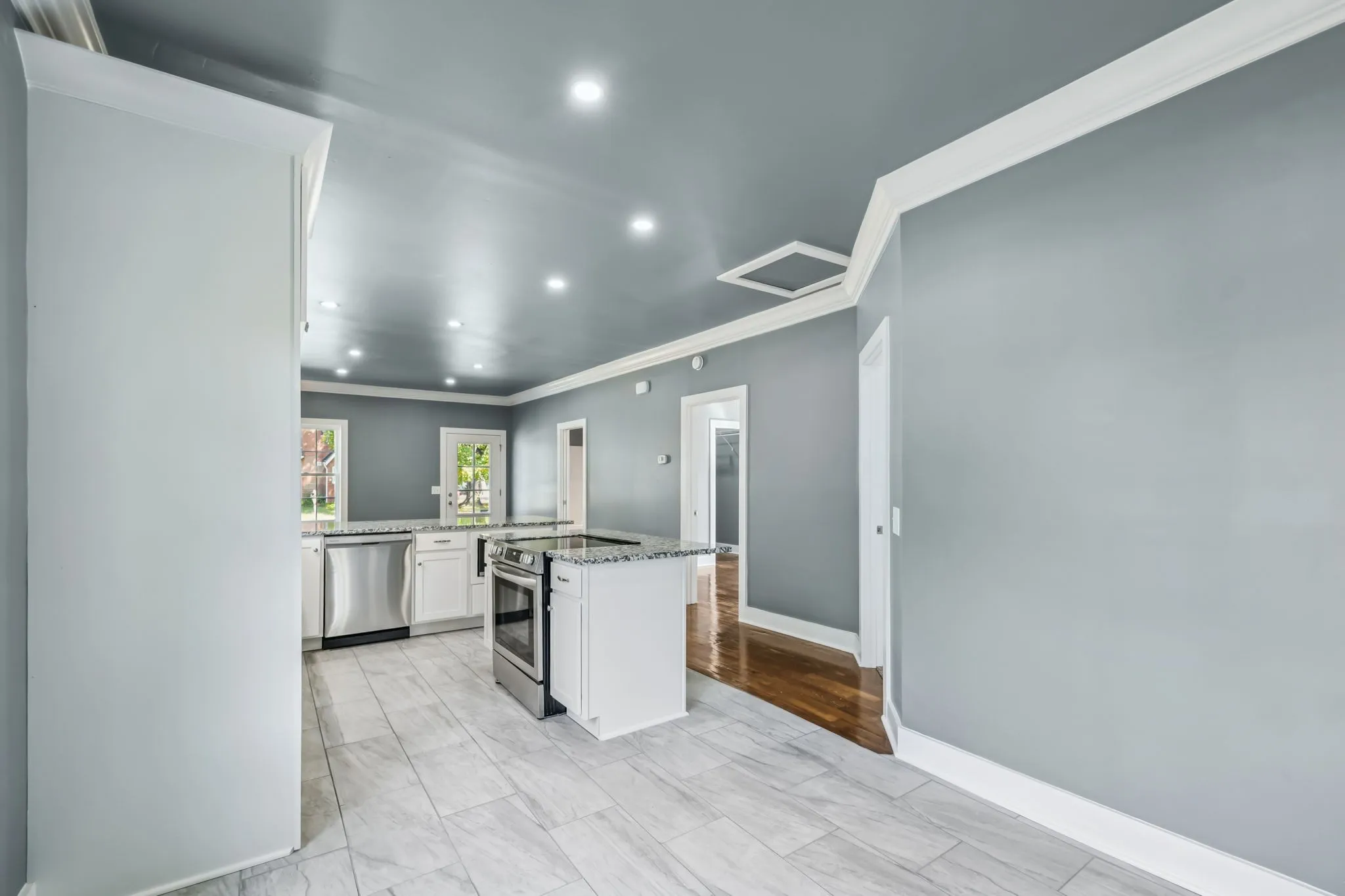 Discover a rare opportunity in the heart of Murfreesboro with this fully renovated 2-bedroom, 2-bathroom home that blends modern design with timeless charm – offering the perfect balance of convenience, comfort, and style. From the welcoming covered porch to the open-concept floorplan with rich hardwood flooring, 9′ Ceilings, Wide crown and baseboards to keep the 1930s charm alive, every detail invites you in to stay. The living area is anchored by a cozy fireplace, while the brand-new kitchen shines with granite counters, stainless steel appliances, recessed lighting, and thoughtful finishes designed to impress. The primary suite is a true retreat with a walk-in closet, double vanities, and a tub-shower combination. Step outside to enjoy the deck – perfect for entertaining guests or relaxing in the privacy of a fully fenced yard. A detached 2-car garage with additional driveway parking provides plenty of storage and convenience. Located just minutes from top Murfreesboro shopping, grocery, and dining destinations, this move-in-ready home places you exactly where you want to be – central, stylish, and close to it all. Storm shelter access from inside the house.
