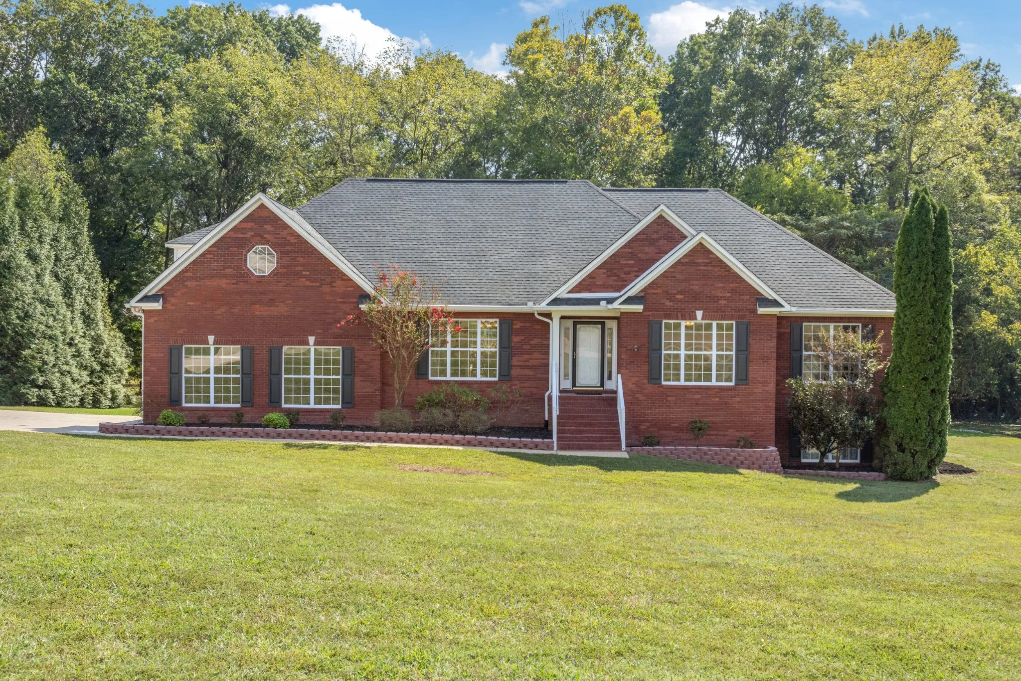 Welcome home to the kind of place that feels calm the moment you pull into the driveway. Set on a peaceful 1.22-acre lot with no HOA and backed by a quiet farm, this four-side brick ranch offers space, privacy, and thoughtful updates that make everyday living easy & enjoyable. Inside, everything feels fresh & move-in ready. New carpet, beautifully refinished hardwoods, & fresh paint throughout (even the ceilings and garage) create a clean, welcoming vibe. The kitchen is the heart of the home with NEW quartz countertops, BRAND NEW stainless steel appliances, a center island, & soaring ceilings that flow into the bright, open great room-perfect for weeknight dinners or hosting friends. The split-bedroom layout gives everyone their own space, with three bedrooms & two full baths all on the main level. The owner’s suite feels like a retreat, featuring a double tray ceiling, spa-style bath with jetted tub, separate shower, dual vanities, & a generous walk-in closet. A dedicated office with hardwood floors & double doors makes working from home easy, while the bonus room above the garage (with mini-split system) adds flexible space for a playroom, gym, or guest area. Downstairs, the possibilities really open up with a 1,854 sq ft unfinished, heated & cooled walk-out basement, already plumbed for a bathroom & includes a third garage which is ideal for a boat or workshop. Use it now for storage or storm shelter, & finish it later to fit your vision. Outside, enjoy a brand-new deck, fresh landscaping, & a serene tree line that offers shade and privacy. Big-ticket updates are already done: new roof, geothermal HVAC (2018), new upstairs garage doors & openers, upgraded gutters with guards, Cat 6 wiring, & an updated security system. Refrigerator included. All of this just minutes from downtown Columbia and I-65! SELLER IS OFFERING $5,000 TOWARD BUYER’S CLOSING COSTS. Plus BONUS-$6,000 LENDER CREDIT with a preferred lender. Room to breathe & room to grow!