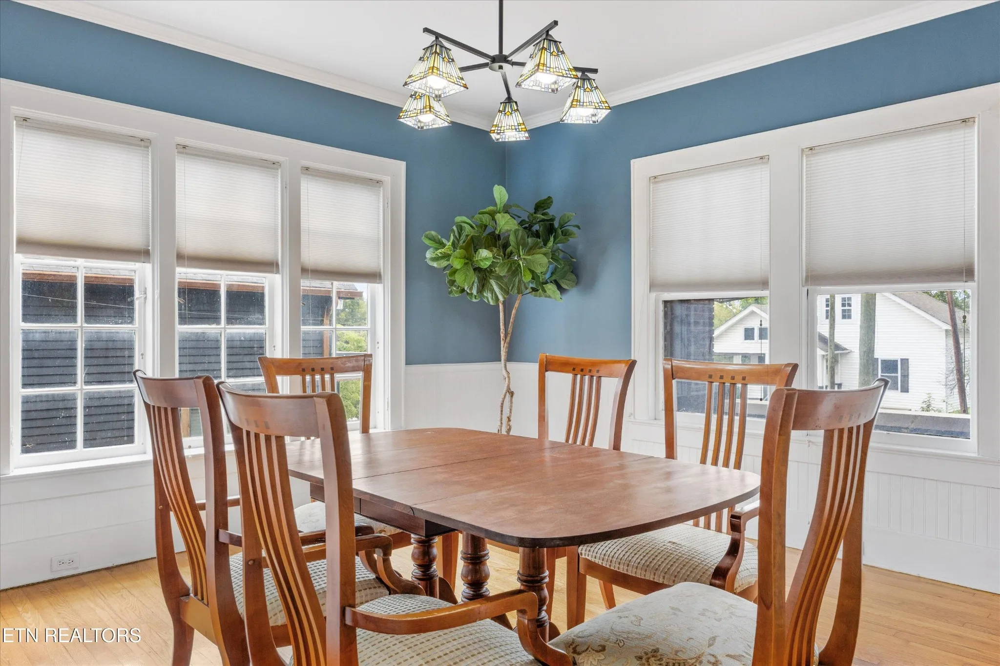 Outdoor living is equally inviting, featuring a covered front porch finished with stained tongue-and-groove details, and a fenced backyard that ensures both privacy and charm. From its architectural integrity to its impeccable updates, this home is move-in ready and embodies the grace of one of Knoxville’s most treasured neighborhoods.