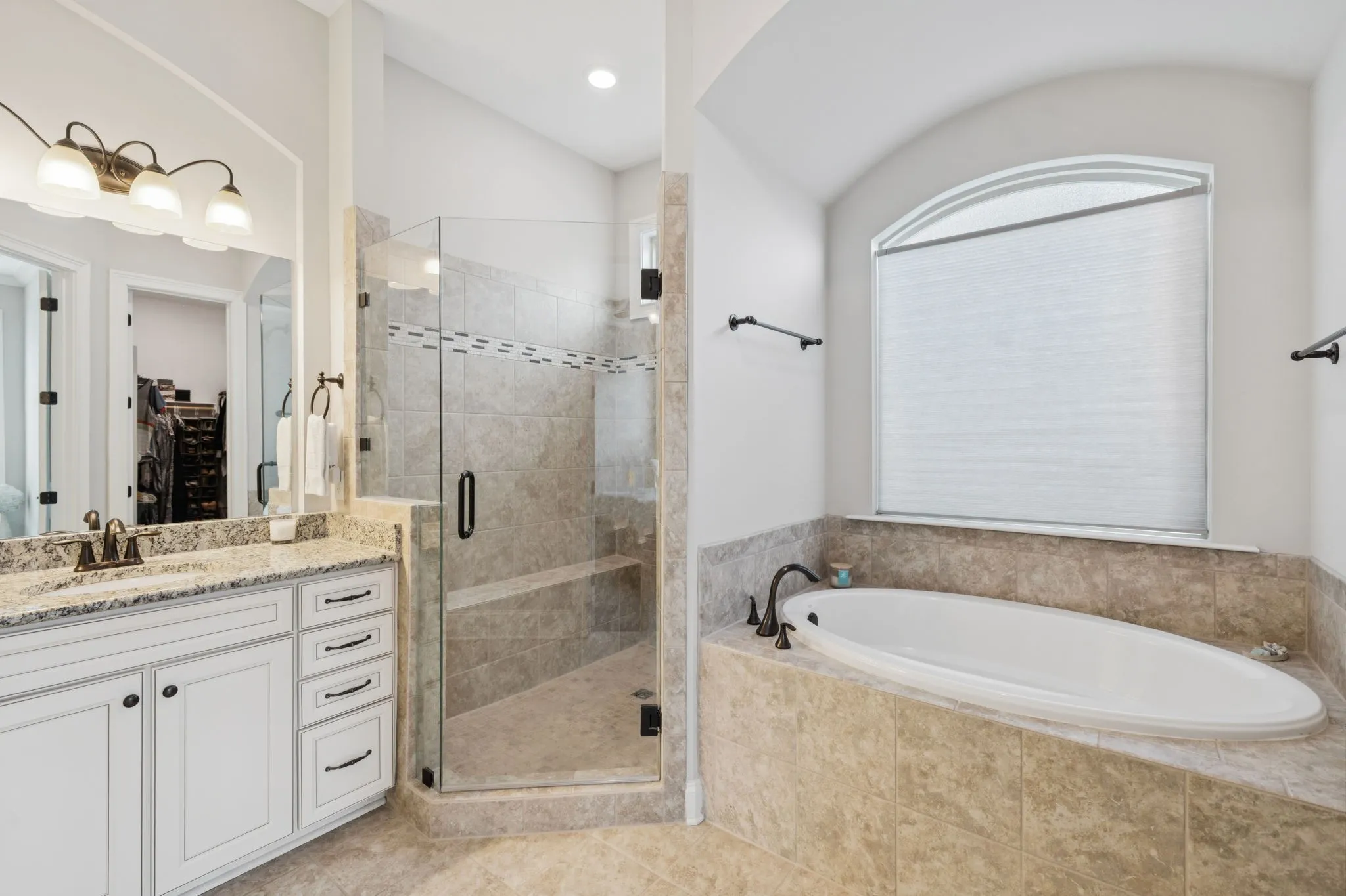 TONS OF UPGRADES — move-in ready in the best neighborhood! Meticulously maintained and designed to impress, this home welcomes you with soaring ceilings, rich hand-scraped hardwood floors and a bright, open floor plan. The gourmet kitchen is a true focal point with gleaming granite counters, a massive island and premium finishes ideal for entertaining. The private primary suite delivers a spa-caliber retreat with a tiled shower, separate soaking tub and an expansive walk-in closet. Outside, a covered patio overlooks a secluded backyard framed by mature arborvitae for exceptional privacy. Standout upgrades include Guardian Polyurea garage flooring, rain bird irrigation system, professional landscaping, a 2022 roof and careful owner maintenance throughout — plus an oversized two-car garage with double bay doors. Turnkey luxury with substance and style; schedule your private showing today.